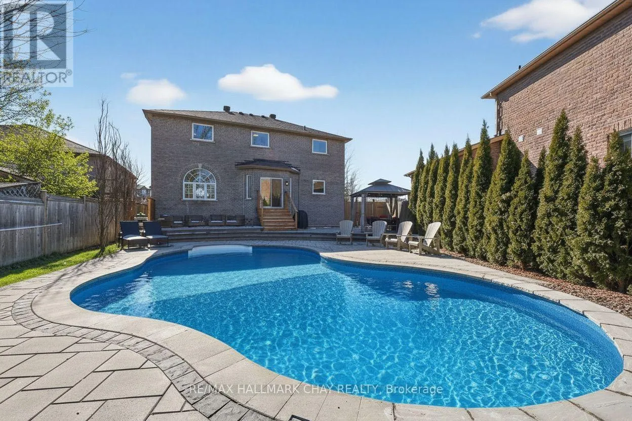 LIVINGSTONE & SURREY Showstopper Designer Home with New In-ground Pool & Backyard Oasis! Located in Barrie's Prestigious Osprey Ridge Neighbourhood - Surrounded by Shops, Trails, Barrie Golf & Country Club with magical elevated views of Little Lake! Backing onto Pond & Greenspace! The Interior of this home has been immaculately maintained & upgraded with hand picked designer finishes, including; hardwood flooring, solid wood spiral staircase with wrought iron spindles, custom gas fireplace feature w/ authentic barn board mantel, full sized mudroom with laundry & built in shelving! Stunning Modern Kitchen w/ Crown Moulding, Quartz Counters, Marble Backsplash, Glass Display Cabinetry and serves as the heart of the home with easy flow to the formal dining room & your beautiful backyard! Forest & Pool views from every rear window! Upstairs boasts Four large bedrooms, two with serene forest views, huge primary retreat with his/ her closets & Five Piece En Suite! Incredible backyard with NEW Salt Water Pool and custom stone/ hardscaping - amazing for entertaining & peaceful relaxation! NEW Fully Finished Basement with two bedrooms, full bathroom, gas fireplace & bright above grade windows! Located at the end of a quiet court with 54' of frontage! Walk to Hospital, Pubs, Shops, Bayfield St Shopping, Golf Course, Trails & so much more! NEW Pool '20. NEW Deck '25. NEW Gazebo '24. Custom Fireplace Feature '25. NEW Broadloom '24. NEW Whole House Paint '25. NEW Water Softener '26. NEW Reno Basement '25. NEW Under Soffit Lighting '24. NEW Updated Lighting '25. (id:27476)