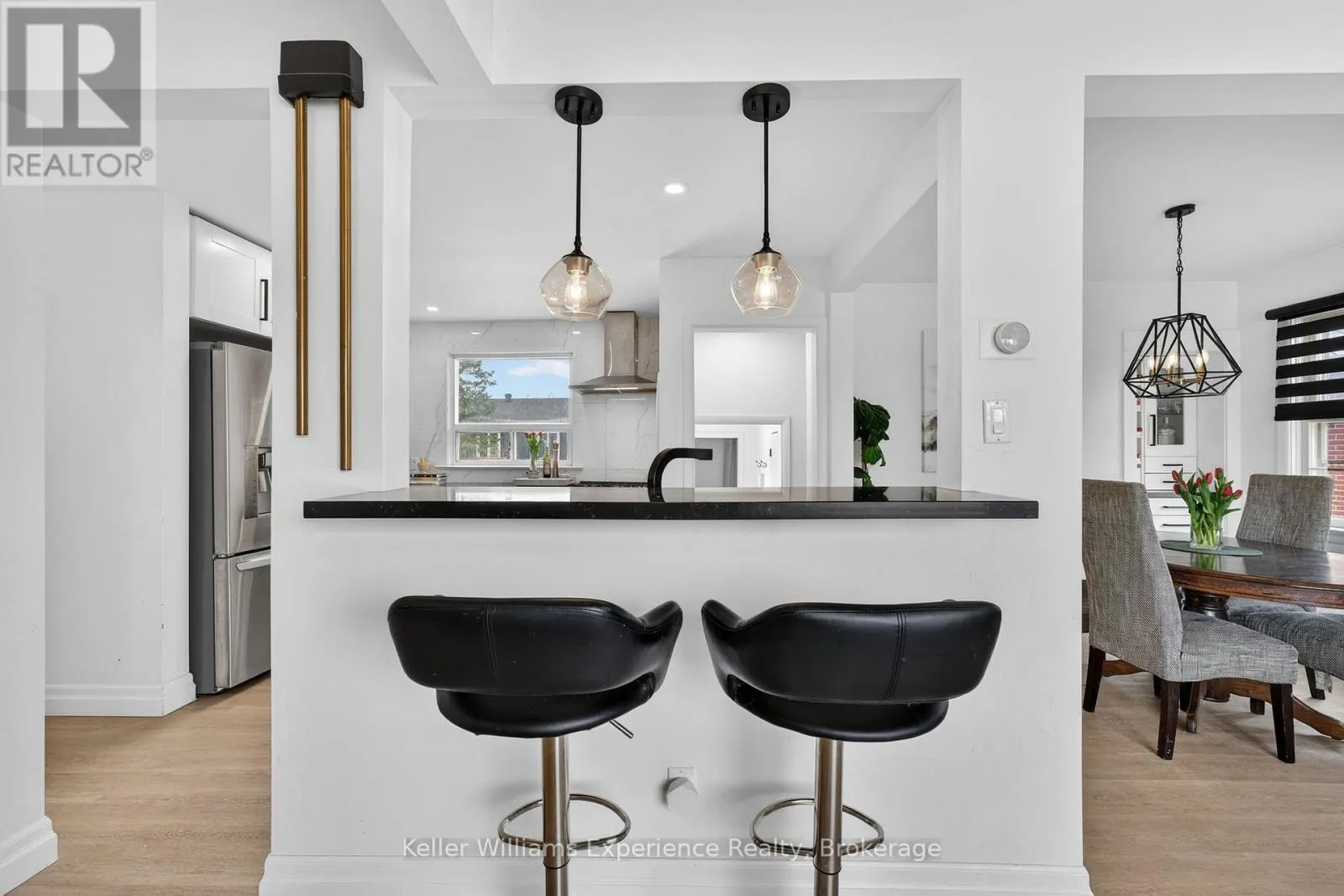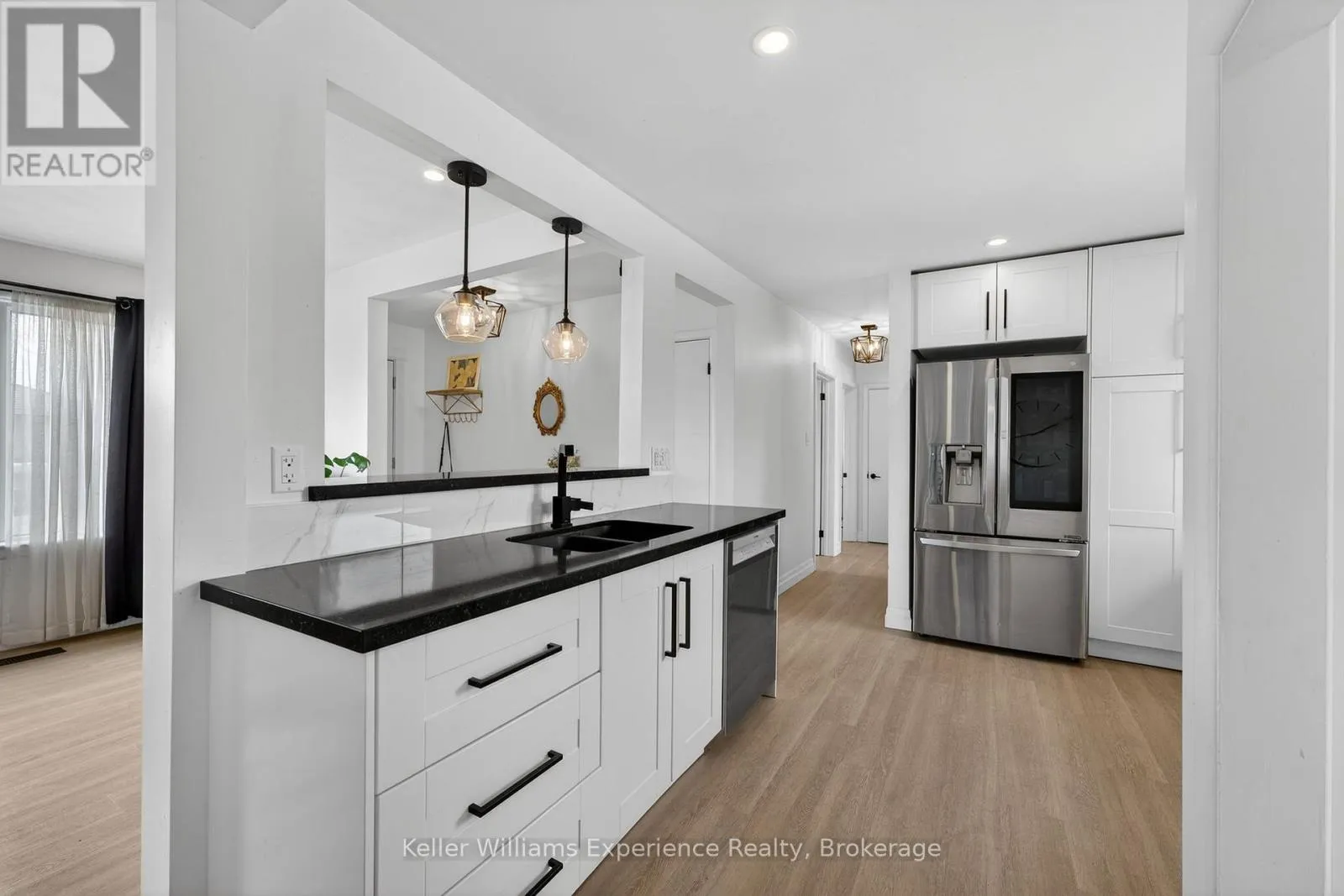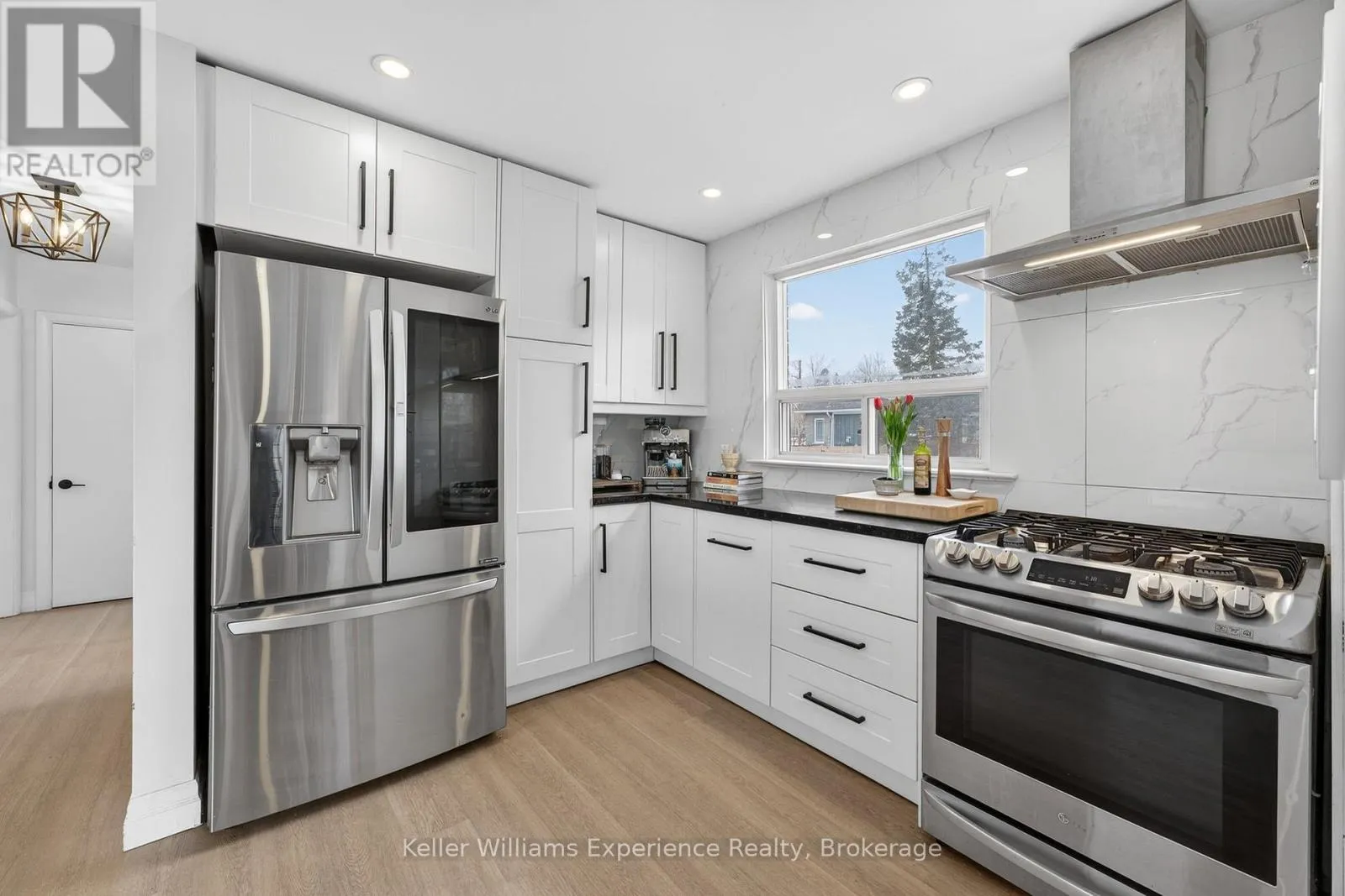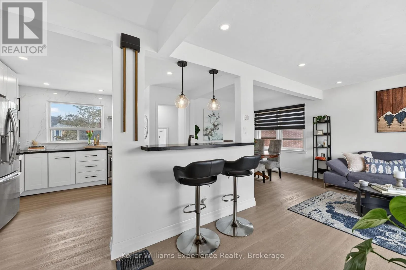 Cross Streets: Grove St. E & Nelson St. ** Directions: Duckworth St to Grove St. E, Right on Nelson, #106 on Right. Welcome to this beautiful, clean, and comfortable 4-bedroom, 2-bathroom home in one of Barrie's favourite family-friendly neighbourhoods. Located in the sought-after Codrington area, this home offers the perfect blend of modern updates and everyday livability. Step inside to a bright, open-concept layout filled with natural light. The beautifully updated kitchen features crisp white cabinetry, stainless steel appliances, and a modern breakfast bar-perfect for morning coffee, casual meals, or entertaining guests. The seamless flow into the living and dining areas creates a warm, inviting space ideal for both everyday living and hosting. The spacious living room is flooded with natural light from large windows and offers a comfortable, stylish setting for relaxing or gathering with family. Adjacent to this, the dining area provides a beautiful space for family meals and special occasions. Downstairs, enjoy a dedicated family room-perfect for hangouts, movie nights, or a kids' retreat, adding valuable flexible living space. This home has been thoughtfully updated with all new electrical and plumbing (2020-2026), giving buyers confidence and peace of mind. The basement bathroom was newly renovated in 2026, and a newer air conditioner (2021) ensures comfort year-round. Step outside through the sliding glass doors to your private, fully fenced backyard. The large yard is perfect for kids, pets, and summer entertaining-offering both privacy and space to enjoy. With its clean finishes, functional layout, and stylish updates, this home is truly move-in ready and ideal for families looking to settle into a well-established, welcoming neighbourhood. This home showcases the value and attention to detail you have been waiting for - you are invited to come take a look! (id:27476)