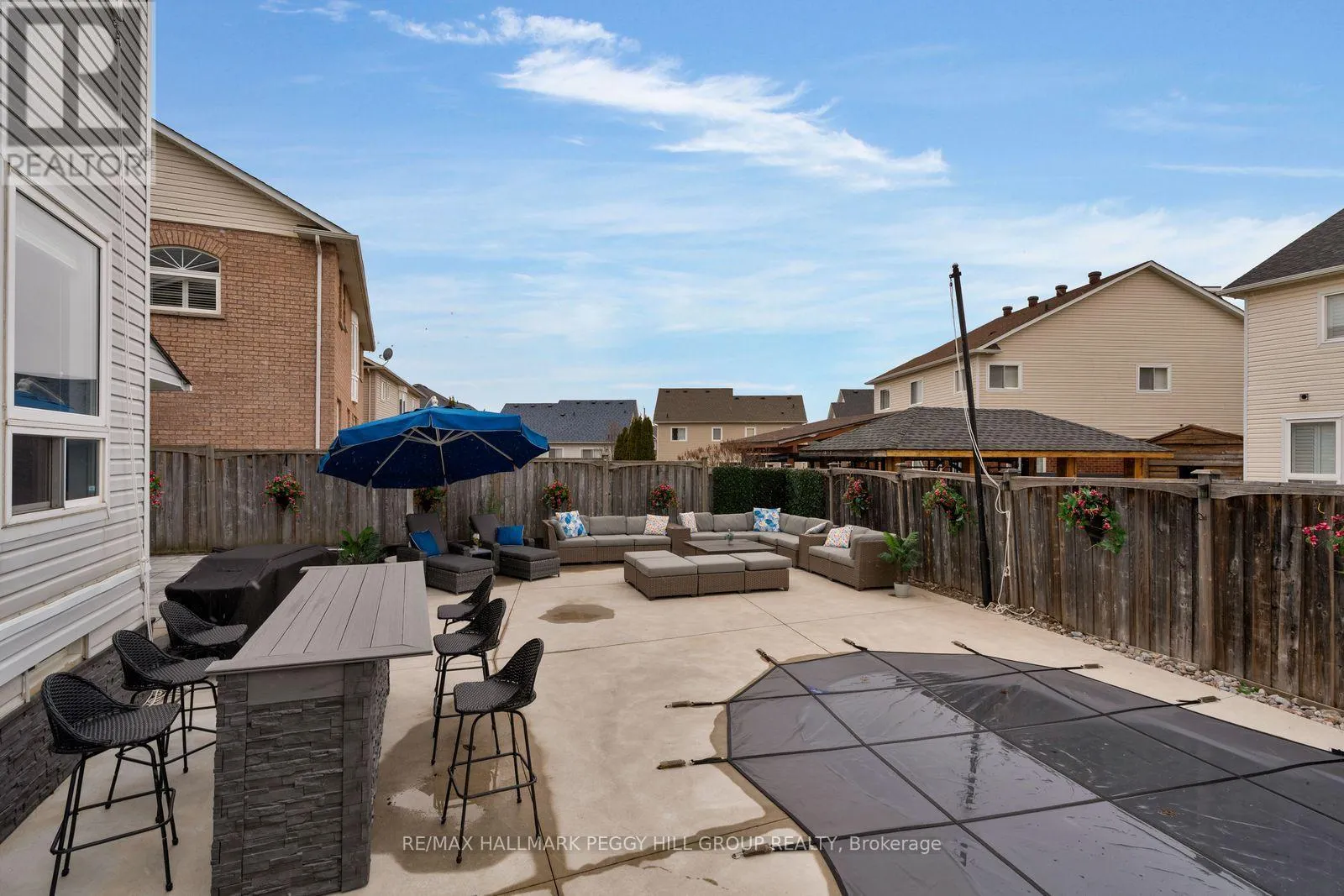Cross Streets: Prince William Way/The Queensway. ** Directions: Mapleview Dr E/Prince William Way/The Queensway. SOUGHT-AFTER INNISHORE ADDRESS WITH NEARLY 3,000 FIN SQ FT & A RESORT-STYLE BACKYARD WITH IN-GROUND POOL! Ditch the lawn chair for a poolside lounger because a heated in-ground saltwater pool is only the beginning of what this nearly 3,000 finished sq ft Innishore home has in store. Forget the standard cookie-cutter arrival; this stone-accented home makes its entrance with a wraparound porch, double-door entry, a double garage with a garage heater, and parking for 4 more in the driveway. Built in 2005, this well-kept 4-bedroom, 4-bathroom home carries its pride of ownership beautifully, with fresh paint, hardwood floors, 9-foot ceilings on the main level, and main floor laundry. The kitchen presents granite countertops, stainless steel appliances, extensive dark cabinetry, a large single-basin sink, garburator, servery, and excellent storage. An upgraded back sliding door opens from the dining area to the composite deck and backyard, creating an easy connection to the outdoor space where the newer heated pool, gas BBQ hookup, storage shed, included pool equipment, outdoor decorations, plants, and moveable bar make summer feel very well accounted for. Upstairs, 4 bedrooms include a spacious primary retreat with a walk-in closet and a 5-piece ensuite, while a main 4-piece bath serves the remaining bedrooms. The partially finished basement adds a rec room, powder room, and space to customize over time to suit your needs. Shingles were replaced in 2021, upper windows have been replaced, and with no rental items, an owned water heater, water softener, central vac, and a high-efficiency furnace already in place, this home has been thoughtfully maintained from top to bottom. Set on a sought-after street in Barrie's Innishore neighbourhood, this address places you within walking distance to schools, parks, and trails, with Barrie South GO just 5 minutes away and hwy access, Costco, Walmart, Park Place Shopping Centre, dining, and daily essentials roughly 10 minutes away. (id:27476)