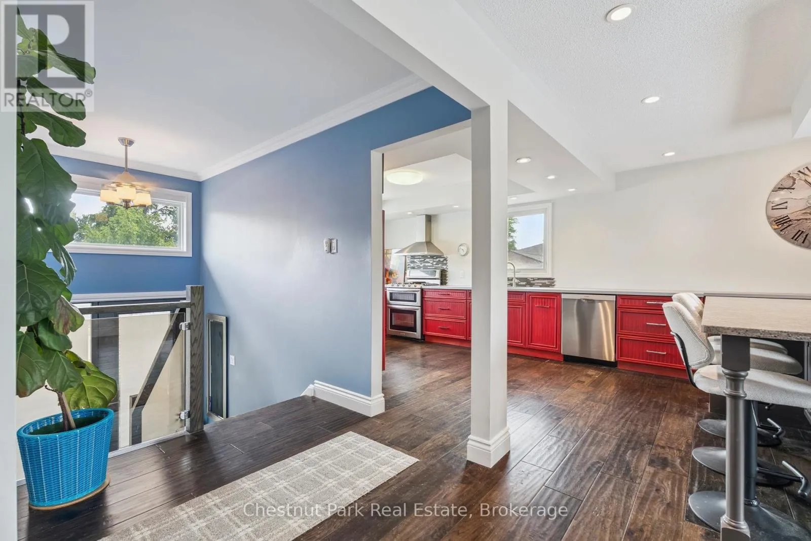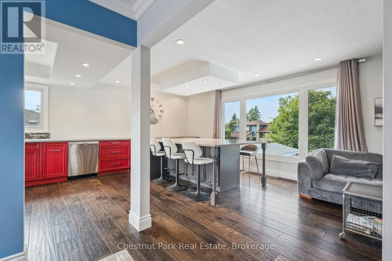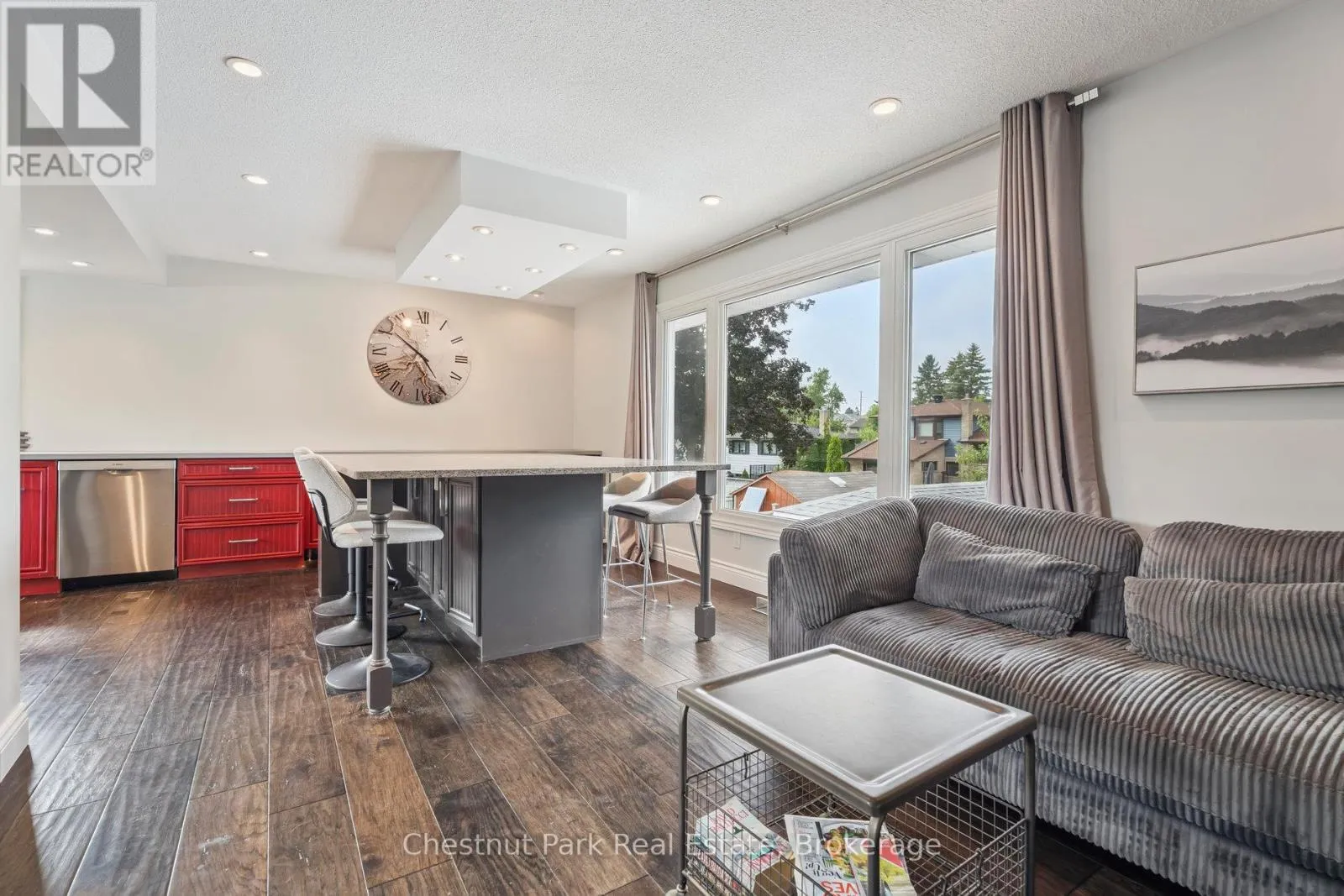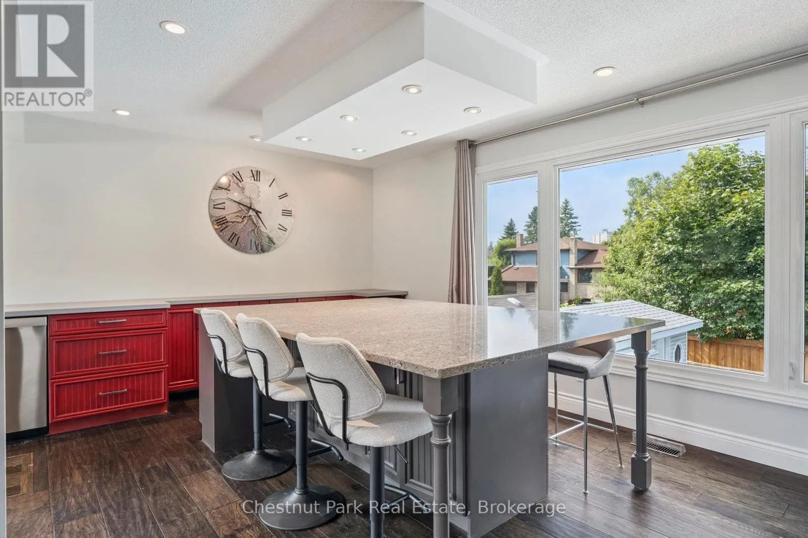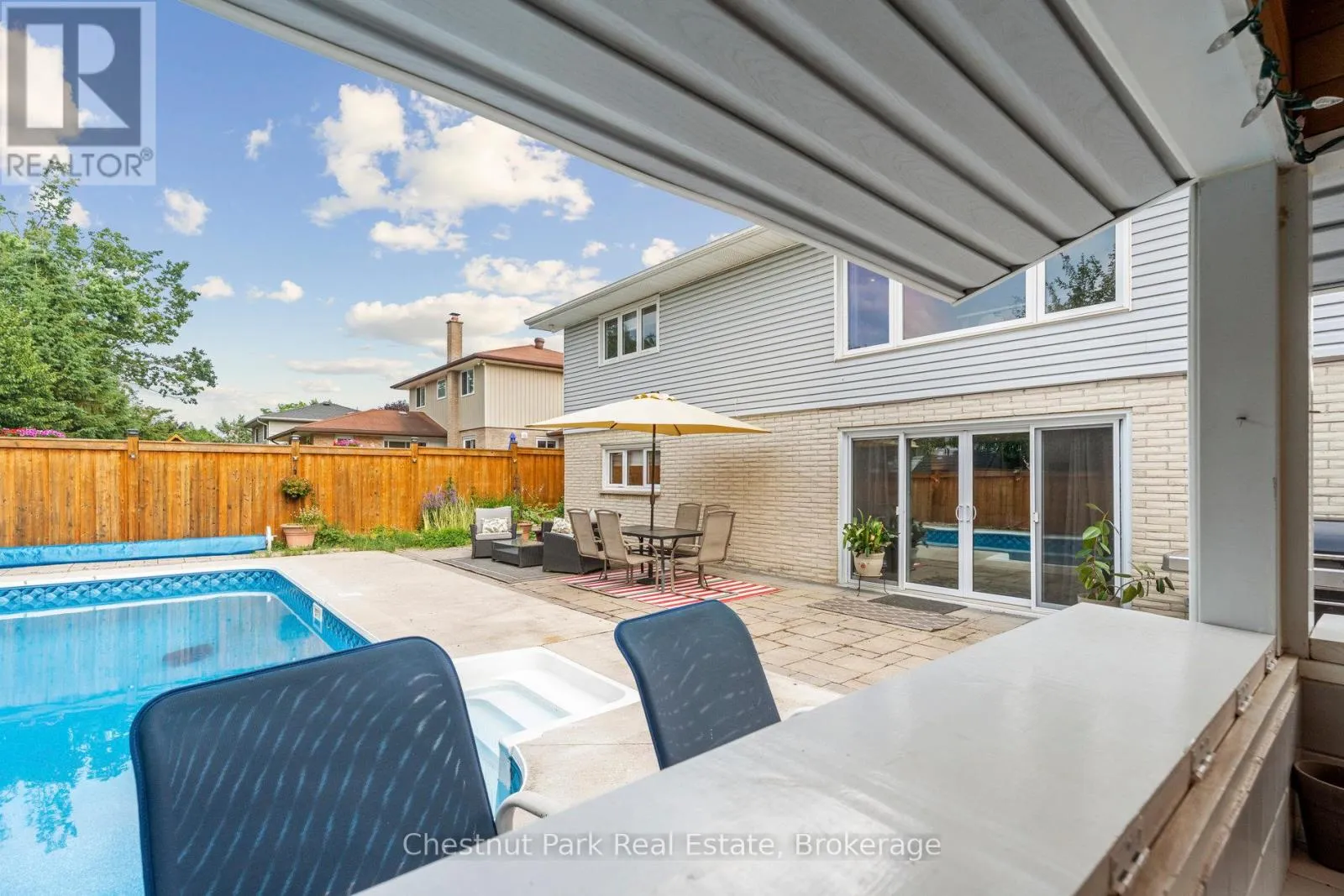 Cross Streets: Duckworth & Grove. ** Directions: Duckworth St to Davies Cres. Welcome to 16 Davies Crescent an updated all brick 4-bedroom, 2-bath raised bungalow tucked into one of Barrie's most established family neighbourhoods. Surrounded by mature trees and pride of ownership, this warm and welcoming home offers a rare blend of functionality, style, and outdoor living. The heart of the home is the spacious custom kitchen featuring stainless steel appliances, gas cooking, and an oversized granite island with seating for eight perfect for family meals or entertaining. Large windows flood the main level with natural light and offer beautiful views over the resort-style backyard, making the kitchen and island seating feel like a true extension of the outdoor space. The front porch has been enclosed in glass, creating a charming, light-filled entry. Downstairs, the bright walk-out lower level includes a large family room with a gas fireplace, a fourth bedroom, full bath, and direct access to your private backyard retreat. Step outside to your own oasis with a saltwater pool, cabana, landscaped gardens, and plenty of space to entertain or unwind. Additional highlights include: double car garage, stone paver driveway, mature trees, and excellent curb appeal. Located close to Royal Victoria Hospital, elementary and high schools, Georgian College, shopping, restaurants, and with quick access to Hwy 400 this is a home that truly checks all the boxes. (id:27476)