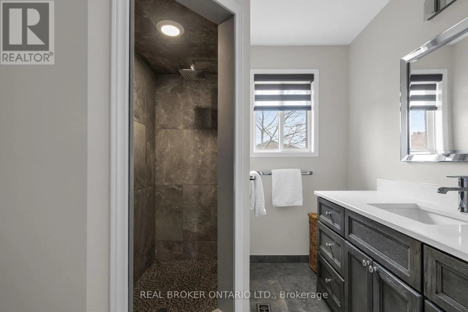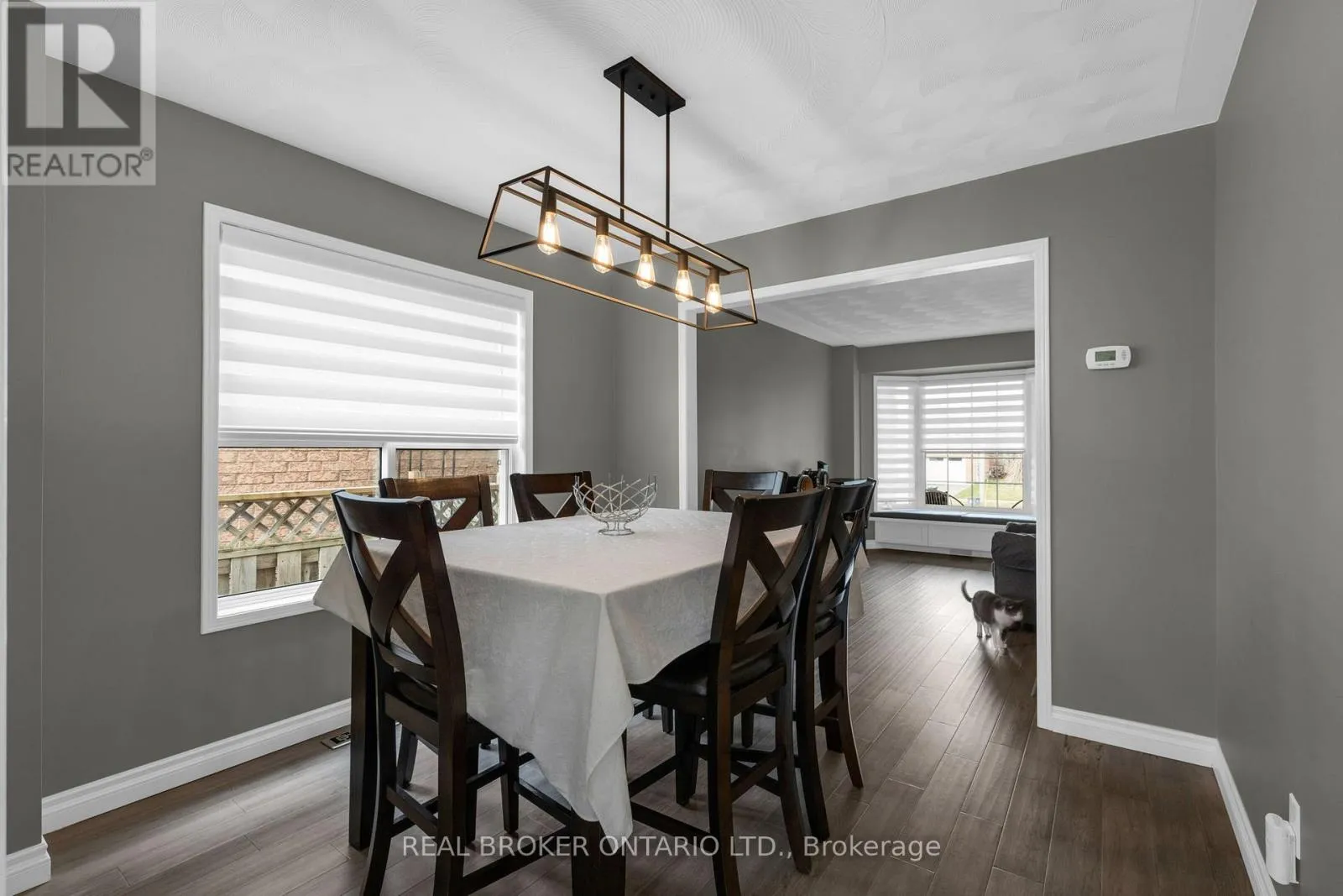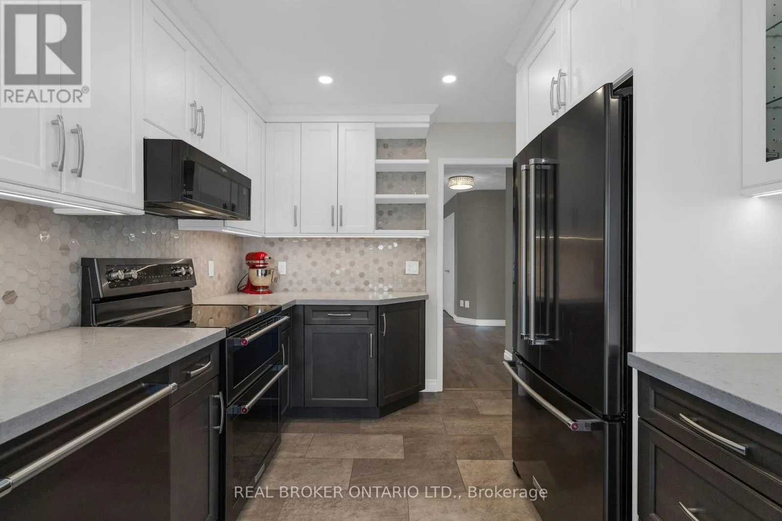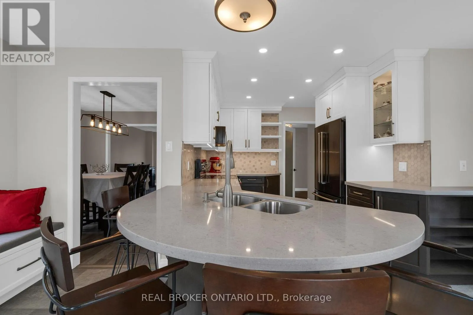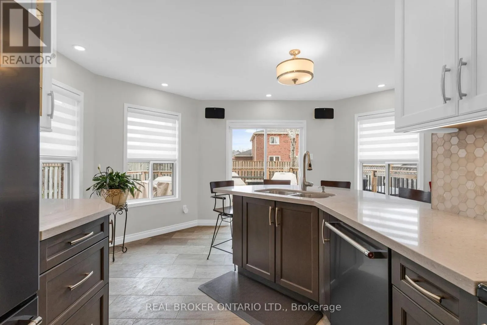 Cross Streets: Hurst and Kingsridge, Taylor. ** Directions: Hurst, Kingsridge. *OVERVIEW* Classic all-brick family home located on a quiet street in Barrie's desirable Kingswood neighbourhood. Offering approximately 2,750 sq ft of finished living space, this move-in-ready home features a functional family layout and a finished basement. Walking distance to Algonquin Ridge Elementary and close to the Barrie GO Station, waterfront, and scenic trails. *INTERIOR* Bright, well-maintained interior with hardwood flooring throughout. Renovated kitchen features quartz countertops, slate appliances, and an eat-in breakfast bar. Separate dining area perfect for family dinners. Dedicated family room with cozy gas fireplace. Second floor offers three bedrooms, including a spacious primary with walk-in closet and private ensuite. Finished basement adds additional living space with open rec room, fourth bedroom, and full bathroom. *EXTERIOR* All brick great curb appeal, large driveway, no sidewalk, Inside access to the garage with an updated garage door. Fully fenced backyard with spacious updated deck and perennial gardens. (id:27476)
