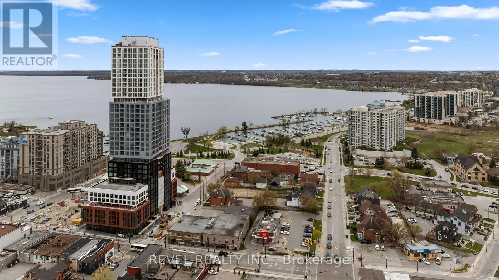 Cross Streets: Dunlop and Mary. ** Directions: HWY 400 to Dunlop St E to Mary St. Discover elevated living in this stunning 1 bedroom suite at DEBUT Condos, Barrie's premier waterfront residence. Located on one of the building's highest floors, this beautifully appointed unit offers breathtaking panoramic views of the city skyline from the 29th floor, with a private balcony that provides the perfect setting for morning coffee or evening sunsets overlooking downtown Barrie. Inside, the thoughtfully designed layout begins with an extended entryway den space offering flexible space ideal for a home office nook or additional storage. The open concept living and kitchen area is filled with natural light through floor to ceiling windows, creating a bright and inviting atmosphere throughout. The sleek modern kitchen features hidden built in appliances, stylish countertops with a continuous backsplash, and a convenient movable island for added functionality. The spacious bedroom and den are complemented by a beautifully finished 3 piece semi ensuite bath with elegant glass shower doors. Contemporary, tasteful finishes carry throughout the suite, offering a sophisticated and comfortable place to call home. Residents will also enjoy access to an exceptional collection of hotel inspired amenities, including an infinity plunge pool with lake views, state of the art fitness centre, concierge service, outdoor lounge with fire pit, business centre, and more. Enjoy being just steps from Barrie Waterfront, the marina, downtown restaurants, shops, transit, and convenient access to Highway 400. One parking space included. (id:27476)