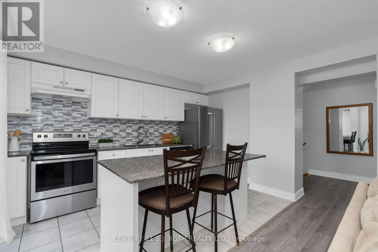 Cross Streets: Mabern St to Kodiak Terr. ** Directions: Essa to Mabern St to Kodiak Terr. Welcome to this well-maintained, original owner freehold townhome built in 2020, offering a bright and functional layout in one of Barrie's most convenient and family-friendly neighbourhoods. A standout feature is the extended driveway with no sidewalk, allowing for additional parking and added everyday convenience. The main level offers a spacious entryway with ceramic flooring, a 2-piece powder room, and inside entry from the garage. The open-concept layout flows into a bright white kitchen featuring stone countertops, ample cupboard space, stainless steel appliances, and a large island, along with direct access to the west-facing balcony off the kitchen-an ideal spot to enjoy afternoon sun and beautiful evening sunsets. Just off the kitchen and living area, you'll find a versatile bonus den space, perfect for a home office, reading nook, or additional lounge area. With no direct homes across the street, this home offers a more open feel and added privacy compared to many homes in similar communities. Upstairs, you'll find two spacious bedrooms with large closets and a 4-piece bathroom, providing comfortable and practical living. Located just minutes to Highway 400, shopping including Costco, schools, parks, and Bear Creek Trails, this home offers an ideal balance of location, functionality, and value. (id:27476)