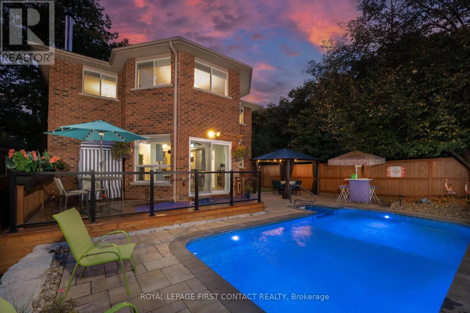 Cross Streets: Leacook Dr to Irwin Dr. ** Directions: Leacock Dr to Irwin Dr. Well-Maintained All-Brick 2-Storey with Heated Saltwater Pool on a Corner Lot! Welcome to this spacious and beautifully maintained all-brick 2- storey home, ideally situated on a corner lot with interlocking driveway/front patio in a family-friendly neighbourhood across from the park and scenic trails. The main floor features new luxury vinyl flooring, a bright eat-in kitchen with brand-new stainless steel appliances, a cozy living room with a wood-burning fireplace, formal dining room with french doors, powder room, and a versatile family room, perfect for kids or a home office. Convenient main floor laundry offers inside access to the garage. Upstairs, you'll find four generous bedrooms, including a large primary suite with double french doors, a sitting area, double closets including one walk-in, and a 5-piece ensuite. An additional 4- piece bathroom completes the upper level.The partially finished basement includes new luxury vinyl flooring throughout, a workshop, & a rough-in for a bathroom, ready for your finishing touches. The low-maintenance backyard is an entertainers dream with turf grass, a gazebo, glass-railed deck, and a stunning in-ground heated saltwater pool with new heater & Salt Cell (2025) surrounded by new Unilock stonework. Located close to Sunnidale Park, top-rated schools, shopping, and all major amenities, this home checks all the boxes! (id:27476)