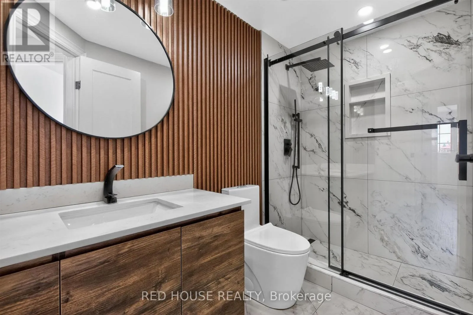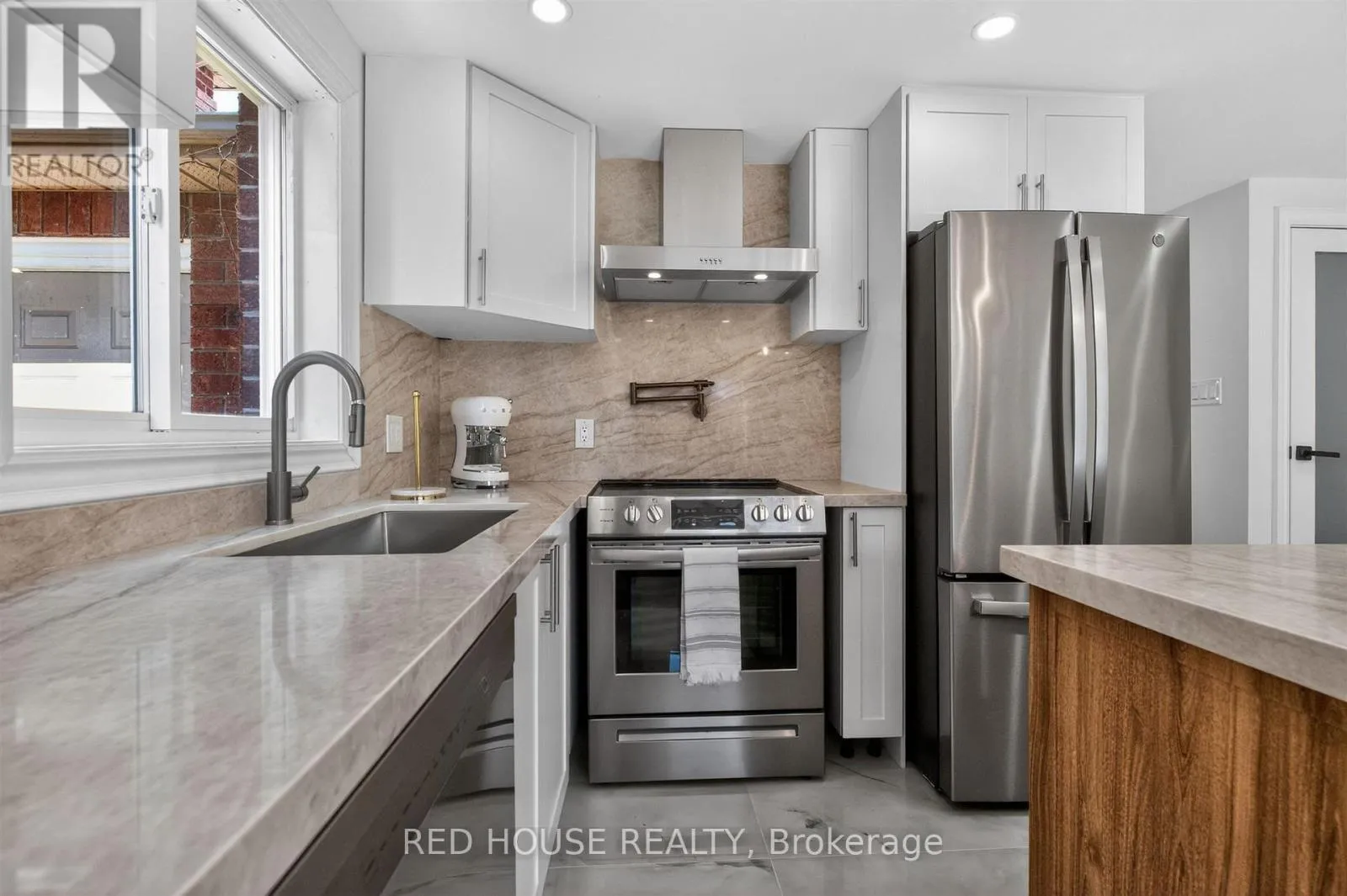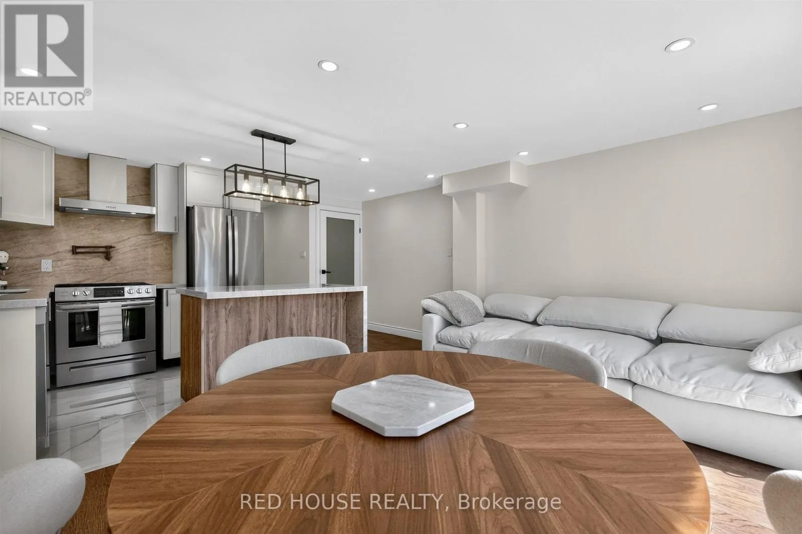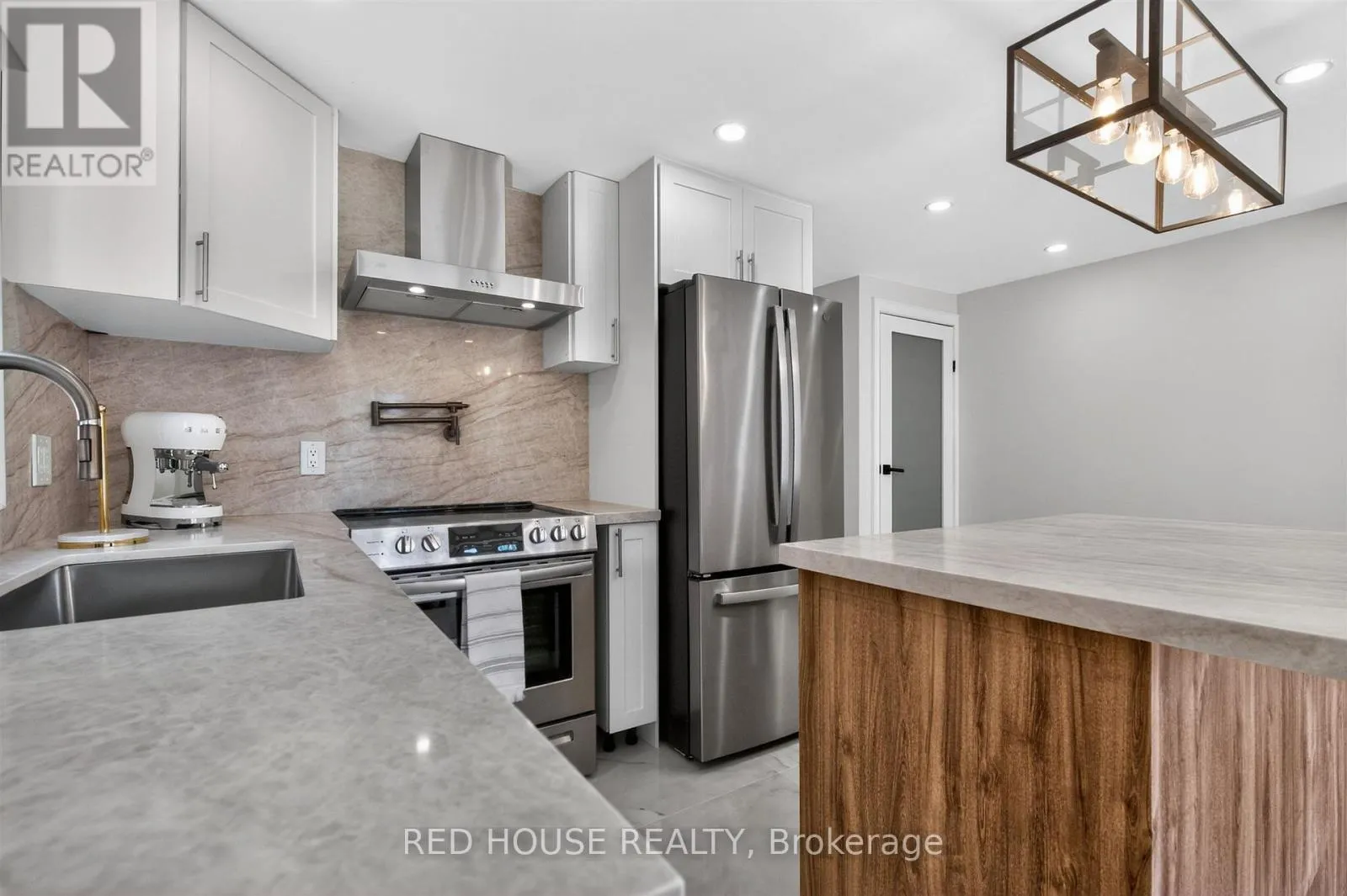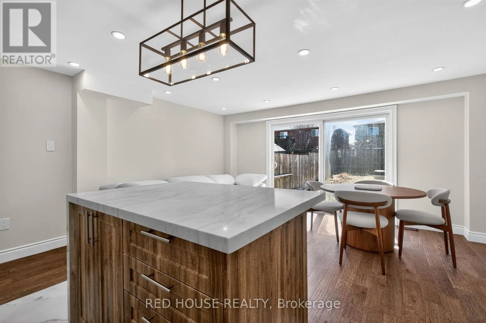 Georgian & Penetanguishene This meticulously upgraded residence where modern design and high-quality finishes come together in a premium offering. From the moment you arrive, the expanded front deck enhances curb appeal and creates a welcoming entry. Inside, the home unfolds with a clean, contemporary aesthetic defined by exceptional design and cohesive materials. Hardwood flooring and large format tile runs throughout the principal living spaces. The open-concept layout is bright and inviting, anchored by a stunning kitchen that has been thoughtfully reimagined. The kitchen features striking quartzite countertops and backsplash with a waterfall-style island, paired seamlessly with beautiful custom cabinetry. Stainless steel appliances, a modern range hood, and a designer light fixture complete the space, while the layout flows effortlessly into the dining and living areas-ideal for both everyday living and entertaining. The main floor is enhanced by pot lights throughout. Large sliding doors at the rear allow for natural light to flood the space. The staircase itself is finished with solid wood treads, glass panel railings, and black accents. The washrooms have been elevated to a spa-like standard. The primary bathroom showcases a frameless glass shower enclosure with black fixtures, and a rainfall shower system. A custom vanity with warm wood tones, and vertical slat paneling adds depth. Additional details throughout the home include upgraded interior doors, black lever hardware, and clean trim work. The lower level offers a fully finished, turn-key space with tiled flooring throughout, extending the living area and providing flexibility for recreation, work, or extended family use. Ideally situated in Barrie's sought-after Georgian Drive community, this home offers exceptional proximity to Highway 400, providing access for commuters, while close to a wide range of amenities. Every element has been carefully considered and executed, resulting in a home that is truly turnkey. (id:27476)