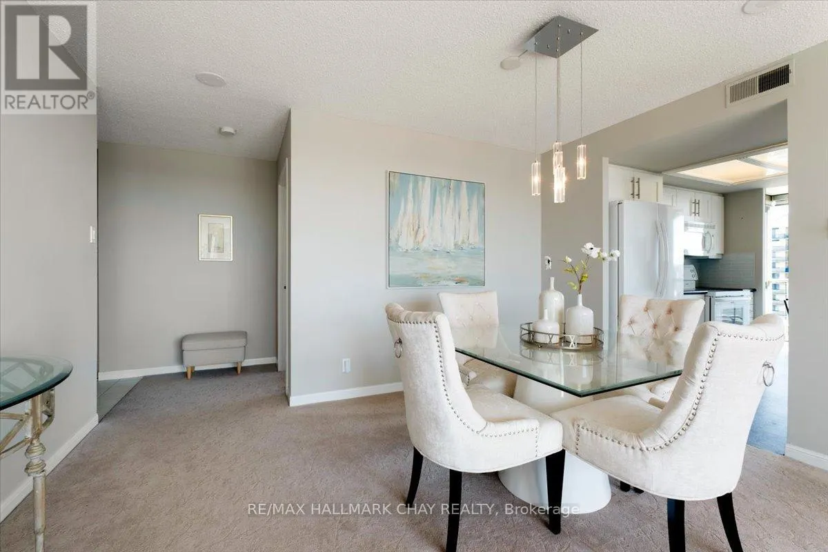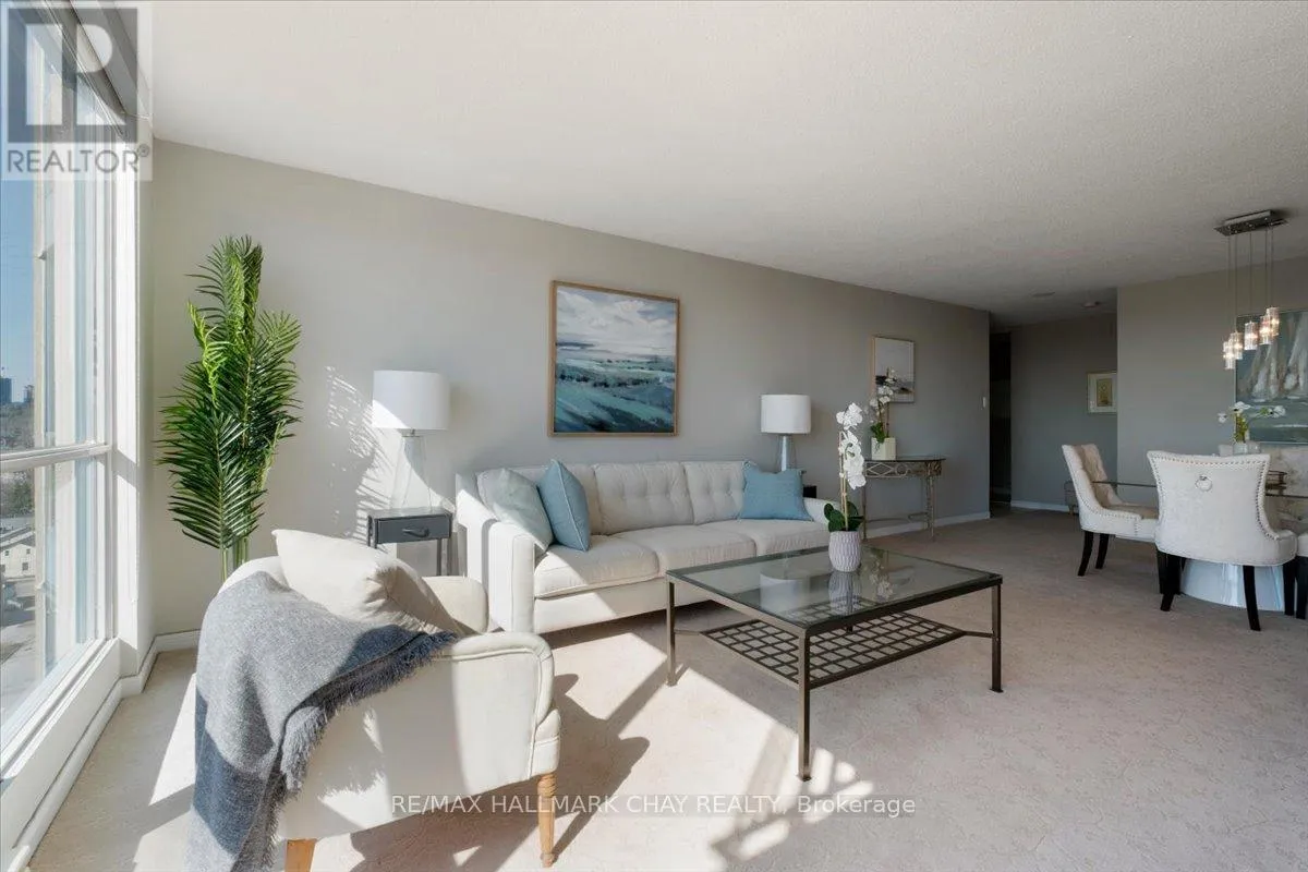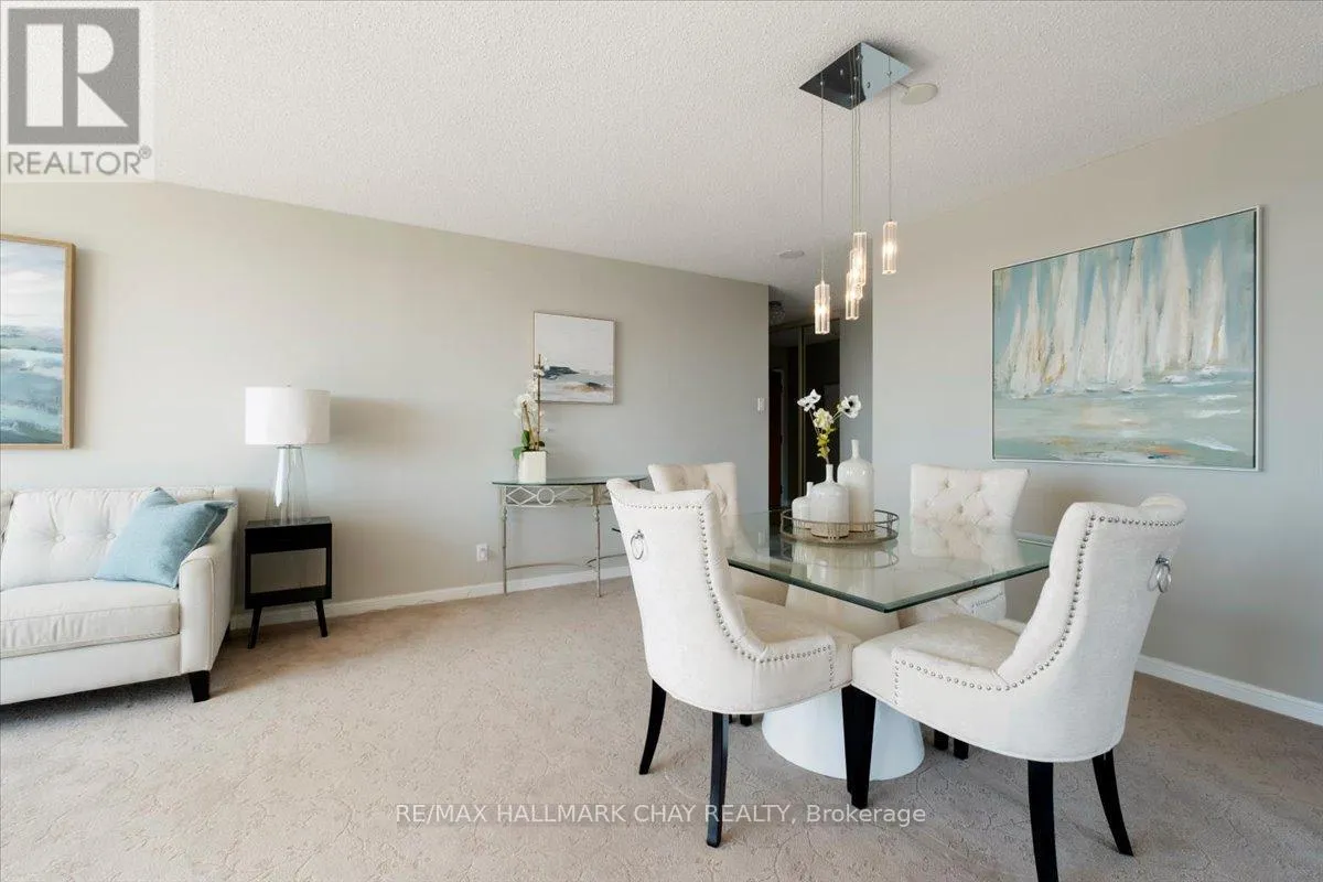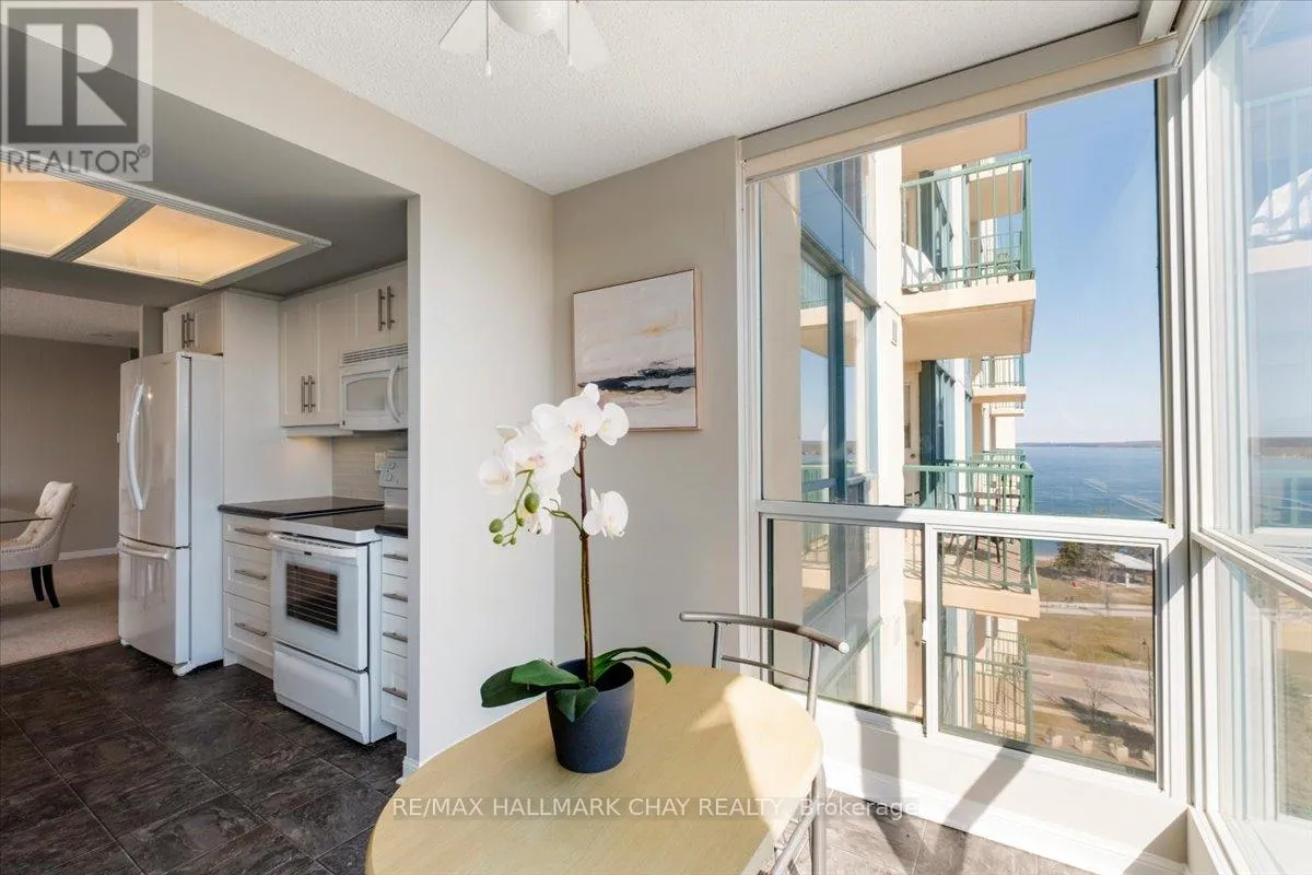 Cross Streets: Victoria St to Ellen St. ** Directions: Lakeshore Dr to Victoria St to Ellen St. Lovely 2 bedroom, 2 Bath, 1,123 square foot suite at Marina Bay. Beautiful south facing view of Kempenfelt Bay. Spacious living room with a large dining area, spacious enough for a full dining set. The upgraded kitchen provides gorgeous counters, under-mount lighting, glass tile backsplash, ceramic floors, double sinks and loads of cupboards. The solarium is a beautiful area to sit and enjoy the view. Main bath has a walk-in shower with a custom glass block wall. The primary bedroom is oversized and provides a full 4-piece ensuite bath. Large windows creates a bright and cheery space. Fantastic Rec Facilities & Social Activities include indoor pool, hot tub, sauna, exercise room, library area, party room, billiards, cards, social tea and coffee times and more. The building is located steps to the Go Transit station, Beach, Walking Paths, Downtown Festivals & Events, Shopping. Pet friendly building, underground parking, storage locker, visitor parking and a car wash bay. (id:27476)