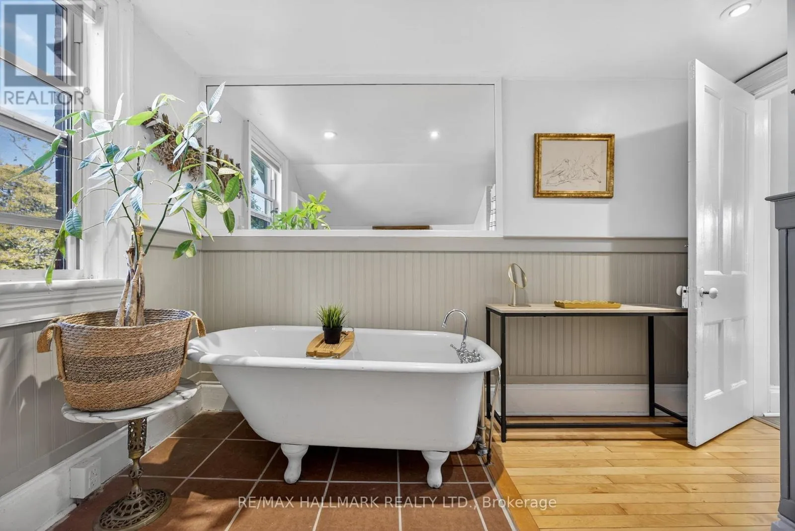 Bayfield St / Wellington St E Timeless Charm and Character in this 4-bed, 2-bath architectural gem in Barrie's City Centre.Originally designed by famed architect Eustace Bird, this home blends historic craftsmanship with smart modern updates. With soaring 10-ft ceilings, original wood staircase, 12 inch base boards, a metal roof (2017) and thoughtful restoration, this residence beautifully preserves its heritage while accommodating today's lifestyle. Enjoy 2,700+ sq. ft. of character-filled living space including a renovated kitchen with heated floors and walkout to the backyard oasis featuring a lush fenced yard with pond and tiki bar. Nestled in Barrie's City Centre, this home offers the best of both worlds - historic street scape charm with proximity to modern amenities. Just a short walk to downtown shops, dining, parks, schools,and the waterfront. (id:27476)