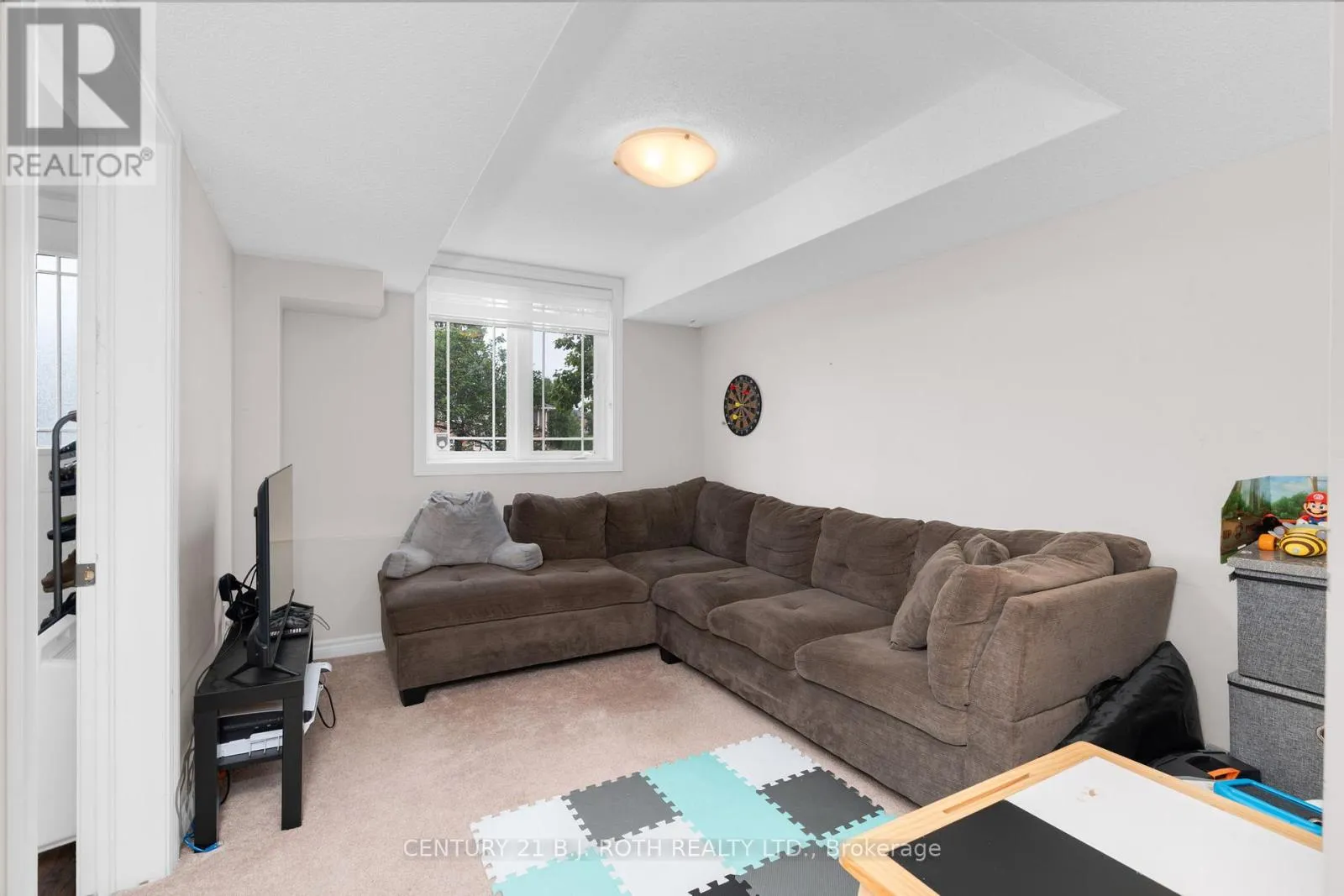 Cross Streets: Veterans & Harvie. ** Directions: Veterans Dr. to Harvie Rd. then turn West. Say goodbye to mowing lawns and shovelling snow, and hello to easy, carefree living. This bright and spacious Brownstone Townhouse offers over 1,700 sq ft of above-ground, stylish, move-in-ready space designed for your lifestyle. Step inside to a sun-filled, open-concept layout where the living, dining, and updated kitchen flow seamlessly, perfect for hosting friends or relaxing after a long day. The kitchen keeps you connected to the action, so you never miss a moment. Upstairs, you'll find three generous bedrooms, including a private primary retreat with a 4-piece ensuite, your own space to unwind. The additional bedrooms are ideal for family, guests, a home office, or whatever your lifestyle needs. The fully finished walk-out basement adds even more flexibility, complete with a 3-piece bath and tons of natural light, perfect for a gym, movie nights, or work-from-home setup. But the real win? Zero exterior upkeep. Your condo fees cover landscaping, snow removal (yes, even your driveway and steps), window washing, and more, so you can spend your time doing what you love, not weekend chores. With a playground on-site and a location just minutes to parks, trails, shopping, restaurants, and quick Highway 400 access, everything you need is right here. Low maintenance. High lifestyle. Let's get you in for a showing-you're going to love it. (id:27476)