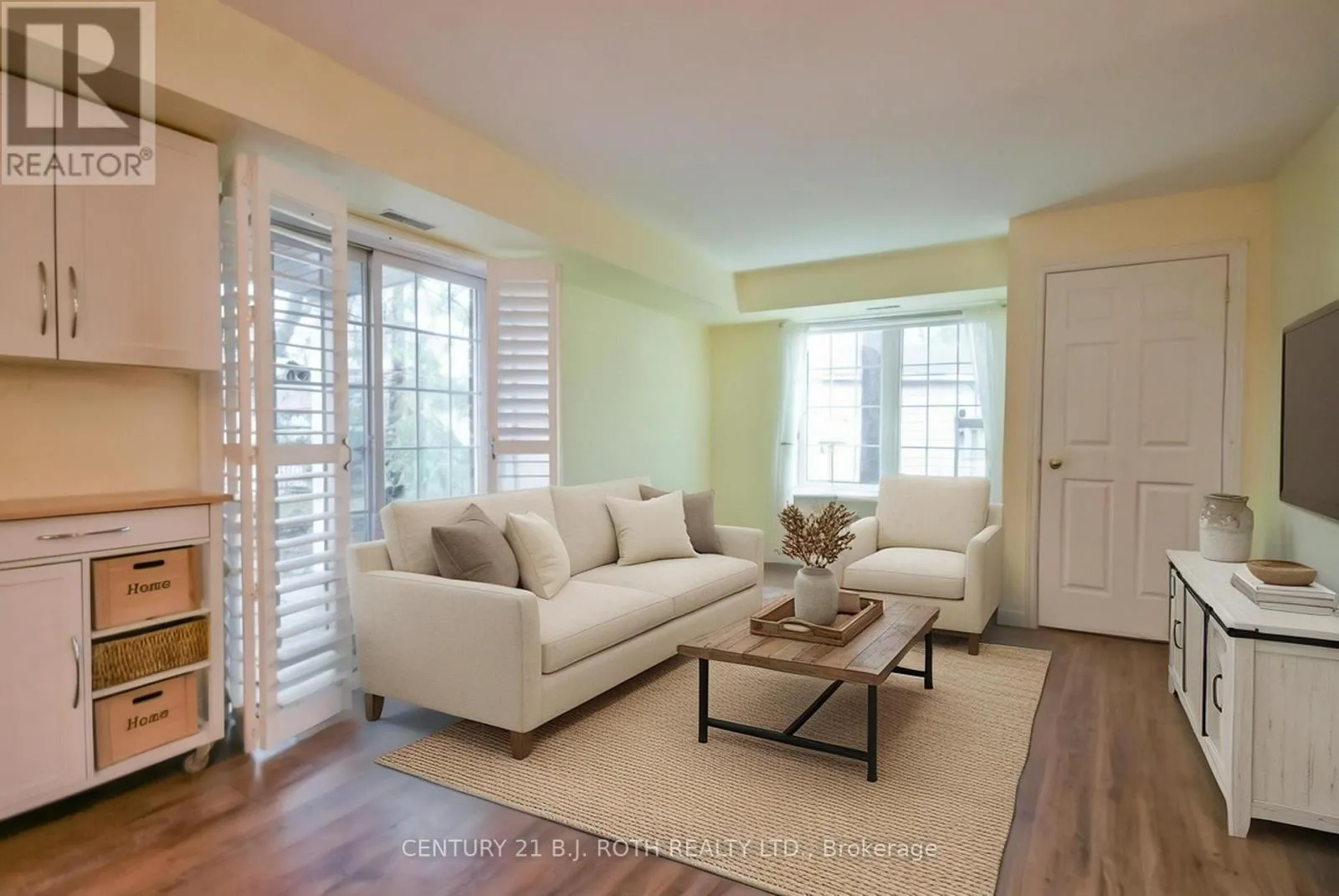 Cross Streets: Essa/Jacobs. ** Directions: Anne St To Jacobs Tr. Exclusive Jacobs Terrace! Bright, spacious, and rarely offered-this sun-filled 1,000 sq ft ground-floor corner unit lets you skip the hallways and step right outside your front door. Enjoy your own covered patio, perfect for summer BBQs, in this desirable 2-bedroom, 2-bath suite. Ideally located within walking distance to Barrie's waterfront, beaches, downtown, and the GO Station, this home blends convenience with comfort. The large kitchen features ample cabinetry with pull-out drawers and plenty of counter space, flowing seamlessly into the open-concept living and dining area-perfect for entertaining. Both bedrooms are generously sized (king-bed friendly), and the unit is loaded with upgrades including California shutters, upgraded fixtures, knockdown ceilings, and carpet-free living throughout. Additional highlights include a 5'x5' personal locker, owned parking spot (#22), and the option for a second parking space for just $25/month. Set in a quiet, boutique building with only 24 units-this rare ground-floor corner unit is a true standout. (id:27476)