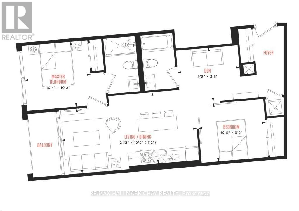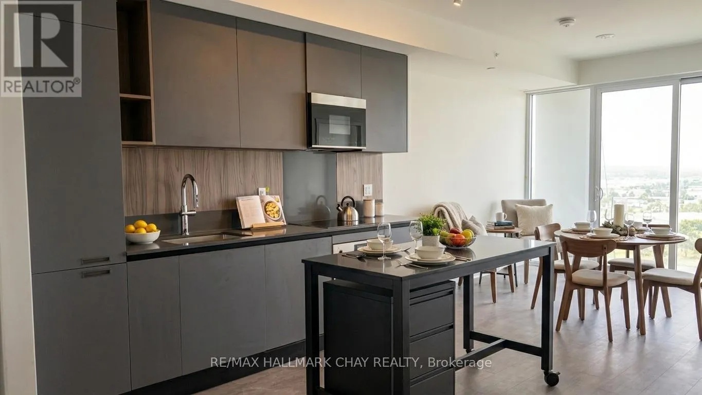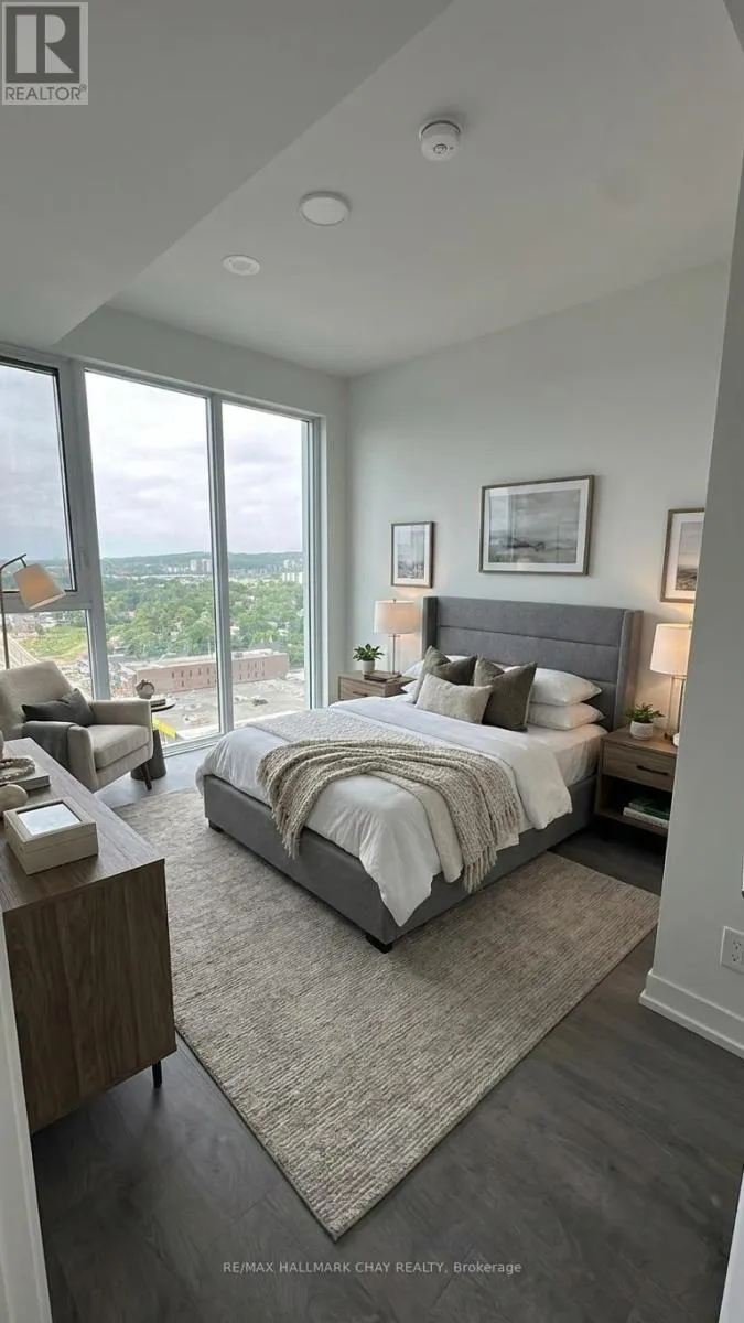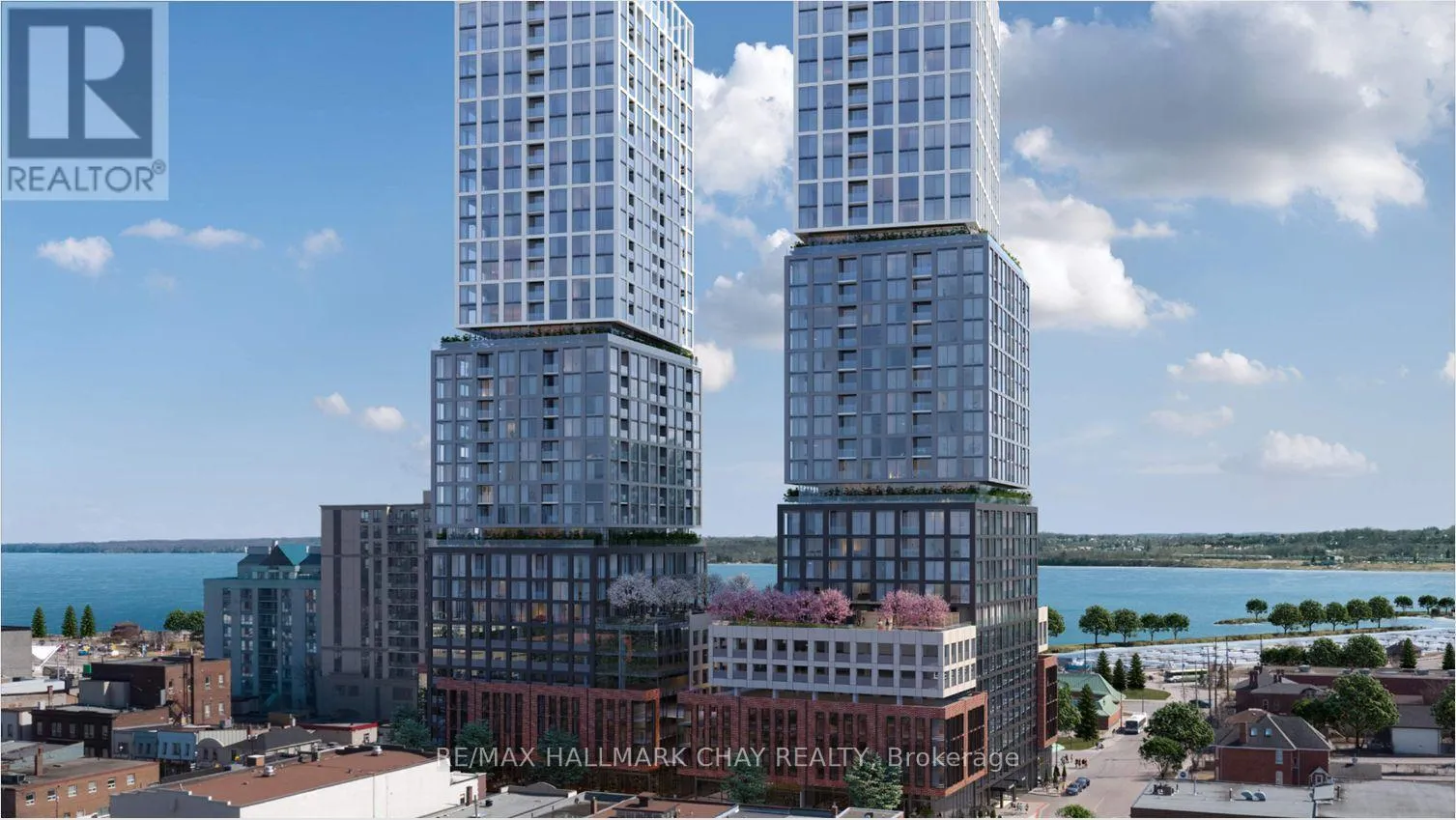 Cross Streets: Dunlop St W / Mary St. ** Directions: Dunlop St W to Mary St. Welcome to Debut Condos! Downtown Barrie's premier address just steps from the waterfront! This bright and modern 2+1 bedroom, 824 sq ft unit offers functional space with open-concept living, floor-to-ceiling windows, and sleek contemporary finishes throughout. The versatile den is perfect for a home office, guest room, or cozy reading nook. Enjoy a thoughtfully designed kitchen with integrated appliances, quartz countertops, and stylish cabinetry. Step out onto your private balcony and take in beautiful views of the city and lake beyond. With underground parking, 24/7 concierge service, and resort-style amenities; including a rooftop terrace, gym, and residents lounge, this urban escape checks every box. Walking distance to shops, cafes, the GO Station, and Barrie's vibrant waterfront trails. (id:27476)