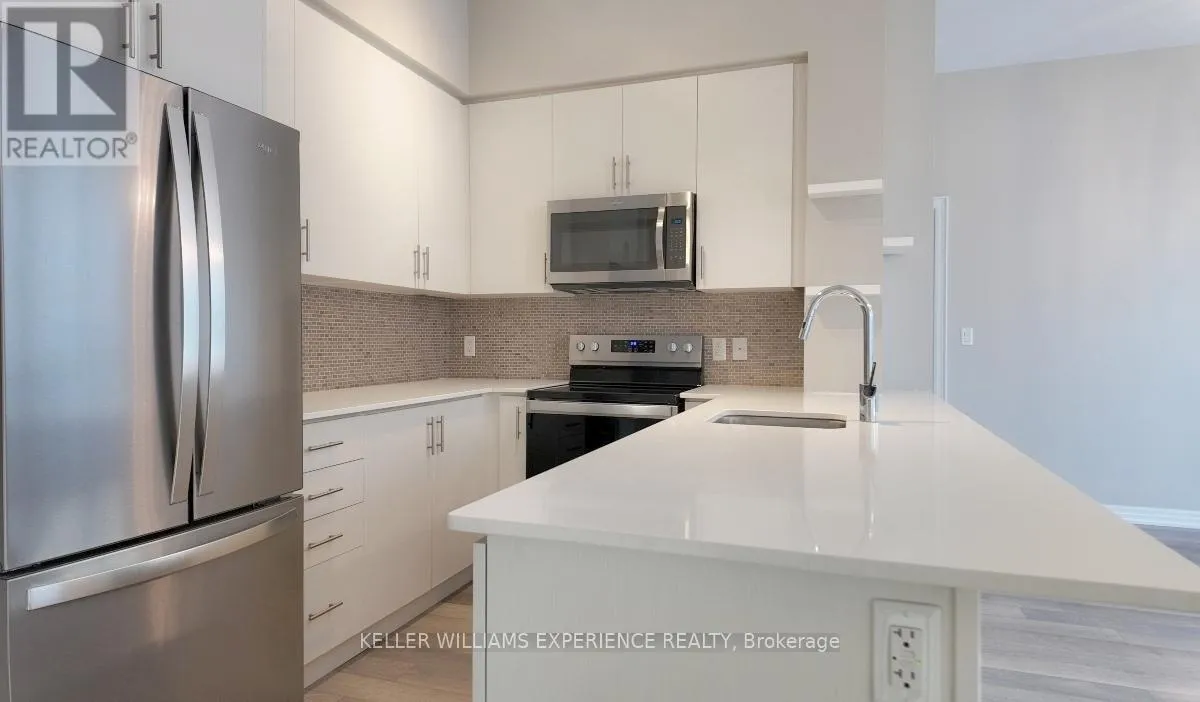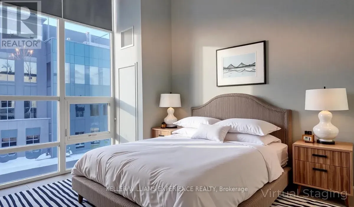Cross Streets: Mulcaster St To Worsley Street. ** Directions: Mulcaster St & Collier Street to Worsley. Experience elevated lakeside living in this stunning Grand Penthouse overlooking Lake Simcoe and Kempenfelt Bay. This spacious 2-bedroom + den, 2-bathroom suite blends luxurious design with everyday comfort, offering unobstructed west-facing views and a lifestyle that's just steps from Barrie's vibrant downtown, waterfront trails, fine dining, and boutique shopping. Inside, the bright open-concept layout impresses with 10-foot ceilings and floor-to-ceiling windows dressed in custom blinds, filling the space with natural light. The great room flows seamlessly to a large south-facing terrace, perfect for entertaining or simply enjoying sunset views. The primary bedroom includes a private balcony and a beautifully upgraded three-piece ensuite with a walk-in shower, modern vanity, and fresh new fixtures. The modern kitchen features stainless steel Whirlpool appliances, neutral cabinetry, white quartz countertops, and a stylish backsplash, complete with a gas hookup and a water line to the fridge. Both bedrooms are generously sized, and the den adds versatility as a home office, guest area, or cozy lounge. Additional highlights include in-suite laundry with custom shelving, an extra-large storage locker, and ample closet space throughout. Utility costs for 2025 totaled just $490.89 for water and hydro, with heating and cooling provided by a highly efficient heat pump system. Enjoy the convenience of underground parking, bike storage, and high-quality building amenities, including a fitness center, party room, and a third-floor outdoor terrace with a BBQ area. Affordable luxury, panoramic lake views, and a prime downtown address-this rare penthouse opportunity in Lakeview Condos is not to be missed. (id:27476)