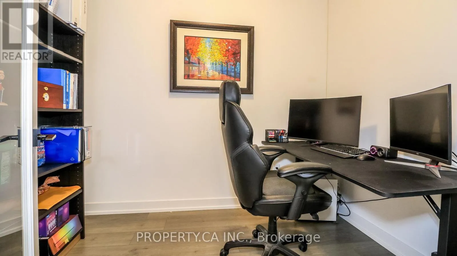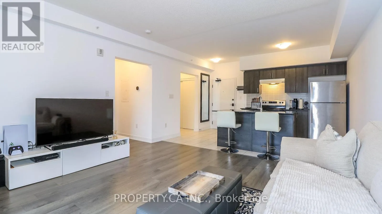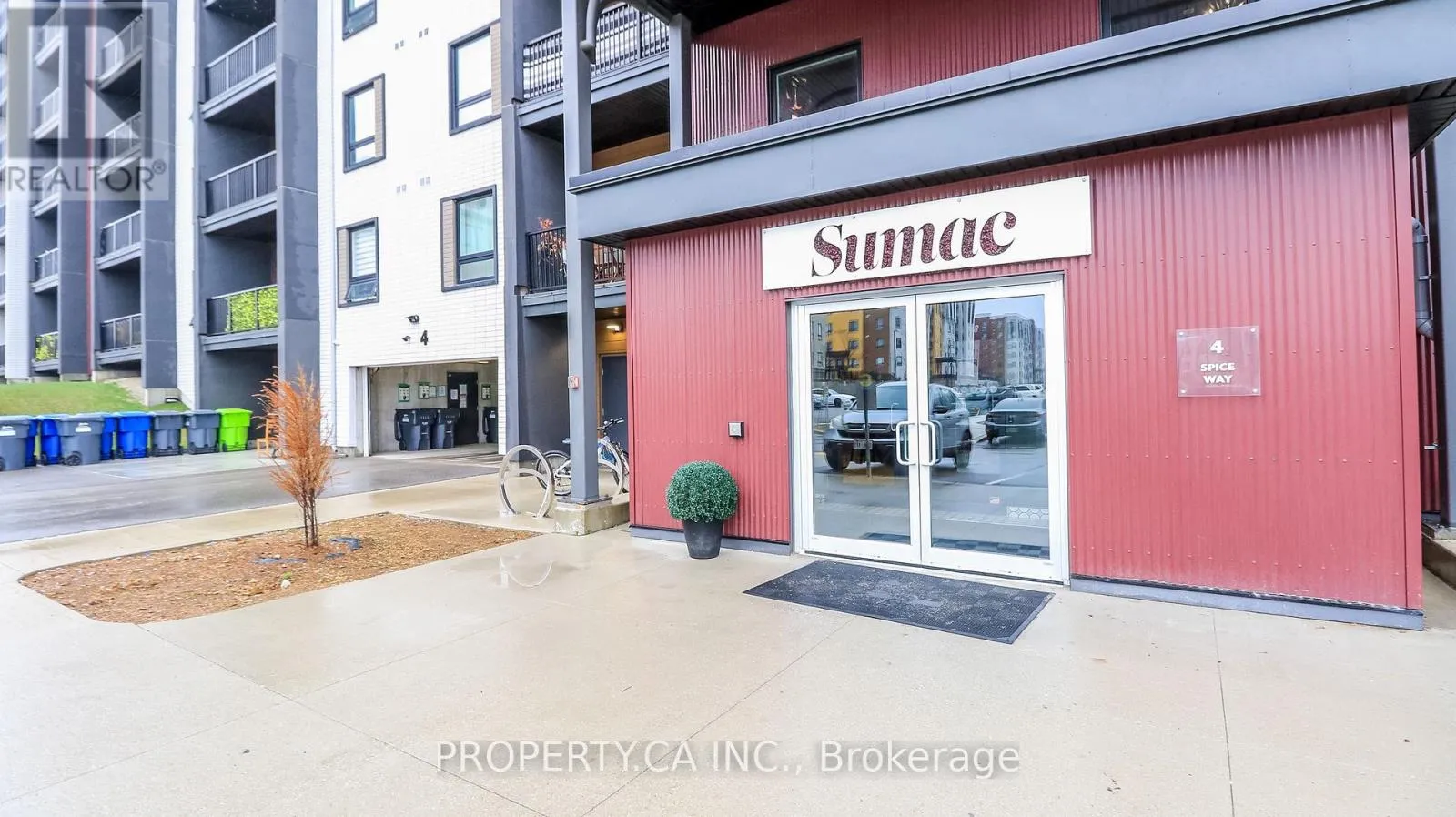 Cross Streets: Mapleview Dr E & Spice Way. ** Directions: Yonge to Mapleview to Spice Way. Welcome to 4 Spice Way, Unit 212 - a beautifully designed 1 bedroom + 1 den condo offering modern living in a highly desirable community. This bright, open-concept layout features a stunning kitchen with a quartz countertop island, perfect for cooking, entertaining, or enjoying your morning coffee. The spacious living area provides plenty of room to relax, with walk-out access to your private balcony-ideal for unwinding at the end of the day. The large primary bedroom offers comfort and ample space, while the versatile den is perfect for a home office, nursery, or additional living space. Enjoy fantastic building amenities, including a fully equipped gym and a chef-style kitchen, perfect for hosting gatherings or expanding your lifestyle beyond your unit. Conveniently located close to shopping, parks, transit, and all of Barrie's key amenities, this condo is ideal for young professionals, couples, or small families. (id:27476)
