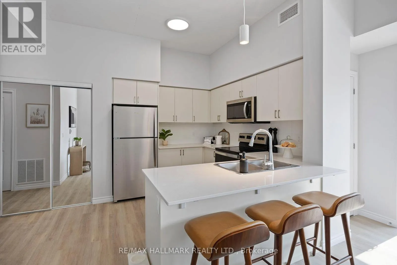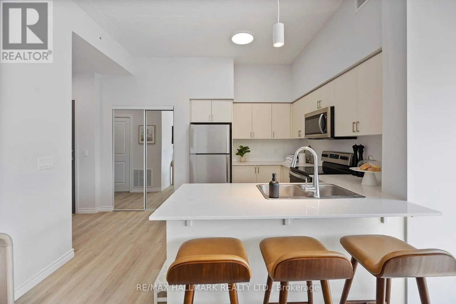 Dean Ave & Yonge St Welcome to The Deanwood in sought-after South Barrie! This bright and spacious 1+Den, 1-bath suite offers approximately 934 sq ft plus a private balcony, providing a perfect blend of comfort and functionality. The open-concept layout features a modern kitchen with sleek finishes and ample cabinetry, flowing into a generous living and dining area with large windows that fill the space with natural light. The versatile den is ideal for a home office or guest area, while the well-sized bedroom offers excellent closet space. Enjoy contemporary design throughout and the added bonus of your own outdoor balcony. Situated in Barrie's desirable Painswick community, this location offers a fantastic lifestyle with easy access to everyday conveniences. Just minutes from the scenic waterfront of Lake Simcoe, parks, walking trails, and beaches, it's perfect for those who enjoy the outdoors. Commuters will appreciate quick access to Highway 400 and GO Transit, while nearby shopping, restaurants, schools, and community amenities make daily living effortless. A great opportunity to live in a modern, professionally managed building in a quiet, family-friendly neighbourhood. (id:27476)