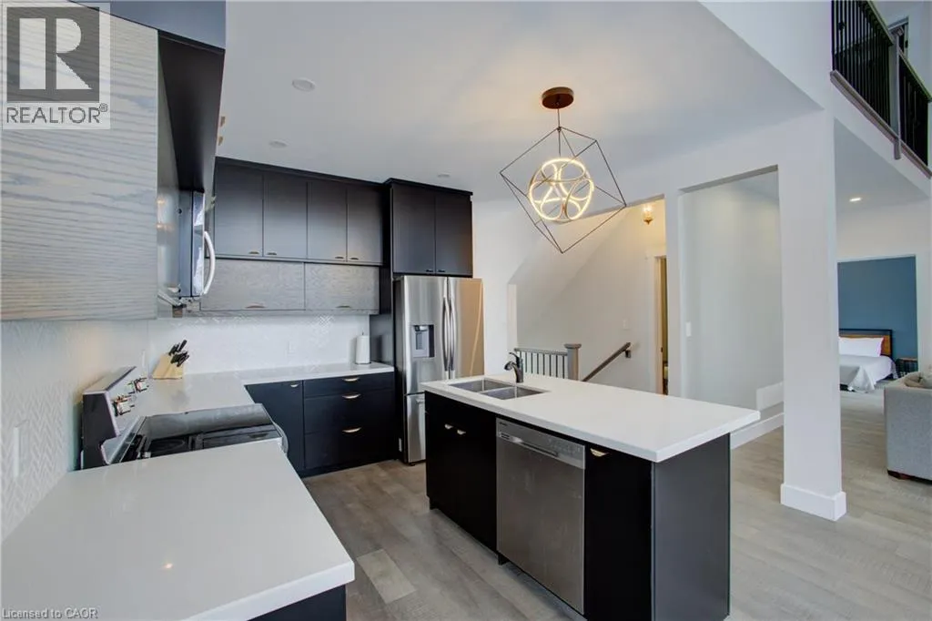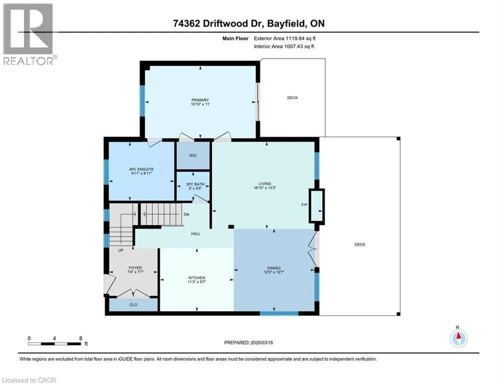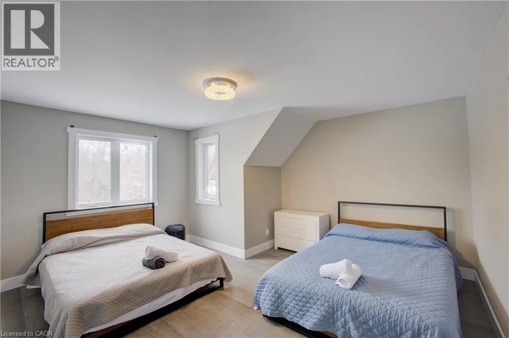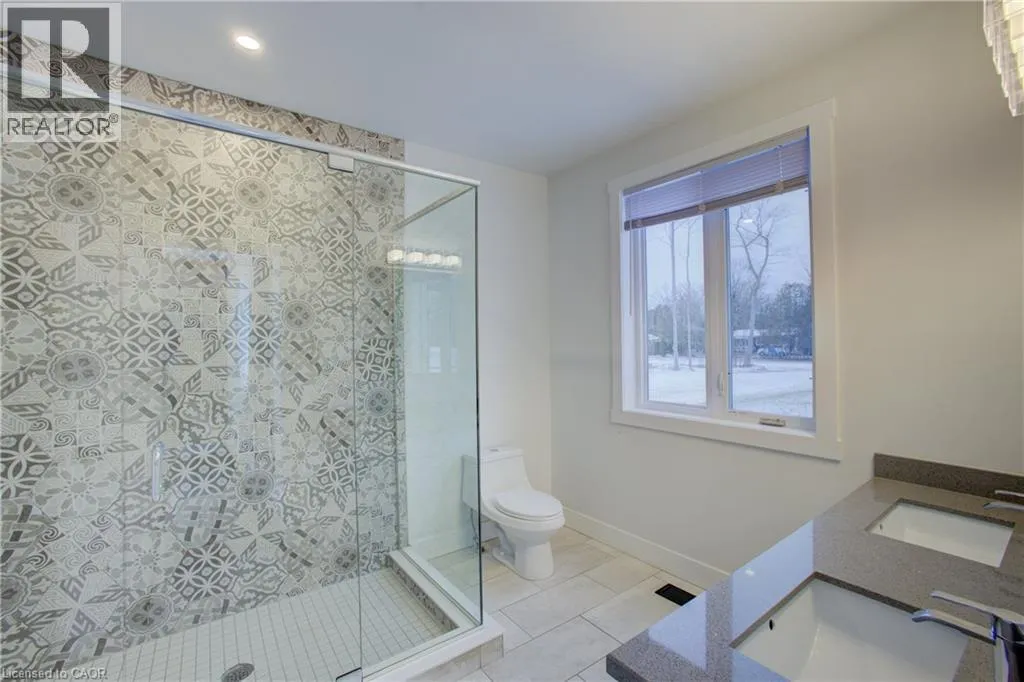 Architecturally striking and set on nearly an acre, with 2,850 sq ft of refined living space, this one-of-a-kind home is just a short walk to the shores of Lake Huron. The space is defined by soaring vaulted ceilings, dramatic full-height windows, and a seamless connection to the surrounding forest. Step inside and the space immediately opens up with natural light pouring in from every angle while treed views become the backdrop to everyday living. The open-plan kitchen, living, and dining area is designed for both comfort and entertaining, anchored by quartz countertops, extensive full-height cabinetry, and dual-aspect windows. A double-sided gas fireplace creates a warm focal point, extending seamlessly to the covered 26â x 12â deck, where a vaulted ceiling enhances the sense of space, perfect for quiet mornings or evenings outdoors. The main floor primary suite is a true retreat, complete with its own walkout to a private deck overlooking the forest and fields, a spacious walk-in closet, and a beautifully appointed ensuite with double vanity and oversized walk-in shower. A convenient powder room completes the level. Upstairs, two generously sized bedrooms with ample closet space are complemented by a 4-piece family bath and an overlook that enhances the homeâs sense of openness. The fully finished basement adds even more versatility, featuring a fourth bedroom, bathroom with shower, laundry, and flexible space ideal for a home office, gym, or recreation area. Outside, the expansive 98 x 356 ft lot offers exceptional privacy, ample parking for 10+ vehicles, and a dedicated firepit area with built-in seating, perfect for gathering under the stars. Located just minutes from the charming village of Bayfield, this property offers an exceptional lifestyle. Bayfield is known for its historic Main Street, boutique shops, dining, marina, and beautiful beaches, making it a sought-after destination for both full-time living and weekend escapes. (id:27476)
