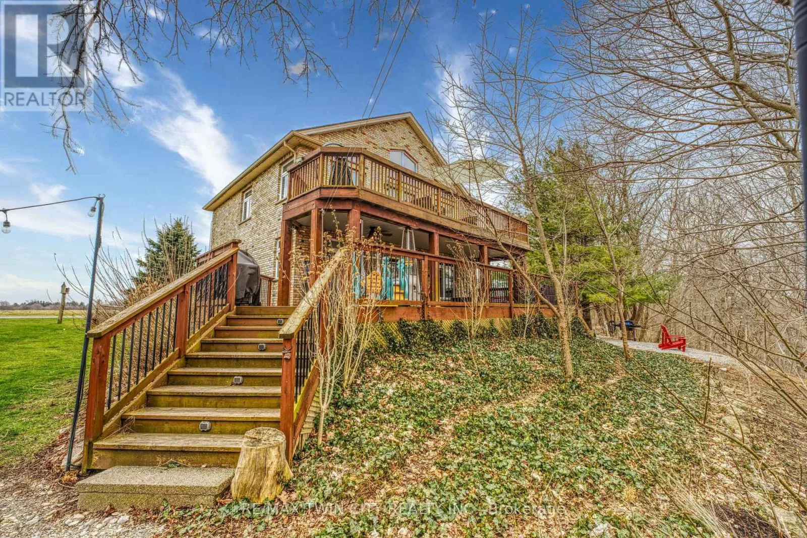 Cross Streets: Plank Rd. ** Directions: Plank Road - Chapel Street. Experience the epitome of luxurious living at 31 Chapel Street, a breathtaking two-story Muskoka-style home situated in the charming community of Vienna. Spanning 2349 square feet of living space, with 1.75 acres of land, this remarkable residence artfully combines sophisticated design with nearly two acres of pristine land along the tranquil Otter River. Upon entry, you are greeted by a spacious foyer that flows into an elegant open-concept main floor. The gourmet kitchen features stunning granite countertops and is complemented by hardwood floors that create a warm, inviting atmosphere. The grand great room serves as the heart of the home, showcasing a striking two-story stone fireplace and offering captivating views to the second-floor mezzanine. Expansive walk-out patio doors seamlessly connect the indoor space to the enchanting rear yard, making it ideal for entertaining. The main floor also boasts a sunlit dining room, surrounded by windows, and an oversized bedroom with a luxurious three-piece ensuite bathroom. On the second floor, a stunning mezzanine overlooks the great room and leads to a serene balcony, perfect for enjoying scenic vistas. This level includes a spacious guest bedroom and an opulent master suite featuring a private four-piece ensuite bathroom finished in exquisite marble. The professionally landscaped yard evokes a true Muskoka feel, providing picturesque views of the river, lush trees, and abundant wildlife. A two-story deck, complete with a soothing hot tub, creates an ideal outdoor haven for relaxation. The thoughtfully designed lower level enhances the home's functionality, featuring upgraded cork flooring, a fourth bedroom, a cold room, a utility room, and an additional three-piece bathroom, with convenient access to the garage. This extraordinary property combines luxury, comfort, and serene living, inviting you to embrace a lifestyle enriched by nature. 31 Chapel Street is more than a residence; it is a sanctuary of elegance. (id:27476)
