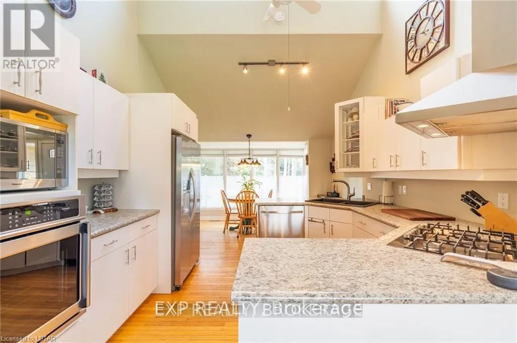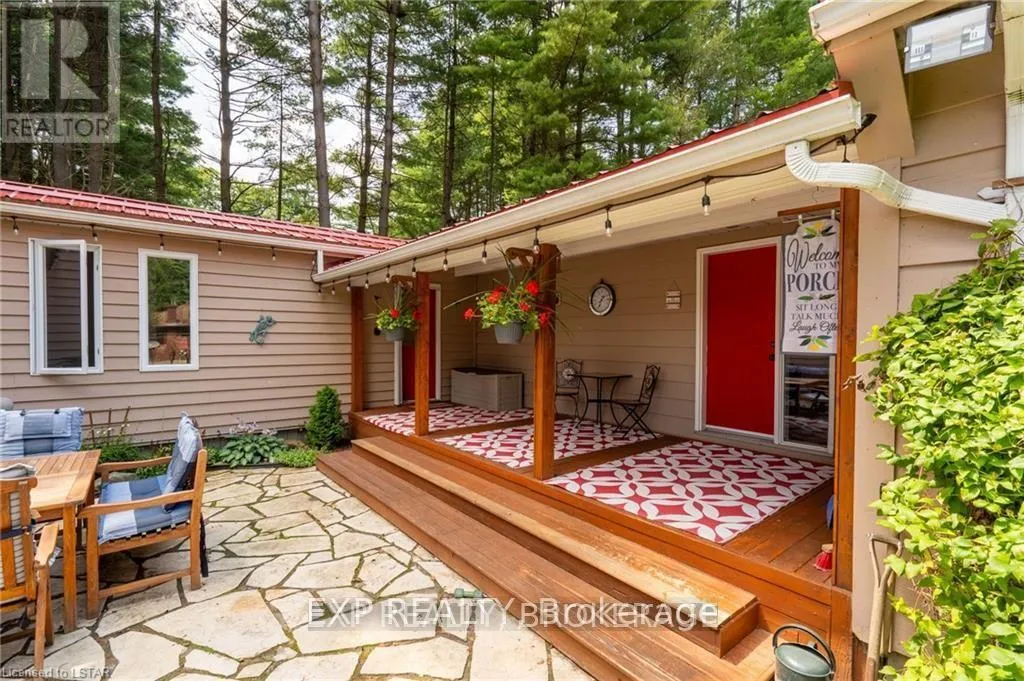 PLANK RD., 2KM NORTH OF STRAFFORDVILLE MULTI LIVING: This beautiful, private, immaculately kept home is situated on .62 acres of picturesque property. Also included is a pool cabana, fire-pit, and surrounded by many tall shade trees. There are 2 completely secure and separate residential buildings, joined by a heated, enclosed breezeway. The main structure is a ranch style with 3 bedrooms and a 3 piece and 4 piece bathroom. The main floor features a living room with vaulted ceilings, hardwood flooring, and gas fireplace. The main floor also includes a modern kitchen, pantry, dining room, and laundry in the mud room. The lower level includes a fully furnished family room with a gas fireplace, a workshop, cold room, and a storage area. The second structure is a paradise on its own, it is a Cape Cod style bungaloft. The main floor features a vaulted ceiling with gas fireplace, a bedroom with a cheater ensuite, kitchen, and dining area leading to an outside deck. The 2nd floor includes a guest bedroom with a sitting area and balcony that overlooks the main floor. A chair lift is included for easy access to the upstairs. There is a large unfinished basement that spans the whole area of the 2nd structure.These homes are absolutely move-in ready, extremely well maintained, included is a newer metal roof, sundeck, updates to the ensuite, and some flooring. (id:27476)