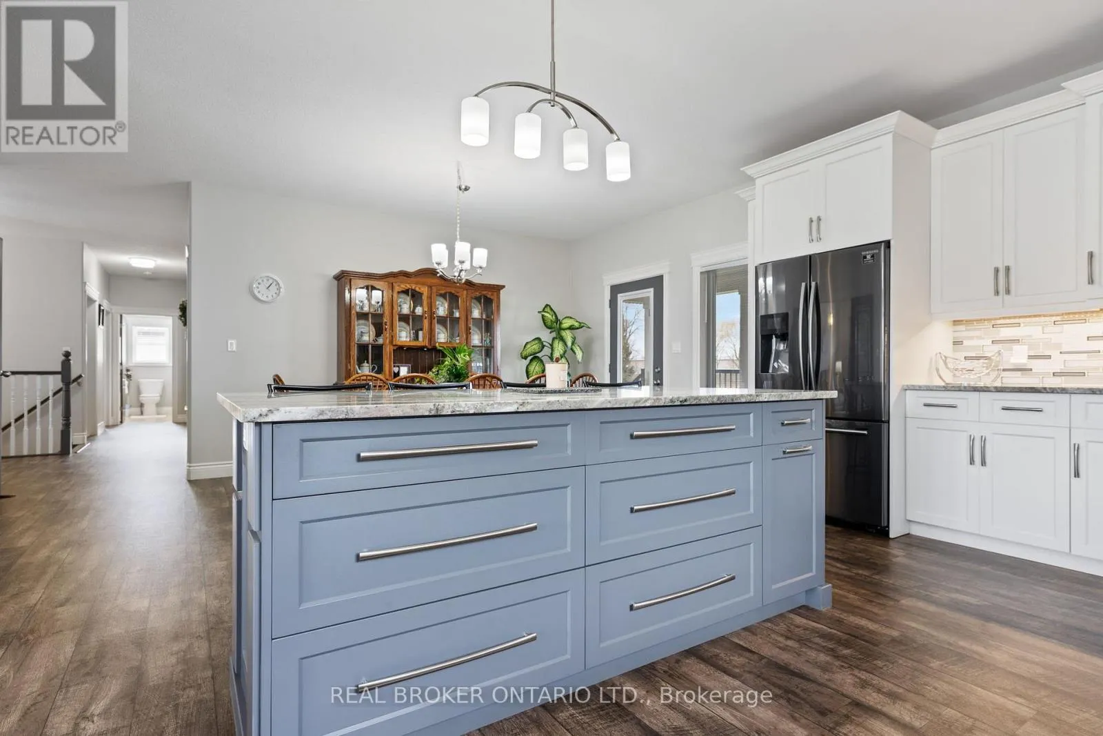 Cross Streets: Eden Line. ** Directions: Eden Line/Plank. Welcome to Eden-where country charm meets modern comfort. Ideally located just 7 minutes south of Tillsonburg, this beautifully finished home sits on a picturesque lot backing onto open fields, offering both privacy and scenic views. The main floor offers 1,897 sq ft of thoughtfully designed living space, perfect for families. At the heart of the home is a stunning custom kitchen featuring granite countertops, tiled backsplash, under-cabinet lighting, a centre island, and a walkout to the covered rear deck-ideal for entertaining. A separate living room with French doors provides a quiet retreat for more intimate gatherings. The spacious primary bedroom includes a full ensuite and a large walk-in closet, while the convenient main floor laundry room offers plenty of cabinetry for organization. The fully finished lower level expands your living space with a large recreation room, two generous bedrooms, a full bathroom, and an oversized games room-perfect for kids and entertaining alike, with ample space for a pool table or poker nights. Car enthusiasts and hobbyists will appreciate the extra-wide double car garage with 10-foot doors, fully heated with an overhead gas heater and equipped with an additional gas line for a stove hookup. Step outside to enjoy the covered composite deck-low-maintenance and built to last-overlooking the beautifully landscaped yard. A 10' x 20' garden shed with power and water supply provides excellent additional storage. The current owners have invested significantly in the landscaping, including a full in-ground sprinkler system for easy maintenance. Additional features include a high-efficiency gas furnace, central air, HRV system, gas water heater, and owned water softener. This is a turnkey property offering space, quality, and lifestyle-don't miss your opportunity to call it home. (id:27476)