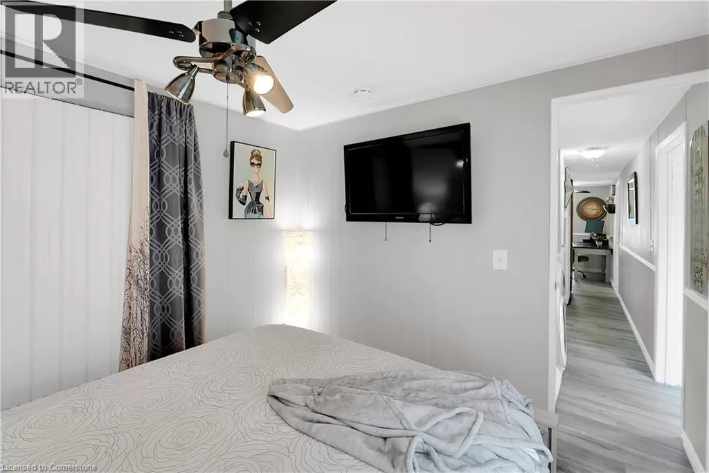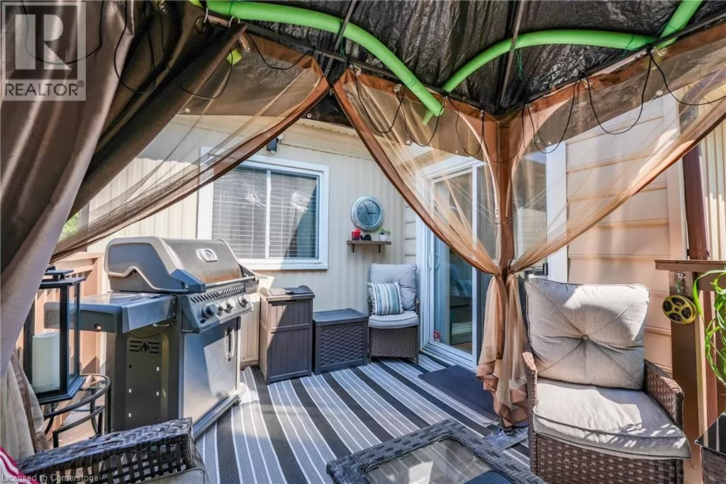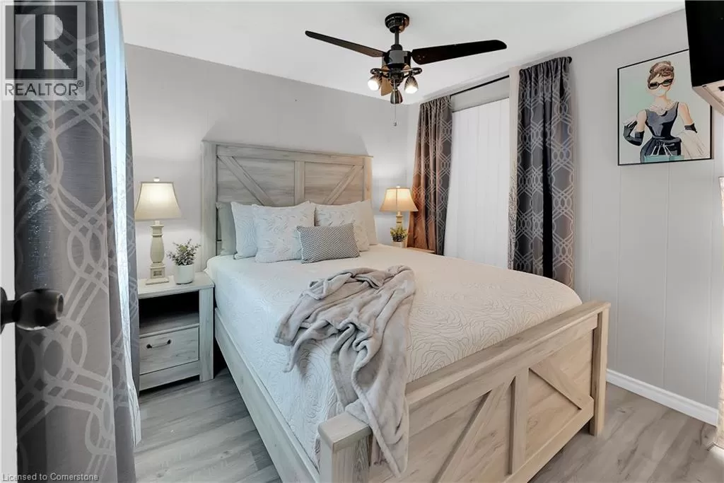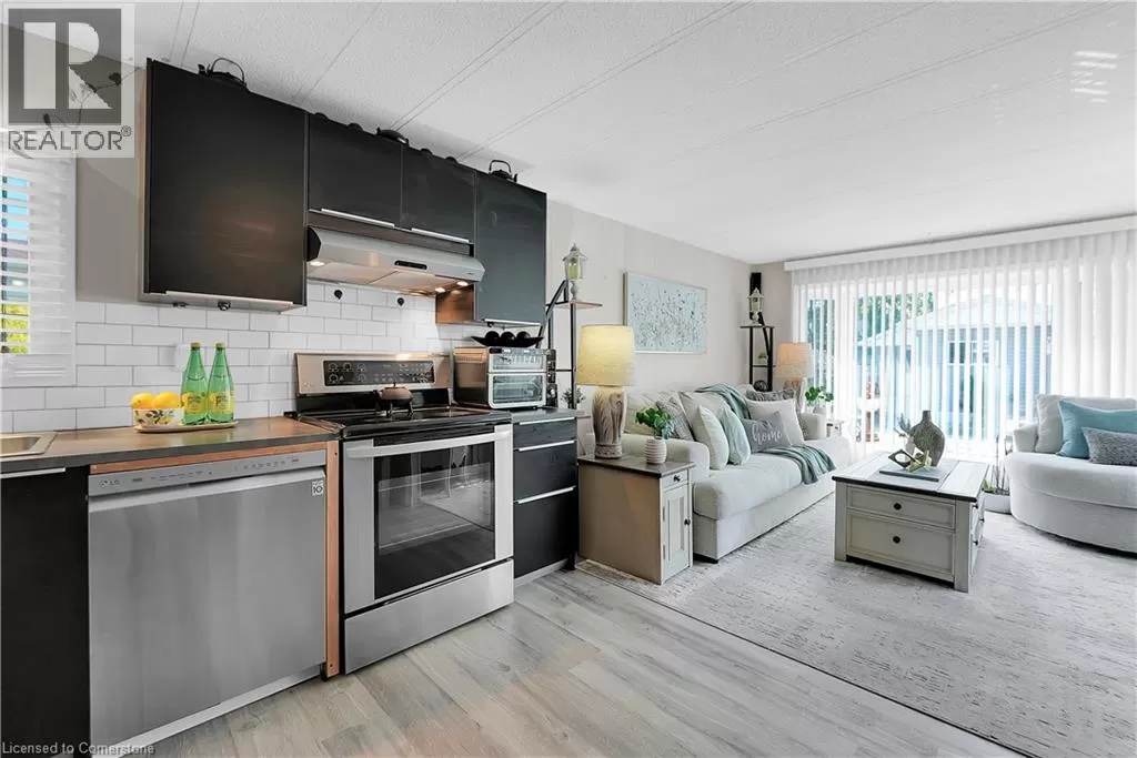 From QEW, Exit Ontario St, South on Ontario St, Left onto South Service Rd, Right onto Sann Rd, Left on Martha Lane. COMFORT, CONVENIENCE & COMMUNITY ... Welcome to 4595 Martha Lane, located in the charming Golden Horseshoe Estates community, just minutes from the QEW, scenic vineyards, local restaurants, parks, and shopping. Only 10 minutes to the Grimsby GO Station, 30 minutes to Niagara Falls and the U.S. border, and just an hour from Toronto, its the perfect blend of small-town charm and big-city access. Step into the inviting screened-in front porch, perfect for enjoying a morning coffee, and walk into a bright mudroom leading directly to the UPDATED KITCHEN. Renovated just 6 years ago, the kitchen features modern appliances and durable vinyl flooring that flows seamlessly throughout the home. The spacious, sunswept living room boasts large, UPDATED WINDOWS that fill the space with natural light. Down the hall, find a versatile bedroom/den with the updated electrical panel, and a 4-pc bathroom conveniently located behind the laundry area. The primary bedroom offers a generous closet and houses the tankless hot water heater for added efficiency. Across from the laundry is a 4-SEASON SUNROOM with an abundance of windows, sunlight, and sliding patio doors opening to a private deck. Here, enjoy a large GAZEBO (patio furniture included), a Napoleon gas BBQ, and a wood pathway leading to the driveway. The PRIVATE YARD is a gardenerâs delight, featuring numerous gardens and a unique double-shed setup - one large shed with hydro and loads of storage, and a smaller attached shed for extra space. A gated area behind the sheds offers added privacy. With a roof replaced 8 years ago, extra-insulated flooring, parking for 3 vehicles, and a pad fee of $737.86/month including taxes & water, this property blends comfort, function, and outdoor enjoyment in an unbeatable location. CLICK ON MULTIMEDIA for virtual tour, drone photos, floor plan & more. (id:27476)