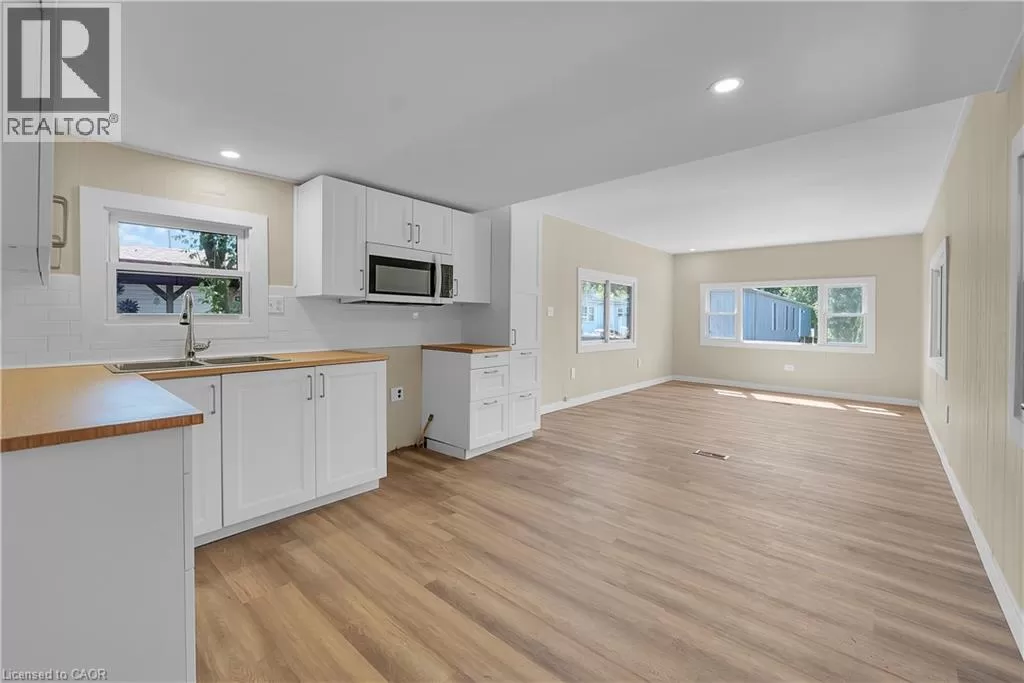 From QEW, Exit Ontario St, South on Ontario St, Left onto South Service Rd, Right onto Sann Rd, Left on Abigail Lane. FRESHLY RENOVATED & MOVE-IN READY ⦠Welcome to 4595 Abigail Lane in Beamsville, a beautifully transformed home located in the sought-after Golden Horseshoe Estates community. Every inch of this property has been thoughtfully updated in 2025, blending modern convenience with stylish finishes so you can simply move in and enjoy. Step inside to discover a fully renovated kitchen, complete with brand-new cabinetry, countertops, and appliances. The bright, spacious living room is anchored by large windows with updated glass, flooding the space with natural light. New flooring flows seamlessly throughout, creating a fresh and cohesive feel. Down the hall, youâll find a renovated 4-pc bathroom with the added convenience of in-suite laundry, plus a second exterior door for easy access. The primary bedroom features a cozy corner closet, while a second bedroom provides flexibility for guests, a home office, or hobbies. Comfort is assured with a NEW furnace & AC, roof, fresh paint throughout, all-new PEX plumbing, updated siding, and modern pot lighting. The attention to detail continues outside with a NEW DECK, rails, and spindles, as well as a new entry door. This property not only delivers style and function but also an unbeatable location just minutes from the QEW, award-winning vineyards, local restaurants, parks, and shopping. Commute with ease: 10 minutes to the Grimsby GO Station, 30 minutes to Niagara Falls and the U.S. border, and only an hour to Toronto. Enjoy the sense of community and convenience with a pad fee of $716.87/month including taxes & water, making this an affordable and desirable option in the heart of Niagara. 4595 Abigail Lane is the perfect blend of modern updates, easy living, and a location that puts everything within reach. CLICK ON MULTIMEDIA for virtual tour, drone photos, floor plans & more. (id:27476)