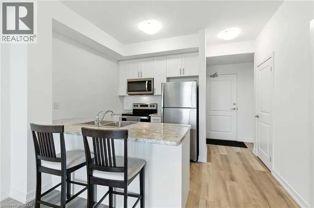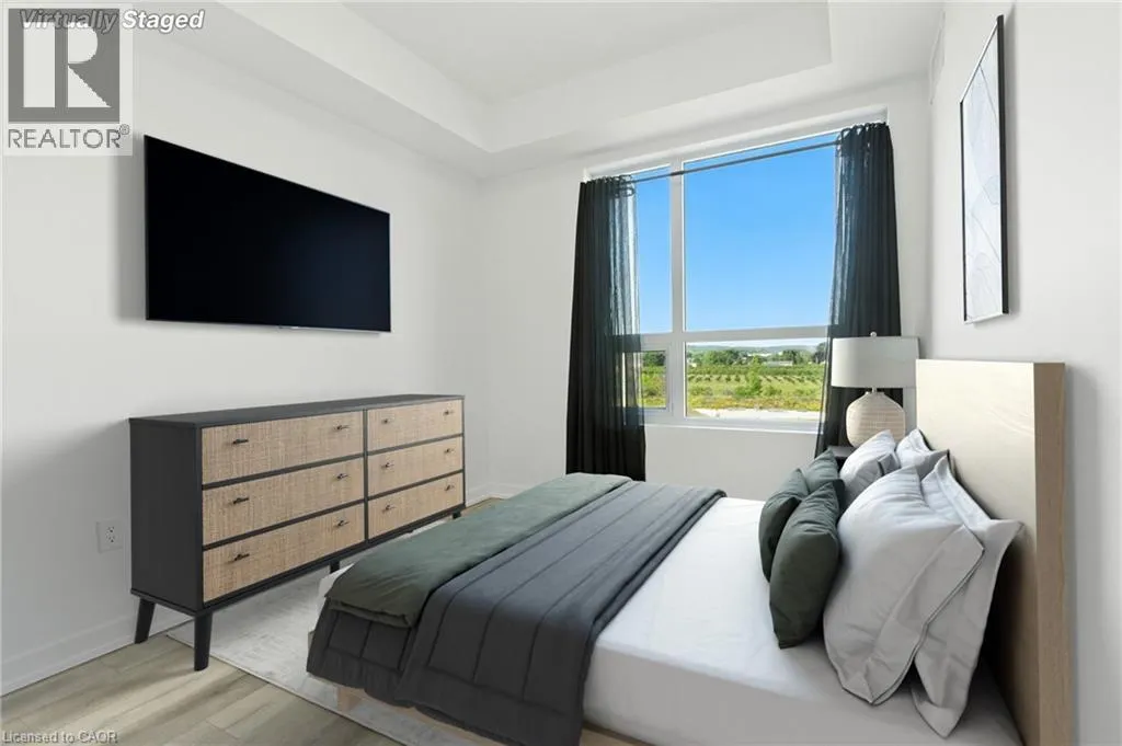 Ontario Street to Greenlane Welcome to Unit 405 at 5055 Greenlane Road, Beamsville! Built in 2022, this 1-bedroom + den, 1-bathroom condo still shows like brand new, with appliances that have never been used. The open and airy layout is complemented by a versatile den that works perfectly as a home office or could serve as a second bedroom for guests when needed. The sleek kitchen with stainless steel appliances flows seamlessly into the living area, leading to your private balcony where you can enjoy beautiful views of the lake. This unit also offers the convenience of in-suite laundry and 1 underground parking spot. The building provides fantastic amenities including an elevator, exercise room, party room, rooftop deck/garden, and visitor parking. Ideally located near schools, shops, restaurants, transit, and easy highway access, this condo is an excellent choice for commuters, first-time buyers, or downsizers. Donât miss your opportunity to enjoy modern condo living with a view â book your showing today! (id:27476)