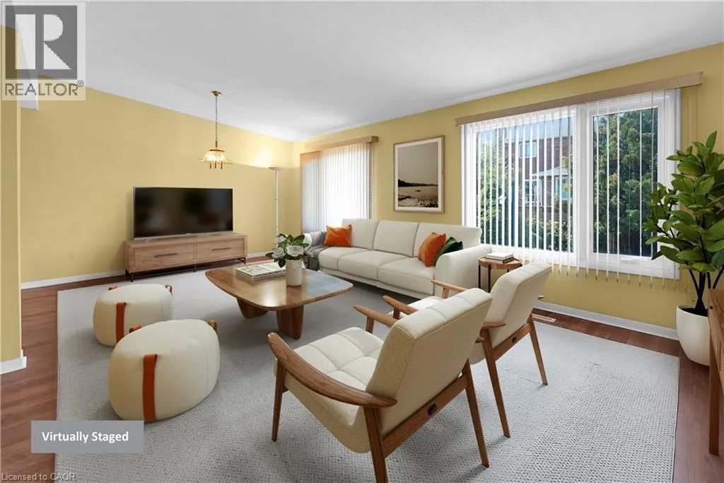 From QEW, Exit Ontario St (Beamsville), Left onto Ontario St, Left onto Greenlane, Left onto Juniper Court. END UNIT CHARMER ... 4584 Juniper Court offers the ideal balance of comfort, convenience, and charm in the heart of Beamsville. This 2-storey END UNIT townhome is set in a family-friendly neighbourhood, surrounded by the regionâs best â parks, schools, shopping, dining, local wineries, and fruit stands - all just minutes from your door. Quick highway access makes commuting a breeze, while the home itself provides a warm and inviting retreat. Step inside through the bright foyer, where ceramic flooring, a vaulted ceiling with skylight, a convenient 2-pc bath, and a front closet creates a welcoming first impression. Inside entry from the garage allows for easy parking during those colder months. The kitchen features classic oak cabinetry with ceramic floors, seamlessly opening into a cozy dinette. From here, sliding patio doors lead to the fully fenced yard and spacious deckâperfect for summer gatherings or quiet evenings outdoors. The living room impresses with soaring vaulted ceilings and laminate flooring, adding an open and airy feel to the main level. Upstairs, the hallway overlooks the foyer space below, enhancing the sense of light and flow. Two comfortable bedrooms and a 4-pc bath complete this level, offering space for family, guests, or a home office. The finished basement extends your living space with a versatile recreation room, cold room, laundry with utility area, and additional storage. With a furnace updated in 2020, key mechanicals are in place for peace of mind. Whether youâre a first-time buyer, downsizing, or simply looking for a home with both functionality and character, this townhome delivers. Discover the ease of Beamsville living with all the charm of Niagara right at your doorstep. CLICK ON MULTIMEDIA for virtual tour, drone photos, floor plans & more. (id:27476)