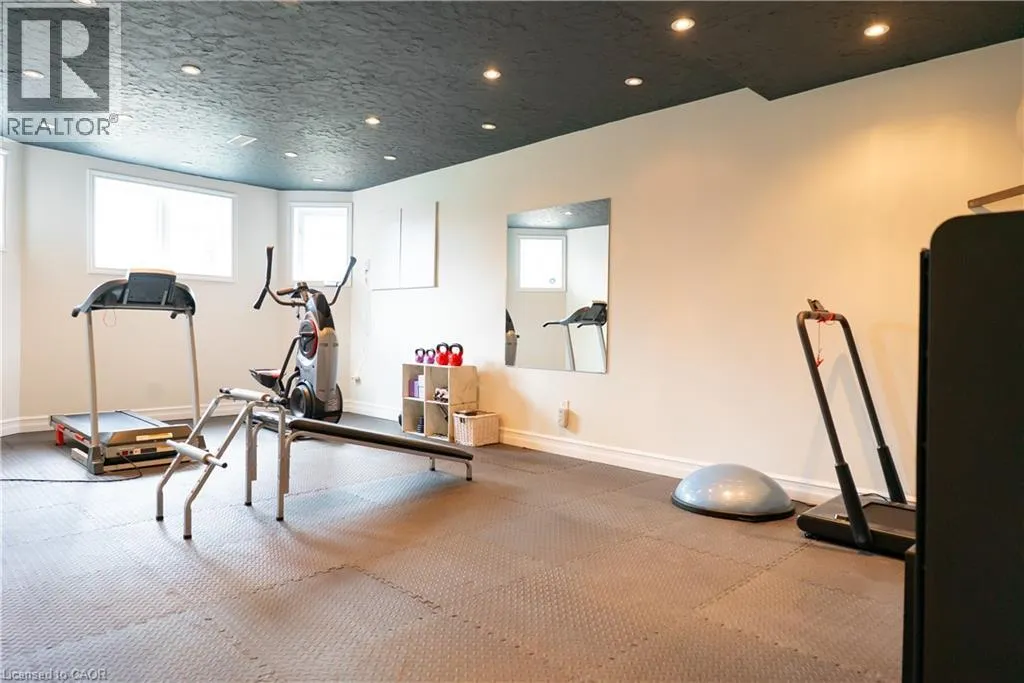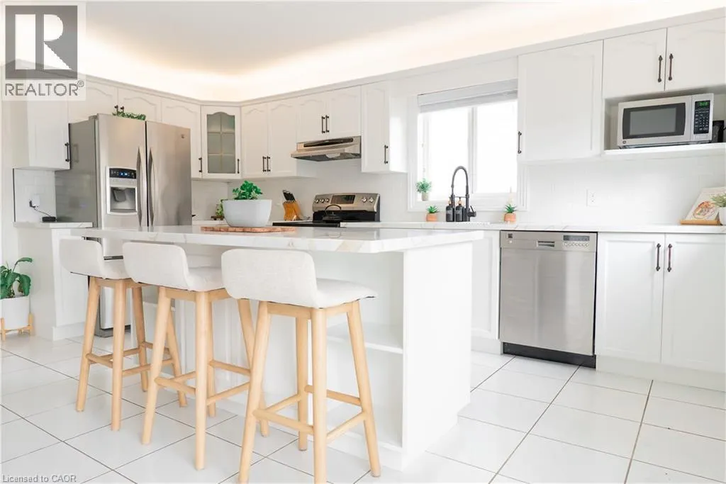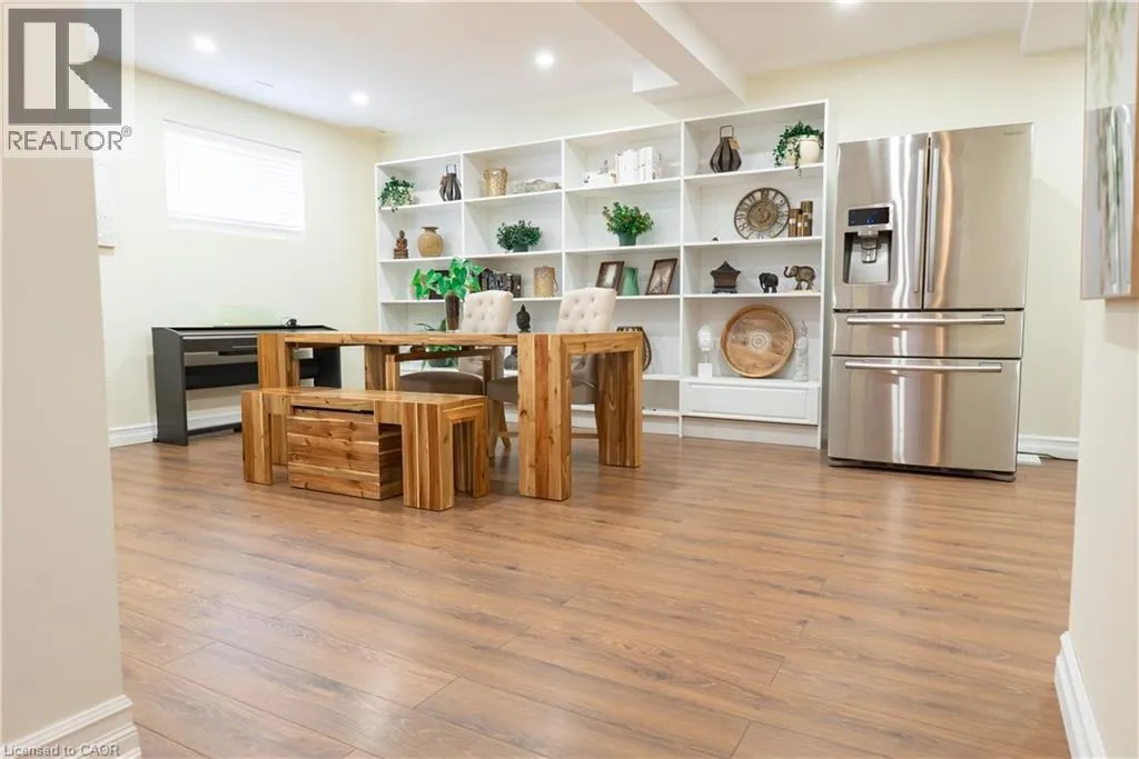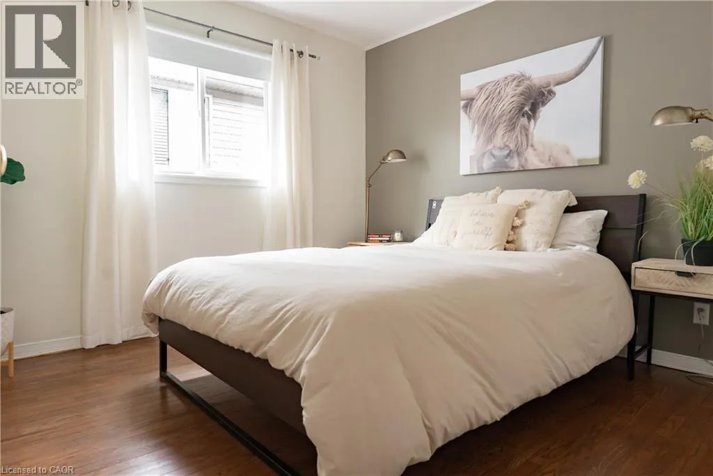 Ontario Street to Drake Avenue Welcome to this beautifully cared-for raised bungalow with over 3000sqft of living space offering warmth and versatility across two fully finished levels. Sun-filled and inviting, this home provides an ideal layout for families, multi-generational living, or anyone seeking generous and functional living space. The main level features an open-concept layout with large windows, rich hardwood flooring, and a seamless flow between the living, dining, and kitchen areas. The updated kitchen is a true highlight, showcasing bright white cabinetry, quartz countertops, stainless steel appliances, modern hardware, and a spacious island perfect for both meal prep and gathering. Three bedrooms and two full baths on the main level, provide flexibility for families, guests, or home offices. The fully finished lower level significantly expands the homeâs functionality. Enjoy a spacious recreation area with beautiful built-in shelving, a comfortable lounge zone, and an open area ideal for a home office or studio setup. A second kitchen/wet bar area offers added convenience for entertaining or multi-use living arrangements. The lower level also features an oversized bedroom with an above-grade window, a bright and spacious home gym, a large storage/wine/pantry room, and an additional bathroomâmaking the space highly adaptable to a variety of needs. Step outside to a private, fully fenced backyard designed for enjoyment and relaxation. The expansive deck wraps around a beautiful onground heated pool, creating the feel of a resort-style outdoor space during the warmer months. A gazebo lounge area with outdoor tv, pool house/storage structure, raised planters, and thoughtful landscaping complete this outdoor retreat. Move-in ready and meticulously maintained, this home offers exceptional lifestyle value in a welcoming, family-friendly neighbourhood. (id:27476)