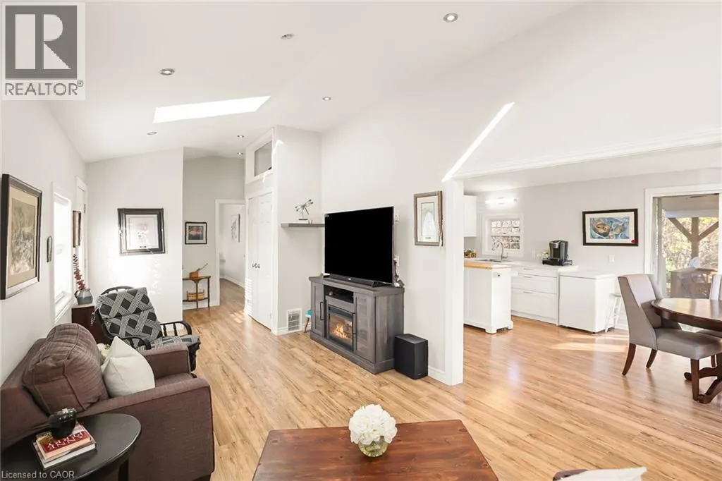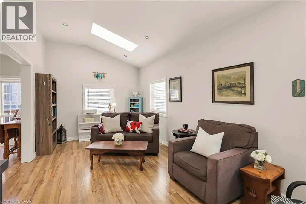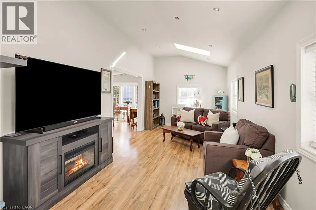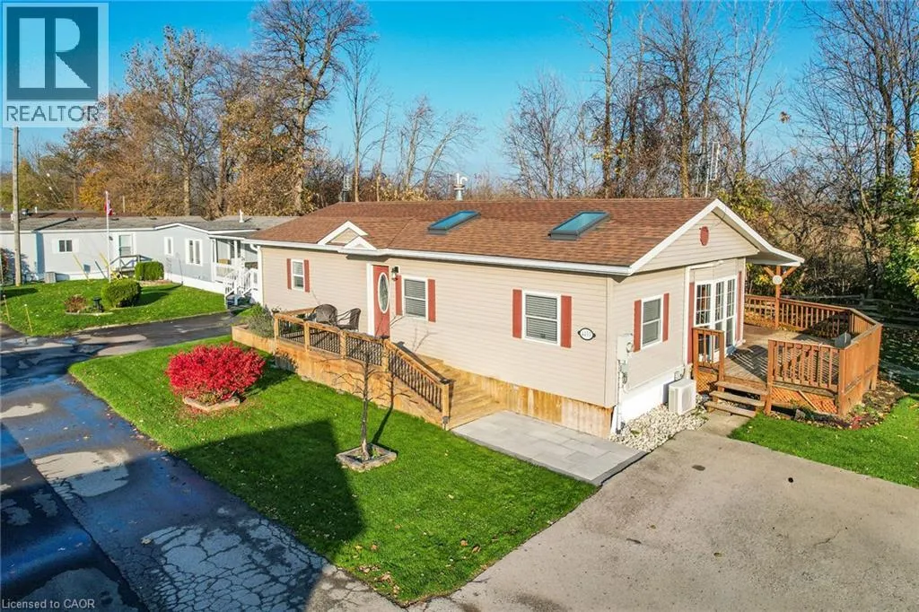 From QEW, Exit Ontario St, South on Ontario St, Left onto South Service Rd, Right onto Sann Rd STYLISH & UPDATED BUNGALOW IN GOLDEN HORSESHOE ESTATES! Welcome to 4453 Timothy Lane, a beautifully updated 2-bedroom, 1-bathroom bungalow nestled in the heart of wine country. This charming and affordable home has been thoughtfully remodeled with modern touches and neutral finishes throughout, including drywall, fresh flooring, and a soft, contemporary colour palette. Step inside to a bright and airy living room featuring pot lights and two large skylights that bathe the space in natural light. The adjoining dining area, with its vaulted ceiling, opens to a stunning completely redone kitchen with sleek stainless steel Appliances, ample cabinetry, and stylish lighting - perfect for everyday living or entertaining. The refreshed 3-pc bathroom includes a walk-in shower, offering both comfort and convenience. Outside, enjoy your own private yard with no rear neighbours, BRAND NEW deck, and a custom oversized shed - ideal for storage, hobbies, or gardening gear. The double drive provides plenty of parking. Located in the charming Golden Horseshoe Estates community, just minutes from the QEW, scenic vineyards, local restaurants, parks, and shopping. Only 10 minutes to the Grimsby GO Station, 30 minutes to Niagara Falls and the U.S. border, and just an hour from Toronto - itâs the perfect blend of small-town charm and big-city access. Pad fee of $733.38/month includes Taxes & water. CLICK ON MULTIMEDIA for the full virtual tour, photos & more! (id:27476)