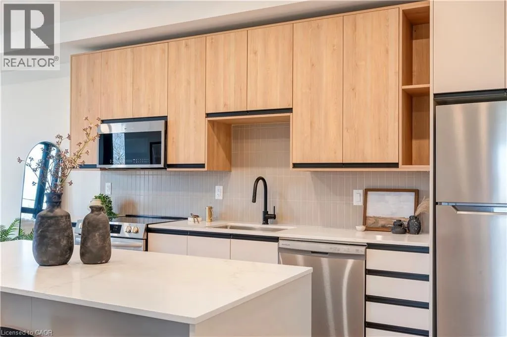 King Street to Hillview Drive in Beamsville. Experience modern living at The Madera with assigned secured/heated parking, smart home technology, and instant high-speed internet (included in rate from Cogeco) throughout the building. This pet-friendly community offers a safe and welcoming environment for those tenants seeking an upgraded lifestyle. This development offers modern interiors featuring luxury vinyl tile (LVT) in the foyer, kitchen, and living areas, with ceramic tile bathroom floors and tub/shower surrounds. Floor-to-ceiling windows, private balconies, and in-suite laundry are included in every unit, with two-bedroom layouts offering a tub in the main bath and a stand-up shower in the ensuite. Kitchens are equipped with large islands and quartz countertops, custom soft-close cabinetry, polished quartz counters with under mount stainless steel sinks and pull-down faucets, tiled backsplashes, under cabinet LED lighting, and a full stainless steel appliance package including dishwasher and microwave. Mechanical and plumbing features include air-source VRF heating and cooling, ERVs in each unit, modern plumbing fixtures, domestic hot water provided by an air-source heat pump, and a high-efficiency electric water heater. The building is finished with pot lights throughout, stylish flush-mount fixtures in living/dining areas and bedrooms, a TV-ready living room wall, and energy-efficient LED lighting across all common and private spaces. NINE 2 bedrooms units available immediately. All 9 floor plans available that vary in size (977 sq ft-1028 sq ft) and rates from $2800-$3000. All utilities and underground parking extra (id:27476)