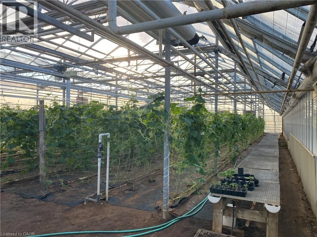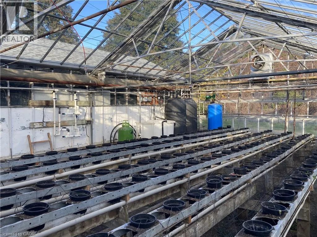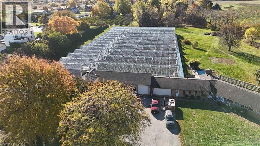 QEW, South Ontario St., West on Greenlane Rd. A rare 4.69-acre live/work agricultural property featuring two homes and a fully operational 44,500 sq. ft. greenhouse. Located just west of Lincoln's urban boundary, the property combines residential rental income with established agricultural infrastructure and room for future expansion. With quick access to the QEW, it offers strong visibility and convenience for both personal use and business operations. The year-round greenhouse is equipped with a boiler system, upper and lower gas line heaters, and a generator with Enbridge gas hookup for uninterrupted production. Three independent growing zones support crop diversification or phased growing, while an automation system provides precise climate and environmental control. Additional features include a cooler, packing room, loading and garage area, a private office connected to the greenhouse, and a separate staff lounge and lunch room for efficient workflow. The residential portion includes two detached single-level bungalows (1388 sq.ft. & 1706 sq.ft. respectively), each with three bedrooms, two bathrooms, and attached garages; one also offers an in-ground pool. Ideal for growers, agri-business operators, or investors seeking multiple revenue streams, the property is serviced by municipal water, natural gas, and septic system, with growing equipment included. (id:27476)
