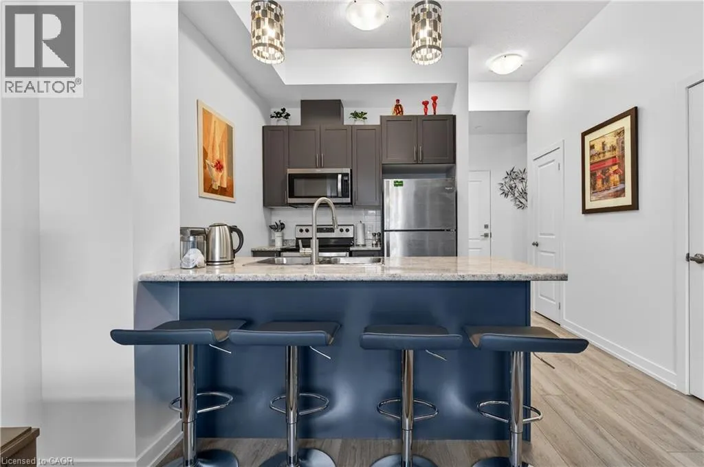 FOLLOW ONTARIO ST TO GREENLANE GO WEST ON GREENLANE, UPTOPIA BUILDING IS ON RIGHT HAND SIDE Welcome to the penthouse level at one of Beamsvilleâs most desirable buildings. This rare top-floor 1 Bedroom + Den condo offers complete privacy with no one above you, upgraded finishes throughout, and an oversized private balcony showcasing beautiful courtyard and escarpment views.Featuring 9 ft ceilings and a bright open-concept layout, the unit includes a spacious living room with direct balcony access, a modern kitchen with stainless steel appliances, a versatile den perfect for a home office, a generous bedroom, a 4-pc bathroom, and convenient in-suite laundry. Truly move-in-ready and designed for comfort. This unit includes 1 owned underground parking space and an owned locker, with condo fees covering common elements, insurance, geothermal heating & cooling, and moreâkeeping long-term costs low. Residents enjoy an impressive list of amenities: a stylish party room, full fitness center, dedicated bike storage, rooftop patio with panoramic views, and plenty of visitor parking. Located in the heart of wine country and steps to TD Bank, Sobeys, restaurants, parks, and award-winning vineyards. Just minutes to the future Beamsville GO Station and with quick access to the QEW, this is the perfect home for commuters, first-time buyers, downsizers, or investors seeking reliable rental potential. Penthouse living, unbeatable location, and a beautifully maintained buildingâyour opportunity awaits. (id:27476)