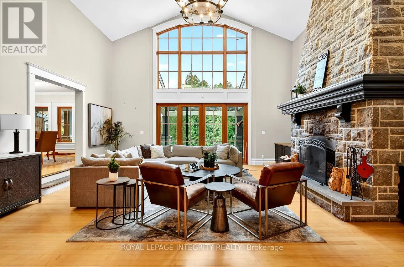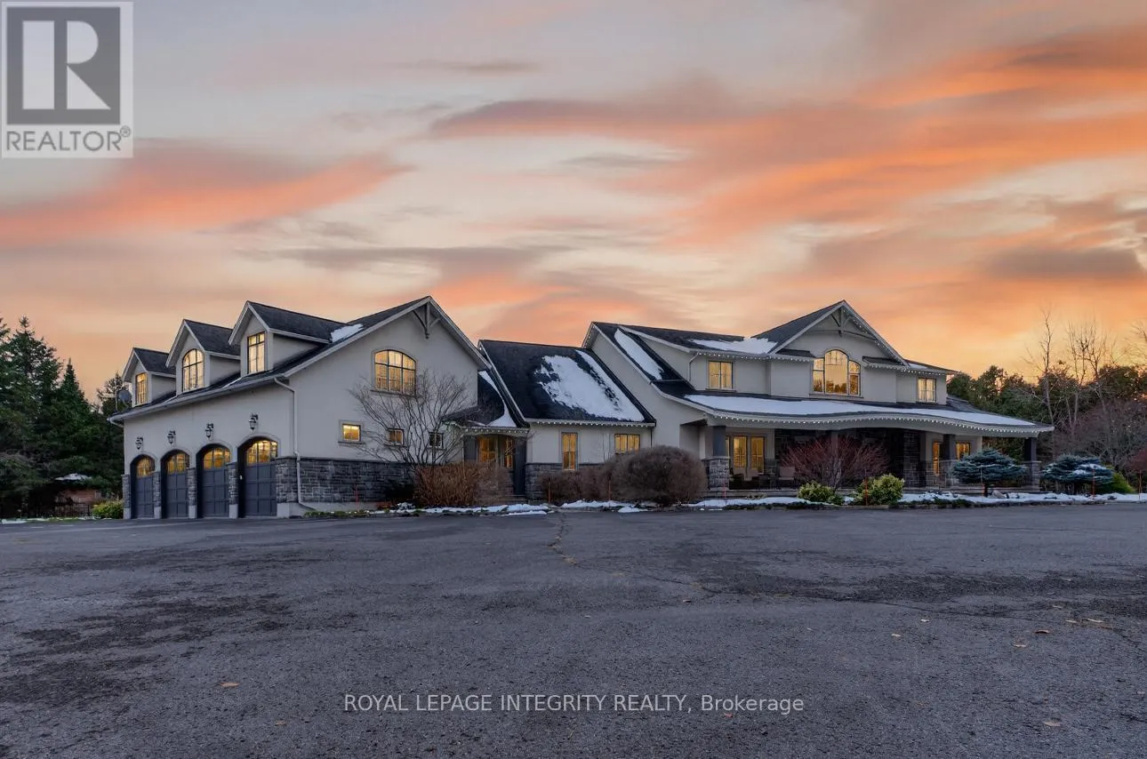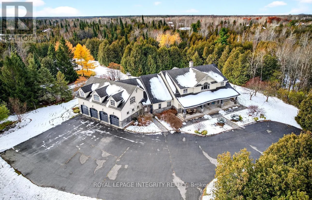 Cross Streets: Richmond and Franktown. ** Directions: Continue onto Hwy 7/Trans-Canada Hwy/ON-7. Take exit toward Ashton Station Rd. Turn left onto Ashton Station Rd. Keep left to stay on Ashton Station Rd. Turn right onto Franktown Rd. Continue onto Richmond Rd/Route 10. Destination will be on the left. Welcome to Braveheart Estate, a breathtaking 39 acre country retreat located just 20 minutes from Ottawa. This exceptional property features a grand 6,700 sq. ft. executive residence with 5 bedrooms, plus a separate 2 bedroom apartment great for family or rental opportunity situated above a spacious 4 car garage.Set on 5 beautifully landscaped acres, the home offers stunning outdoor spaces including stone patios and walkways, and a 50x30 ft heated saltwater pool, outdoor shower and kitchen. There is also an indoor hot tub in a charming cabana perfect for relaxing or entertaining .Inside, luxury meets comfort. The main level has 2 primary suites with private ensuites, a guest bedroom, a home office, a dramatic Grand entrance, and incredible living room with a 2 story stone fireplace, a cozy family theatre room, and a gourmet chef's kitchen designed for both function and style.For equestrian enthusiasts, the estate includes a 5 stall barn with hay loft, a sand riding ring, and approximately 10 acres of fenced pasture. A 3,000 sq. ft. detached workshop provides 4 large bays and 5 12-ft industrial overhead doors ideal for hobbies, storage, or business use.The remaining 25 acres are covered in pristine forest with scenic trails to explore.9 separate heated floors throughout the home.Landscaping professionally maintained year round. Furnace 2022, One Boiler 2022 the other 2020, 5 new air conditioning units, Sound system through the house 2022, Security system upgraded 2021, Fridge 2021, Washer & Dryer 2023, Ensuite bathroom 2021 & Loft bathroom 2021, Sump pump basement 2025, Pool liner 2022, LED lights surrounding the home 2022. (id:27476)