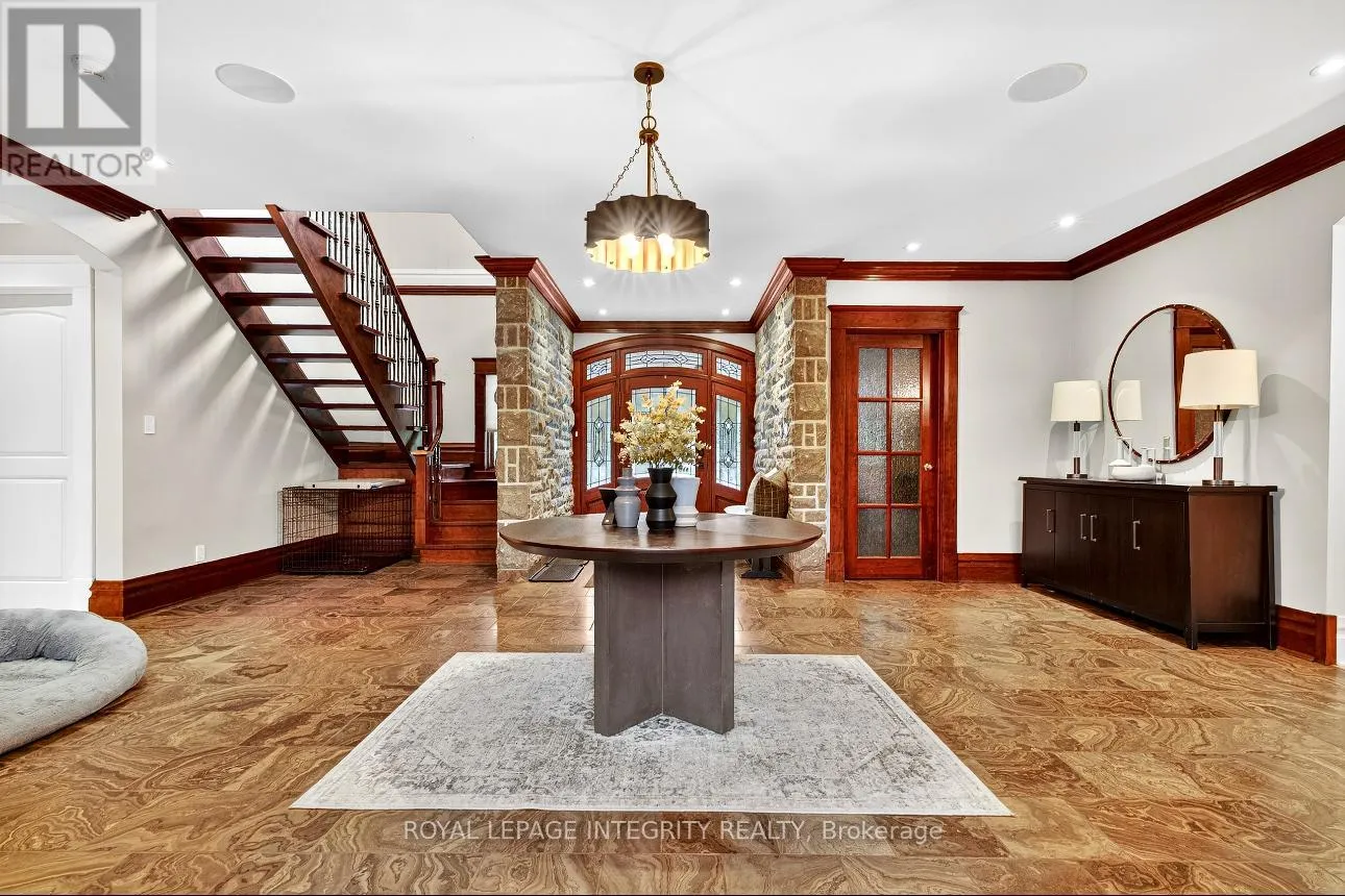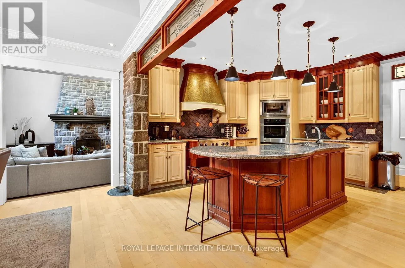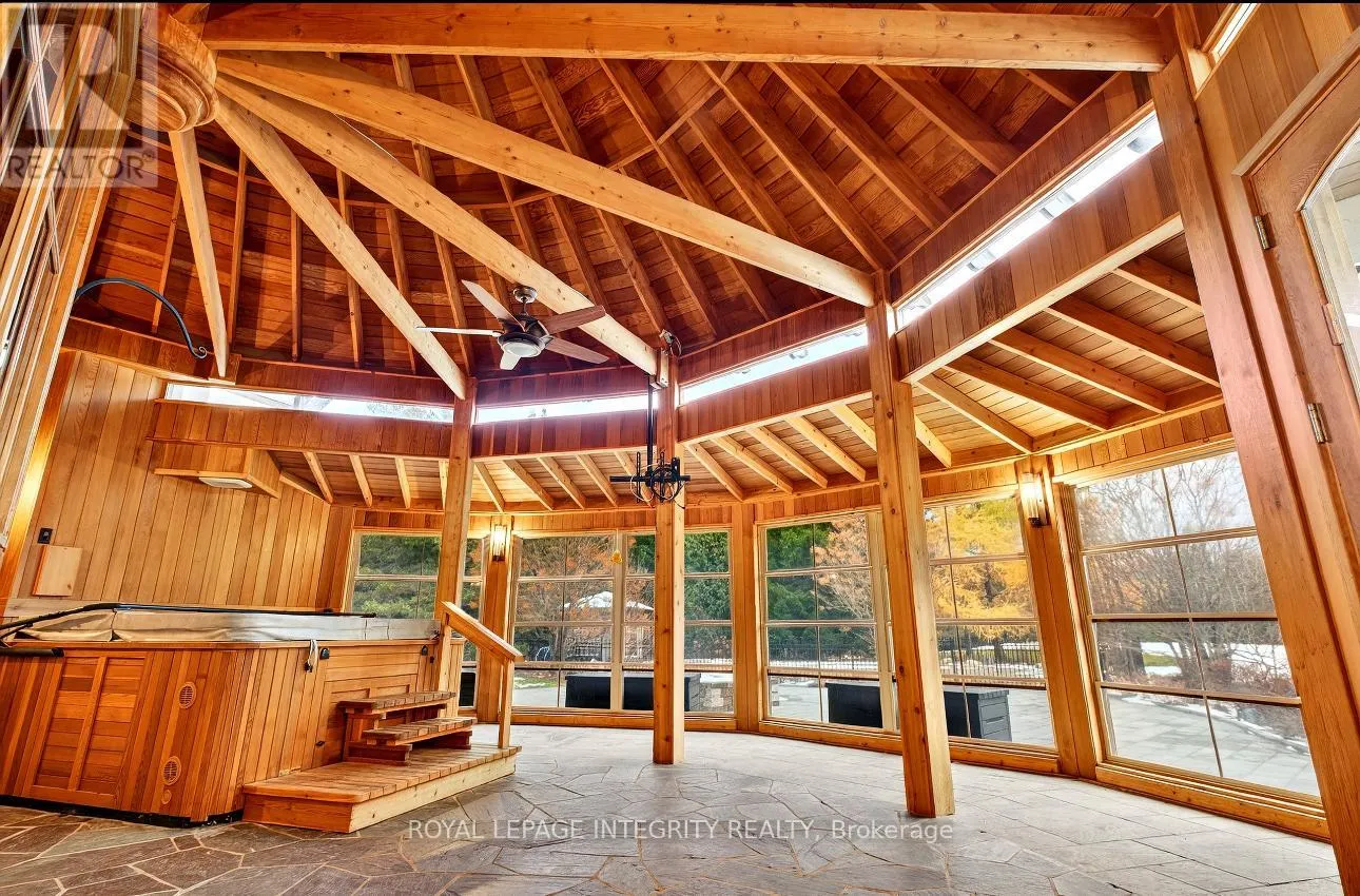 Cross Streets: Richmond and Franktown. ** Directions: Continue onto Hwy 7/Trans-Canada Hwy/ON-7. Take exit toward Ashton Station Rd. Turn left onto Ashton Station Rd. Keep left to stay on Ashton Station Rd. Turn right onto Franktown Rd. Continue onto Richmond Rd/Route 10. Destination will be on the left. Welcome to Braveheart Estate, a breathtaking 39 acre country retreat located just 20 minutes from Ottawa. This exceptional property features a grand 6,700 sq. ft. executive residence with 5 bedrooms, plus a separate 2 bedroom apartment great for family or rental opportunity situated above a spacious 4 car garage.Set on 5 beautifully landscaped acres, the home offers stunning outdoor spaces including stone patios and walkways, and a 50x30 ft heated saltwater pool, outdoor shower and kitchen. There is also an indoor hot tub in a charming cabana perfect for relaxing or entertaining .Inside, luxury meets comfort. The main level has 2 primary suites with private ensuites, a guest bedroom, a home office, a dramatic Grand entrance, and incredible living room with a 2 story stone fireplace, a cozy family theatre room, and a gourmet chef's kitchen designed for both function and style.For equestrian enthusiasts, the estate includes a 5 stall barn with hay loft, a sand riding ring, and approximately 10 acres of fenced pasture. A 3,000 sq. ft. detached workshop provides 4 large bays and 5 12-ft industrial overhead doors ideal for hobbies, storage, or business use.The remaining 25 acres are covered in pristine forest with scenic trails to explore.9 separate heated floors throughout the home.Landscaping professionally maintained year round. Furnace 2022, One Boiler 2022 the other 2020, 5 new air conditioning units, Sound system through the house 2022, Security system upgraded 2021, Fridge 2021, Washer & Dryer 2023, Ensuite bathroom 2021 & Loft bathroom 2021, Sump pump basement 2025, Pool liner 2022, LED lights surrounding the home 2022. (id:27476)