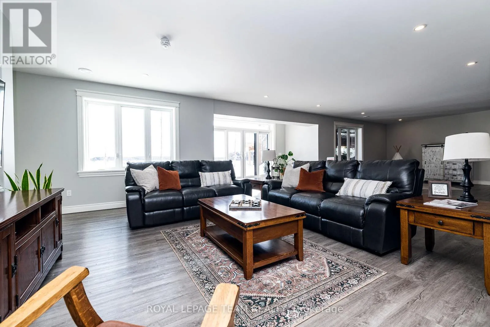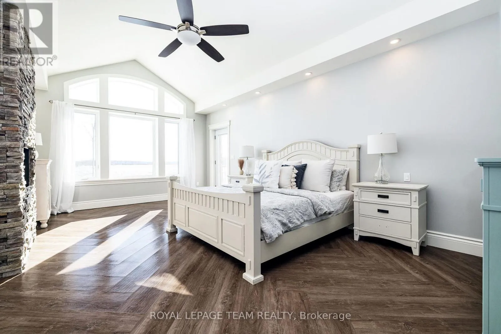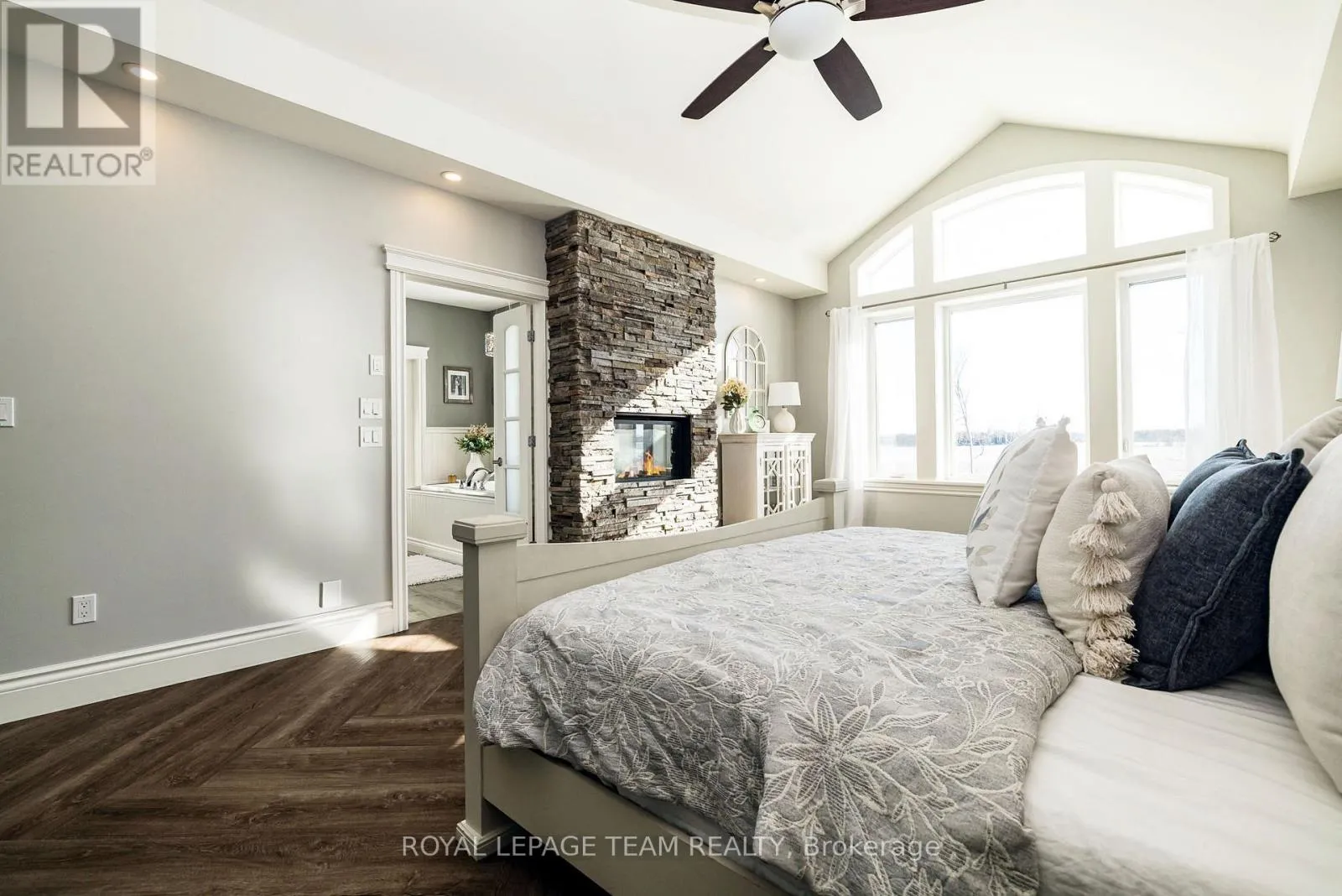 Take Hwy 7 to Lanark County Rd 17/Appleton Side Road exit.Turn left on Cemetery Side Road.Turn left on McCuan Road. Set on nearly 12 acres of breathtakingly private countryside, this extraordinary custom-built estate offers a rare blend of refined luxury & peaceful rural living. Surrounded by mature forest & farmland, the property offers privacy with no neighbours; creating a serene retreat within easy reach of city amenities. Inside over 3,300sf of beautifully finished living space above grade unfolds beneath soaring ceilings and oversized windows that flood the home with natural light. The elegant living room is anchored by a floor-to-ceiling stone fireplace, while extensive millwork, wainscotting, & designer lighting elevate every space. The gourmet kitchen is both sophisticated and functional, featuring s/s appliances, cabinetry, island & a bright dining area that opens onto the expansive rear deck-perfect for entertaining while enjoying sweeping country views. A stunning sunroom with a double-sided fireplace offers a cozy yet refined space to relax and seamlessly connects indoor & outdoor living. The luxurious primary retreat features vaulted ceilings, private deck access, & a spa-inspired ensuite; complete with a double shower, soaker tub overlooking the countryside, & walk-in closet. Four additional bedrooms & an oversized laundry room with dual washer and dryer sets provide exceptional functionality. The fully finished walk-out lower level with radiant in-floor heating offers versatility, featuring 3 bedrooms, a full bathroom, & expansive recreation areas, ideal for extended family or multi-generational living. Built with ICF construction & a timeless heritage-style metal roof, this bungalow showcases superior craftsmanship, efficiency, & lasting quality. A large insulated outbuilding offers endless possibilities with hydro service, propane heating, & infrastructure for future radiant heat. The grounds also feat a goat barn with electricity, fenced animal areas, extensive landscaping, a large two-tier deck, & a substantial concrete pad ideal for sports or recreation. (id:27476)