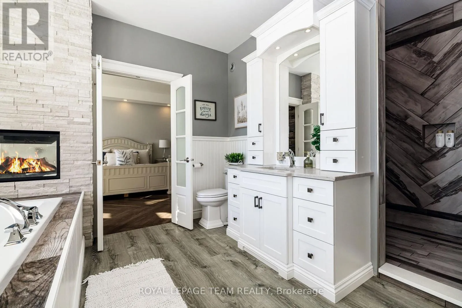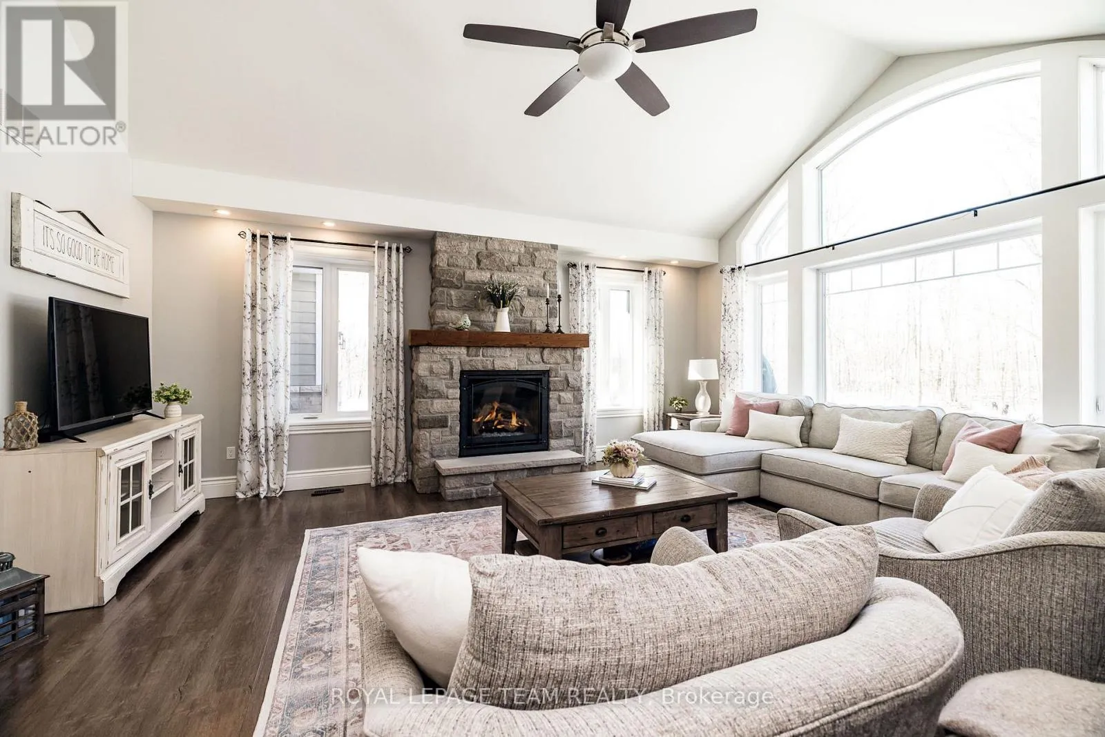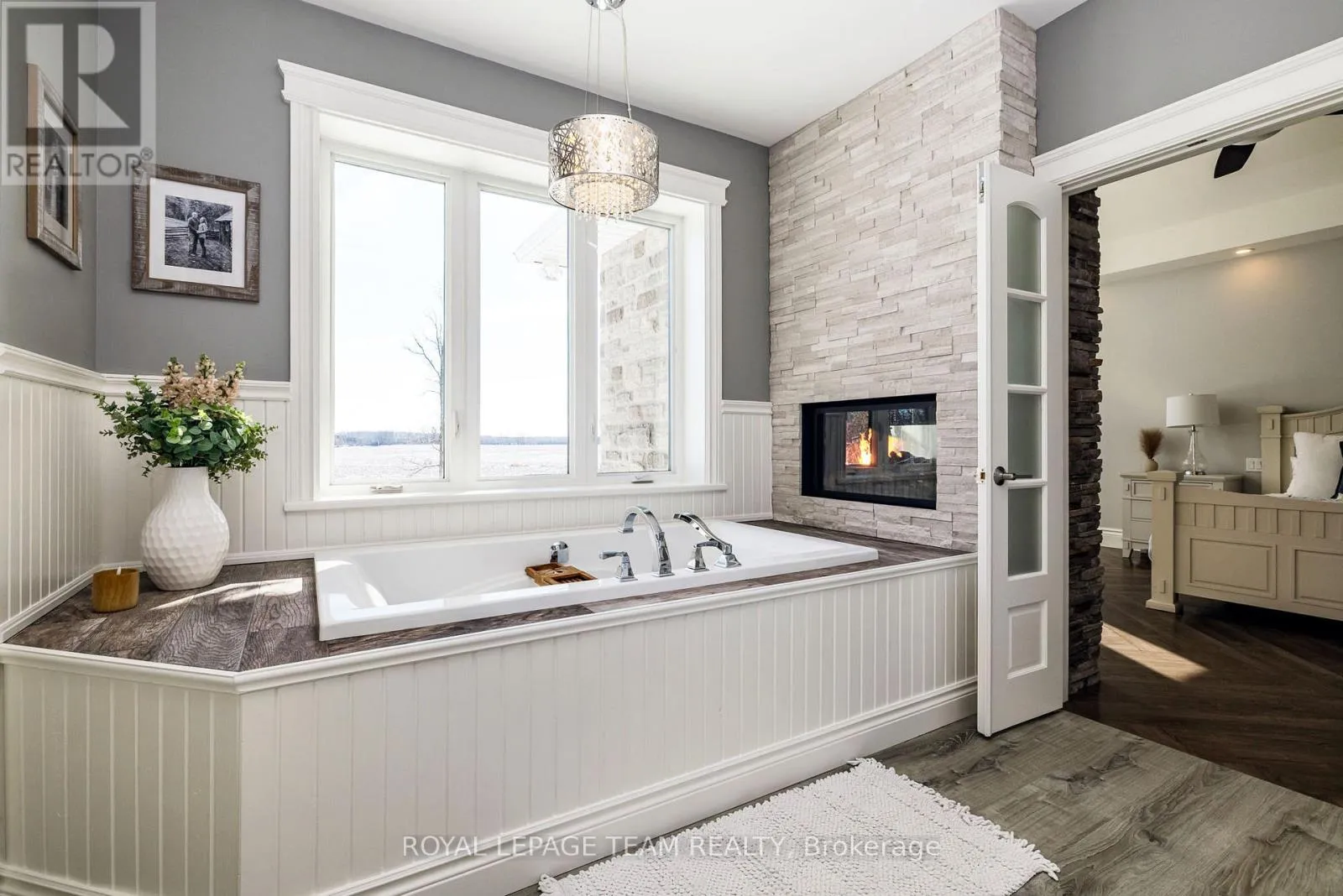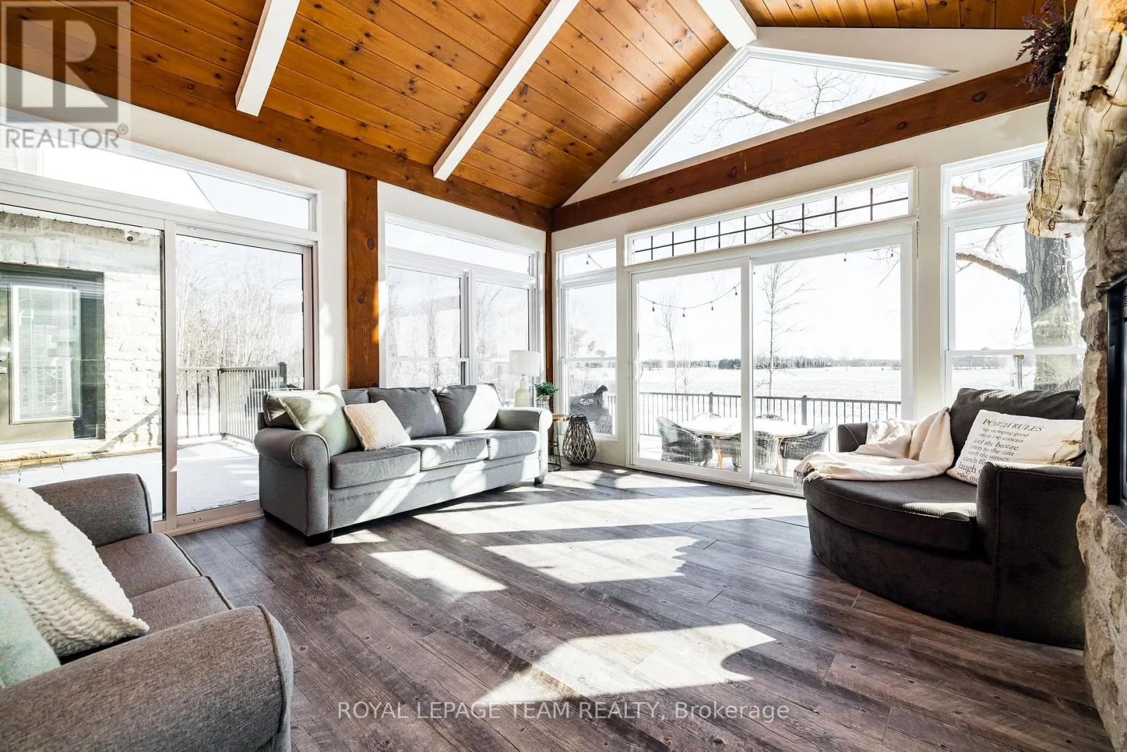 Take Hwy 7 to Lanark County Rd 17/Appleton Side Road exit.Turn left on Cemetery Side Road.Turn left on McCuan Road. Set on nearly 12 acres of breathtakingly private countryside, this extraordinary custom-built estate offers a rare blend of refined luxury & peaceful rural living. Surrounded by mature forest & farmland, the property offers privacy with no neighbours; creating a serene retreat within easy reach of city amenities. Inside over 3,300sf of beautifully finished living space above grade unfolds beneath soaring ceilings and oversized windows that flood the home with natural light. The elegant living room is anchored by a floor-to-ceiling stone fireplace, while extensive millwork, wainscotting, & designer lighting elevate every space. The gourmet kitchen is both sophisticated and functional, featuring s/s appliances, cabinetry, island & a bright dining area that opens onto the expansive rear deck-perfect for entertaining while enjoying sweeping country views. A stunning sunroom with a double-sided fireplace offers a cozy yet refined space to relax and seamlessly connects indoor & outdoor living. The luxurious primary retreat features vaulted ceilings, private deck access, & a spa-inspired ensuite; complete with a double shower, soaker tub overlooking the countryside, & walk-in closet. Four additional bedrooms & an oversized laundry room with dual washer and dryer sets provide exceptional functionality. The fully finished walk-out lower level with radiant in-floor heating offers versatility, featuring 3 bedrooms, a full bathroom, & expansive recreation areas, ideal for extended family or multi-generational living. Built with ICF construction & a timeless heritage-style metal roof, this bungalow showcases superior craftsmanship, efficiency, & lasting quality. A large insulated outbuilding offers endless possibilities with hydro service, propane heating, & infrastructure for future radiant heat. The grounds also feat a goat barn with electricity, fenced animal areas, extensive landscaping, a large two-tier deck, & a substantial concrete pad ideal for sports or recreation. (id:27476)