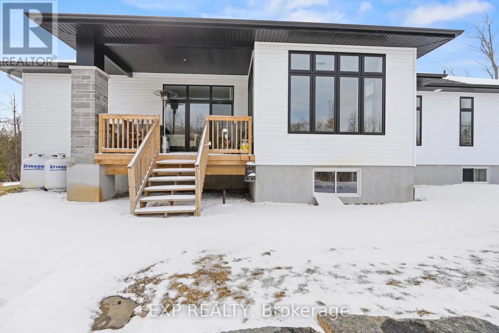 Cross Streets: Richmond Rd & Landians Way. ** Directions: Take Highway 7 to Dwyer Hill Road. Turn right on Franktown Road, Continue on to Richmond Road, then turn onto Landians Way. Welcome to this stunning Mackie home set on a Private 1.4 Acre Corner Lot, feat. 3+1 Bedrms, 3.5 Bathrms, w/an expansive 2320sqft main flr. This Quality Built Bungalow welcomes you w/an Extended Driveway, Interlock Entry & Spacious 3 Car Garage, all surrounded by Beautiful Landscaping. Step inside to an Expansive Tiled Front Foyer & experience Elegant Living w/Oak Hardwood Floors & 10ft Ceilings. As you move into the heart of the home, the Bright great room invites you in w/a Cozy Fireplace feat. a Custom Wood Mantel & Large Transom Windows that fill the space w/Natural Light. The kitchen is thoughtfully designed offering Expanded Cabinets, Granite Counters, SS Appl., Pot Filler, Valence Lighting, Dual Zone Oven & Large Island w/Custom Wood detail. The dining area sits alongside, surrounded by windows, creating a picturesque space to gather. The Primary Bedrm serves as a peaceful retreat w/a spa-inspired 5pc Ensuite, complete w/double sinks, an Expanded Vanity, Stand Alone Tub, Glass Shower w/Rainfall Showerhead, & large W.I.C. 2 additional well-sized Bedrms nearby share a 4pc Bathrm. Down the hall, a combined Mud & Laundry Room offers additional storage, a convenient laundry sink, & direct access to the 3 Car Garage. Head downstairs to a Fully Finished lower level where space & versatility come together. A large family room w/Electric Fireplace creates the perfect setting to relax, along w/an additional Bedrm, Office Space, Home Gym area & a Built-In Library Wall. 4pc Bathrm w/Custom Wood Vanity & Glass Shower, plus a huge storage room adds more functionality. Outside, enjoy the Serene Outdoors on the Covered Back Porch & step onto the beautifully Landscaped Patio. This property feat. a Premier Irrigation system & Hydro Provision ready for a future hot tub. Additional features include a UV Water Filter, RO Drinking Water System, 2 Sump Pumps, & a Whole House Generator w/ATS, offering comfort & peace of mind throughout. Schedule your private viewing today! (id:27476)