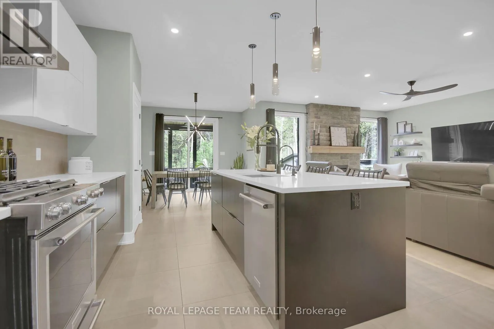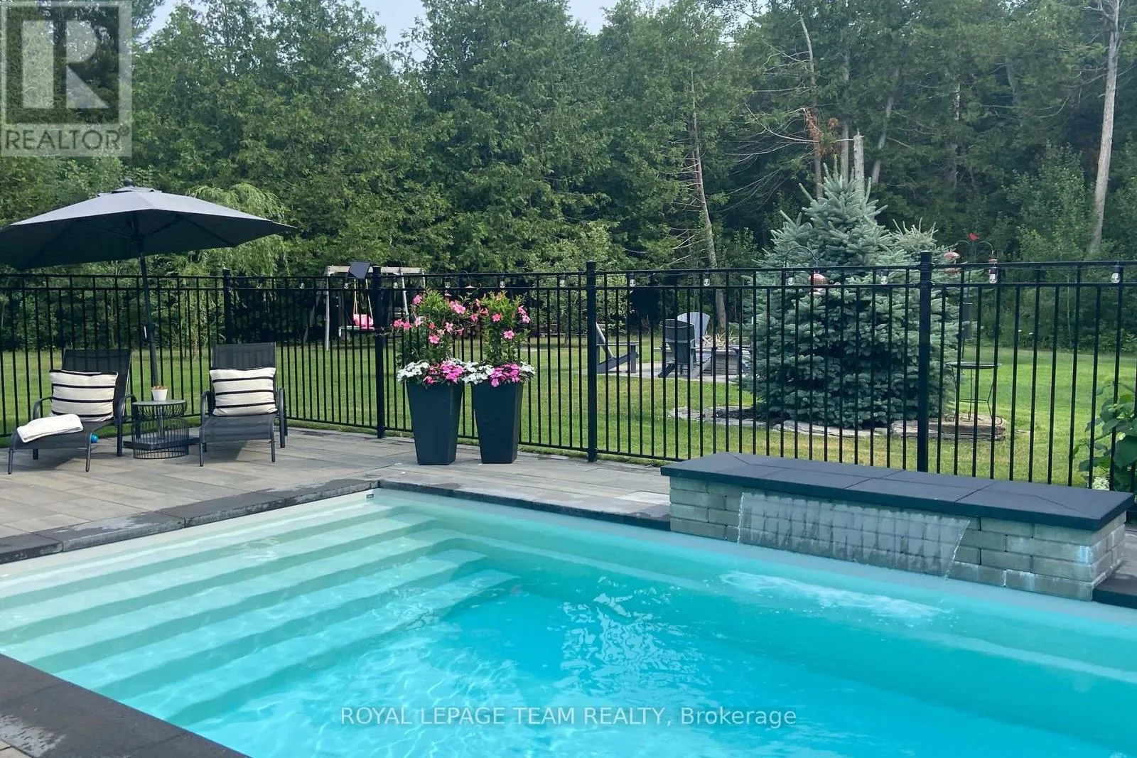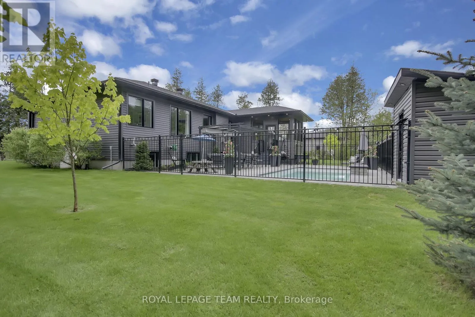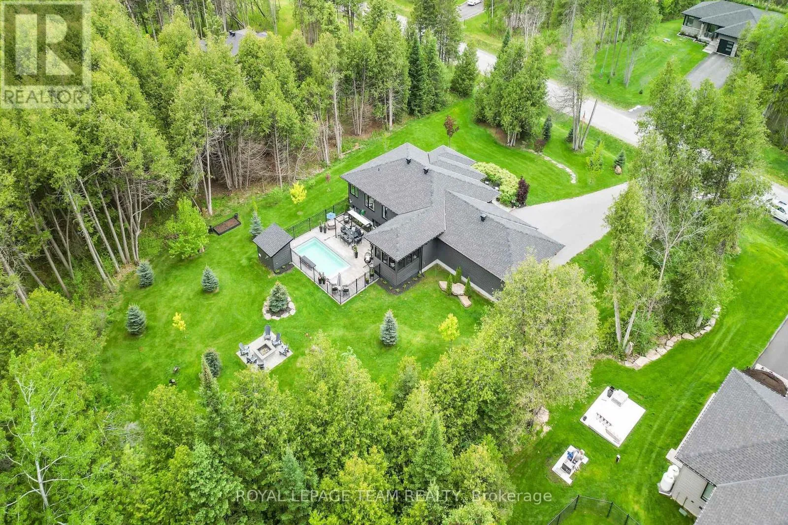 Cross Streets: Douiglas Side Rd and Ridgemont DRive. ** Directions: Ashton Station Rd to Douglas Side Rd to Ridgemont Drive. Simply stunning!! This spectacular 4 bedrm custom built bungalow by Tomar is situated on one of the nicest & largest treed lots in highly sought after Ridgemont Estates...beautifully designed with ~3,000 sq ft of living space, loaded with upgrades and set on a manicured 1.5 acre treed estate lot that offers an outdoor oasis that needs to be seen!! Features include an incredible kitchen highlighted by sleek, ultra modern cabinetry w/pull up cabinet doors, H.Q appliances incl gas stove and wine fridge, Quartz countertops in kitchen and bathrms, livingrm features oversized windows and "floor to ceiling" stone fireplace, porcelain tile in kitch/bathrms and premium site finished maple floors throughout main floor including all bedrms. Primary bedrm w/walk in closet and ultra lux.5 pc ensuite, w/relaxing soaker tub and oversized,custom glass shower. Large foyer, main level laundryrm. Finished lower level in 2025 offers massive "look out" windows and features a huge recrm, 4th bedrm, office/hobbyrm nook and 3 piece bath w/glass shower! The outdoor oasis includes a heated salt water fiberglass pool enclosed w/modular iron fencing, custom blt. pool shed PLUS an 1,150 sq ft interlock patio w/sitting and bbq area, beautiful screened in porch addition '22, w/no maintenance composite decking & stairs and metal railing!! plus a custom built fire pit for bonfires! The picturesque setting features a multitude of perennial gardens and manicured lawns all serviced by an 11-zone irrigation system. Other bonuses incl HUGE 3 CAR GARAGE for vehicles and toys, extensive interlock front walkway/patio, armor stone driveway accents, stunning "Celebrite" automated lighting system PLUS generator hook up in garage. This is a complete pkg where everything has been done and ready for you and your family to enjoy! EXCELLENT LOCATION W/SUPER QUICK ACCESS TO HWY 7 and only 8 min to Carleton Place and just 17 min to Kanata!! . 24 hr irrevocable for offers. (id:27476)
