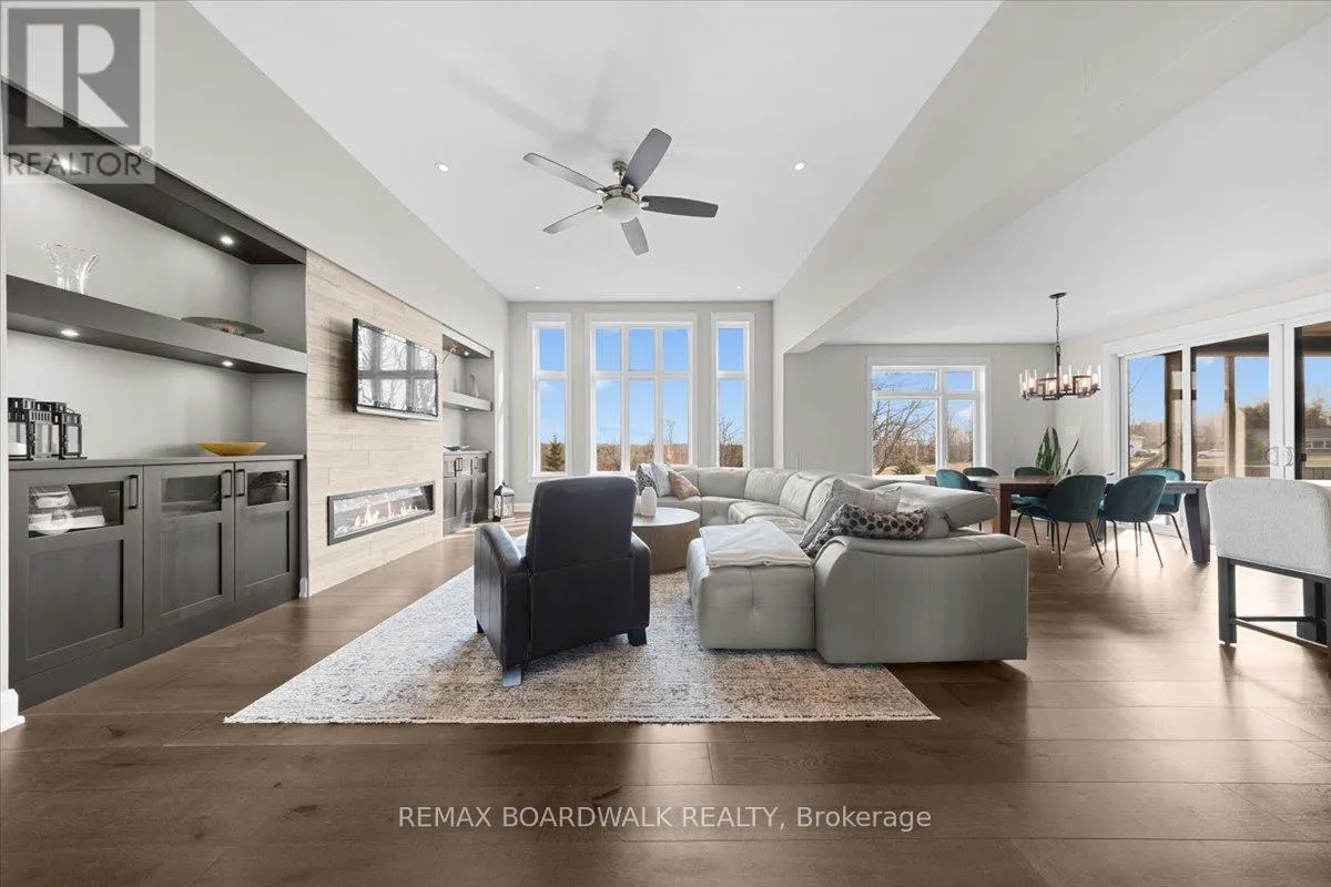 Cross Streets: Ashton Station & Summer. ** Directions: Aston Station west on Summer, South on Coyles. Welcome to this exceptional CUSTOM-BUILT bungalow, tucked away on a quiet cul-de-sac in the charming community of Ashton. Backing onto open space with NO REAR NEIGHBOURS, this property offers a rare sense of privacy and a peaceful setting that can be enjoyed throughout the year. From the moment you arrive, the home's quality and craftsmanship are evident. A grand front entry door opens into a spacious, welcoming foyer, leading into a beautifully designed main level where 12-foot ceilings and expansive windows create a bright, airy atmosphere. Rich hardwood flooring runs throughout, adding warmth and continuity to the space. The layout is both functional and refined, featuring three generously sized bedrooms on the main level. The primary suite has been thoughtfully positioned at the rear of the home, offering a quiet retreat separate from the secondary bedrooms at the front. This well-designed space includes a large walk-in closet and a luxurious five-piece ensuite, delivering both comfort and a true sense of escape. The heart of the home flows seamlessly between living, dining, and kitchen areas, ideal for both everyday living and entertaining. Main floor laundry adds convenience without compromising the clean, elegant design. The fully finished basement extends the living space with an additional bedroom and a full three-piece bathroom, perfect for guests, extended family, or a private retreat.Outdoors, the backyard is equally impressive, featuring a screened-in porch where you can relax or entertain while taking in the natural surroundings. An irrigation system is installed for convenience. The oversized garage is a standout feature, complete with a dedicated area ideal for a workshop or car wash setup, and the expansive laneway provides ample parking for multiple vehicles. A rare offering in a sought-after location, this home combines thoughtful design, elevated finishes, and a setting that delivers both privacy and lifestyle. (id:27476)