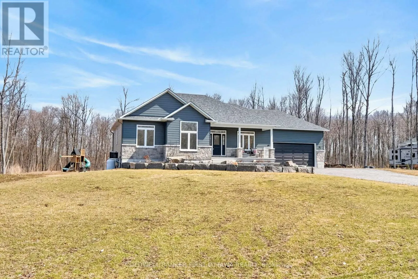 Cross Streets: Richmond Rd & Hwy 15. ** Directions: Richmond Rd & Highway 15. Discover the perfect harmony of rural serenity and modern connection in this stunning estate subdivision. Breathe in the crisp, fresh air and enjoy the profound stillness of country living, all while being part of a welcoming community of neighbours.This "under two years new" gem makes a striking first impression with extensive professional landscaping that frames the home's contemporary silhouette. Inside, you'll find elevated living defined by a bright, open-concept design that effortlessly blends sophisticated style with everyday comfort. The heart of the home is an oversized chef's island with ample seating, perfect for morning coffee or hosting friends, all set against a backdrop of rich character and upgraded trim details.The lifestyle continues in the impressive finished walk-out basement, featuring two additional bedrooms and a massive informal zone. Whether you're hosting a tournament in the games area or settling in for a cinematic experience in the home theatre, this level is built for making memories.Step outside to find a true outdoor oasis designed for kids and the young at heart-a private playground and retreat right in your backyard. (id:27476)