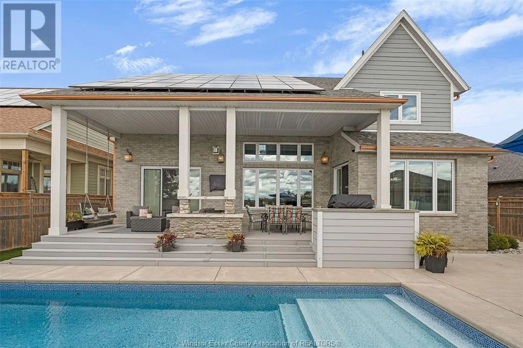 Welcome to this exceptional 1.5-storey BK Cornerstone home, designed as the builder's personal residence, showcasing unparalleled quality, custom finishes, at a newly reduced price! The main floor features a grand great room with soaring 18-foot ceilings, a custom kitchen, dining area and a private primary suite with a spacious ensuite and walk-in closet. Additional highlights include a main floor laundry and mudroom. The second floor offers three generous sized bedrooms and two full baths, including a Jack and Jill and a private ensuite. The fully finished basement boasts a stylish bar, living room, office, additional bedroom, and three-piece bath. Outside, enjoy an inground pool and a charming pool house with a two-piece bath, as well as a cozy fireplace on the oversized covered porch. Built for energy efficiency, this home features solar panels that generate monthly income, making it a unique lifestyle opportunity not to be missed! (id:27476)