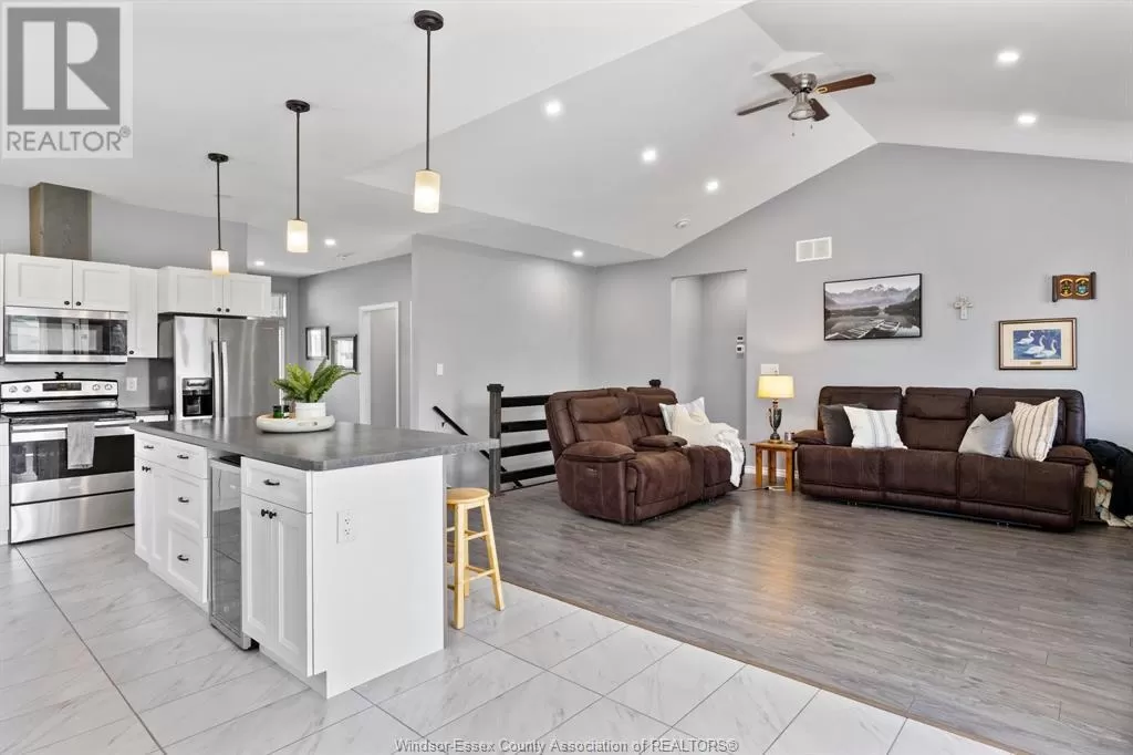 TAKE CITY RD 22 TO SPRING TO SUMMER The modern black and grey exterior will draw you to this waterfront home! Built in 2021, 1660 sq ft rancher with double car attached heated garage has an open concept cathedral ceiling design with fireplace in living room. All the main rooms and primary bedroom suite overlook the waterfront. Primary suite has a separate soaker tub and water closet. Concrete driveway, sidewalks, covered deck and 16 x 14 rear patio area, with bar and firepit and hardline for gas bbq. 2 + 2 bedrooms and 3 full baths, 9 ft ceilings, and 10 ft high ceiling in finished basement give this home so many spaces to enjoy. All bedrooms have tvâs hardwired for internet and country cable, antenna in attic.Option for laundry on main floor, roughed in for a 20 amp electric fireplace in basement, 200 amp service , and sump with battery back up. Large rear yard on canal with gabion stone wall on the waterside. Lovely waterfront home call us today to view. (id:27476)