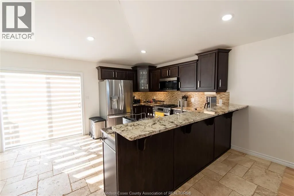 Welcome to exceptional waterfront canal living in Belle River. This custom-built raised ranch with bonus room offers 4 bedrooms, 3 full bathrooms and a fully finished lower level with grade entrance. The main floor features an open living area with gas fireplace, an updated kitchen with pantry and travertine flooring, and a large dining space that opens to a private backyard retreat with inground pool and patio. The bonus room serves as a spacious primary suite with walk-in closet, ensuite bath and second gas fireplace. The lower level includes a family room with fireplace, additional bedroom, 3-piece bath, laundry and ample storage. Exterior amenities include a double garage, double driveway, fenced yard, underground sprinklers and canal access. (id:27476)