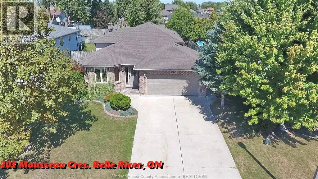 Welcome to 203 Mousseau Crescent in desirable Belle River! This move-in ready 3 bedroom, 2 bathroom home offers comfort and convenience with a rare bonus sauna for relaxation. Featuring a double car garage, concrete driveway, and fully fenced backyard, this property is perfect for families or anyone seeking low-maintenance living. The home is beautifully landscaped and ideally located near schools, shopping, parks, and with quick access to the 401. Immediate possession available. (id:27476)