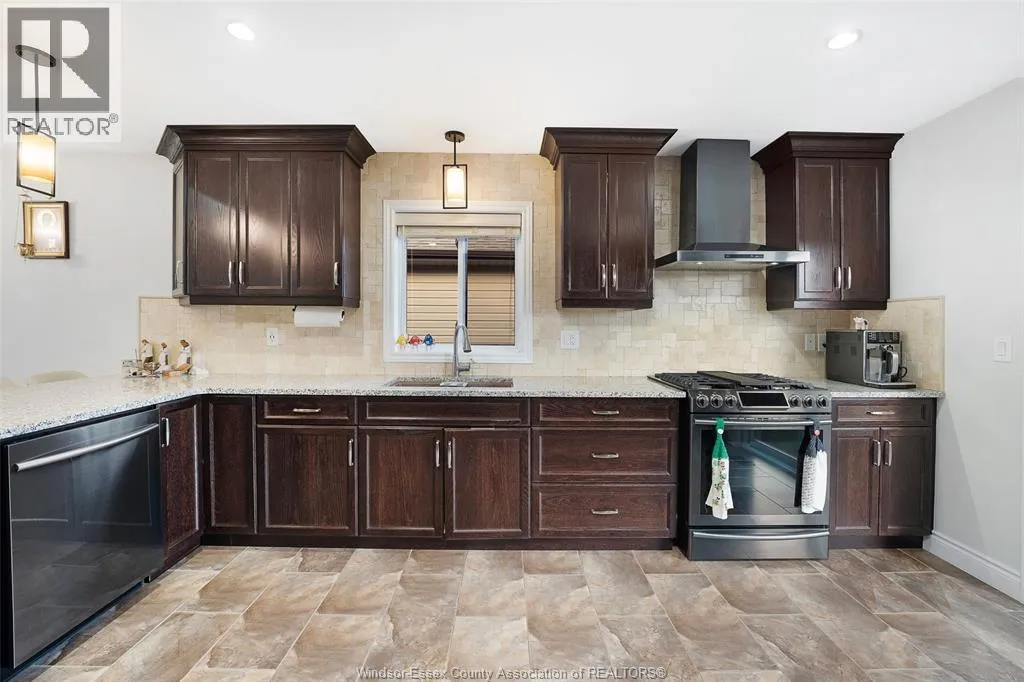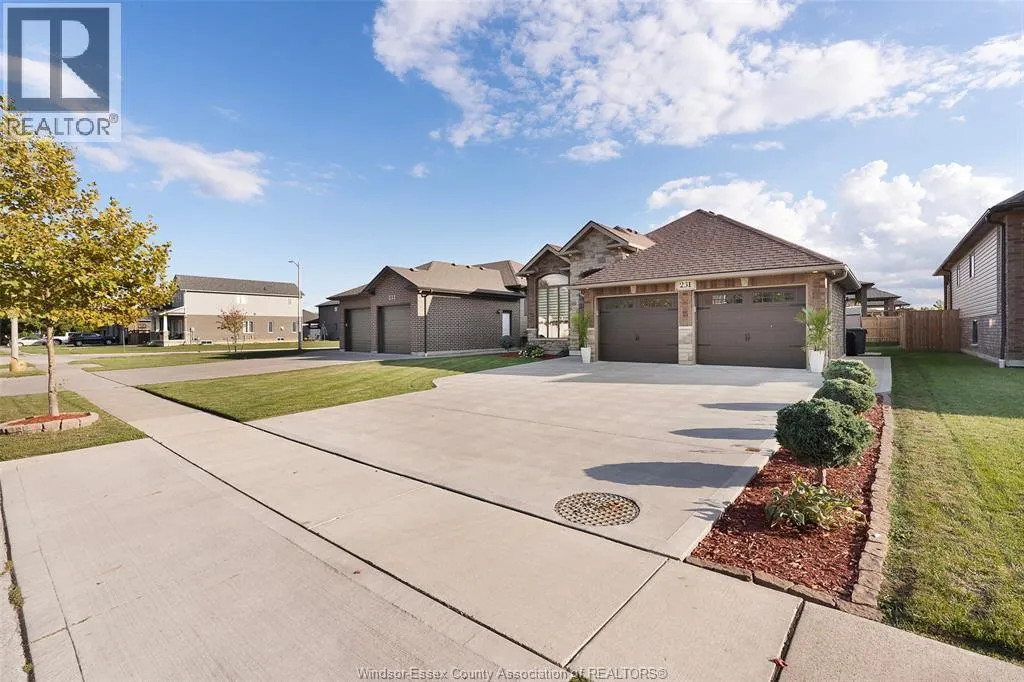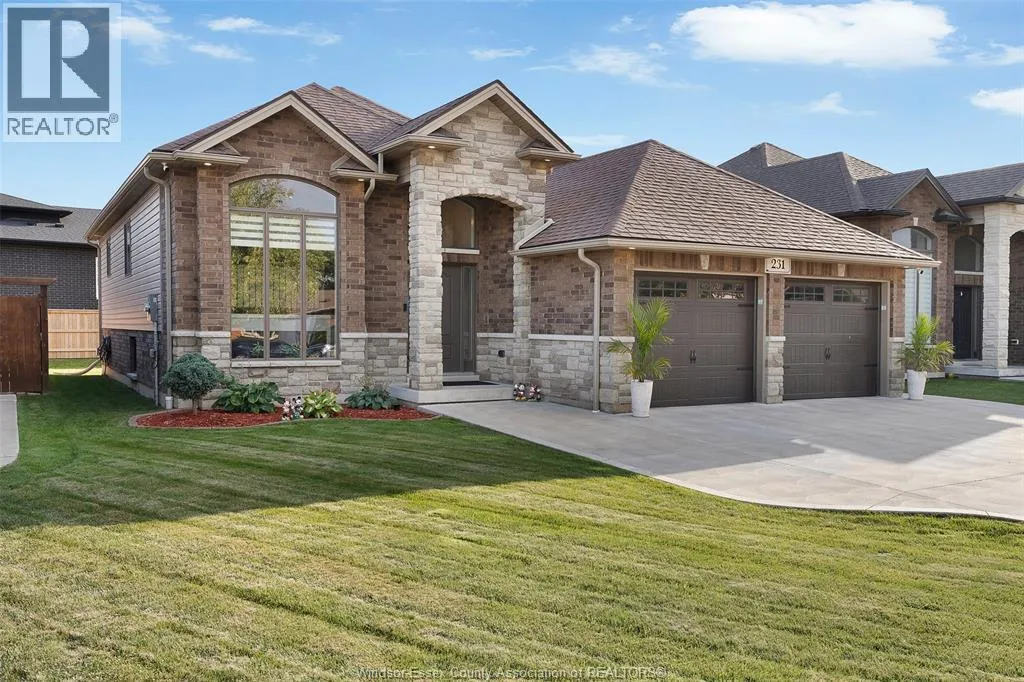 Welcome to 231 Summer, a beautifully finished 2018 raised ranch in one of Lakeshoreâs most sought-after family neighbourhoods. Close to top-rated schools, parks, marina access, and lakeside beaches. Offering 3+2 bedrooms and 3 full baths, this home features soaring ceilings, engineered hardwood, and an open-concept layout designed for modern living. The gourmet kitchen has granite countertops, ceiling-height cabinetry, premium appliances, and a breakfast bar overlooking the dining area. The spacious primary suite includes a sleek ensuite with glass shower. The bright lower level offers two additional bedrooms, a full bath, and a large family room with a fireplace. Complete with a 3-car concrete driveway, double garage, and landscaped curb appeal. This home is truly move-in ready and fully pre-inspected. (id:27476)
