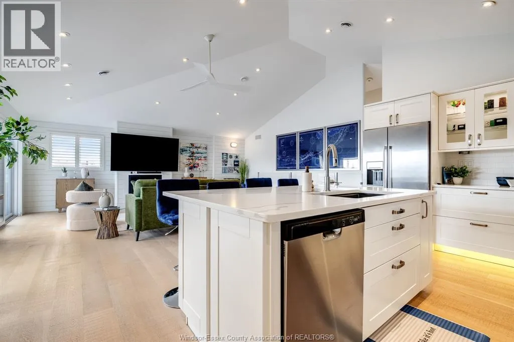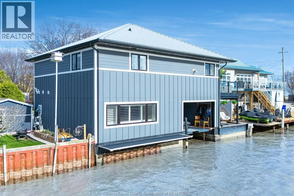 Very unique 3-bedroom, 2-bath residence/boathouse offering stunning views of Lake St. Clair and located on the river. Fully renovated, this exceptional property is perfect for outdoor enthusiasts. The primary bedroom features a private ensuite with heated floors. The attached boathouse accommodates your boat, jet ski, or skidoo with ease. The second floor boasts open-concept living with a spacious kitchen and living area, ideal for entertaining, with walkout to a deck overlooking the waterfront. Two additional bedrooms complete the upper level. Metal roof and new awnings add to the value and durability of this one-of-a-kind property. Don't miss this rare opportunity! (id:27476)