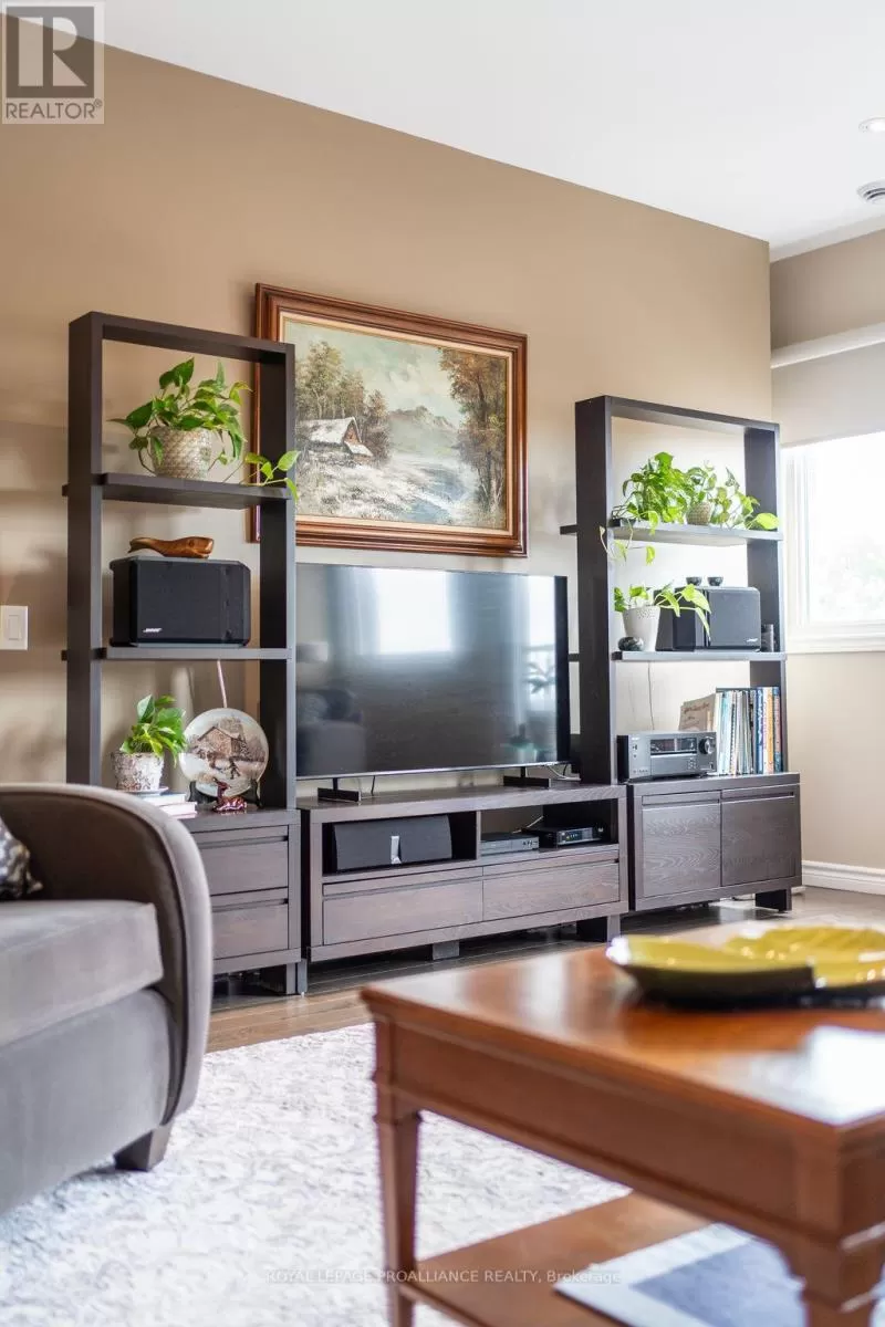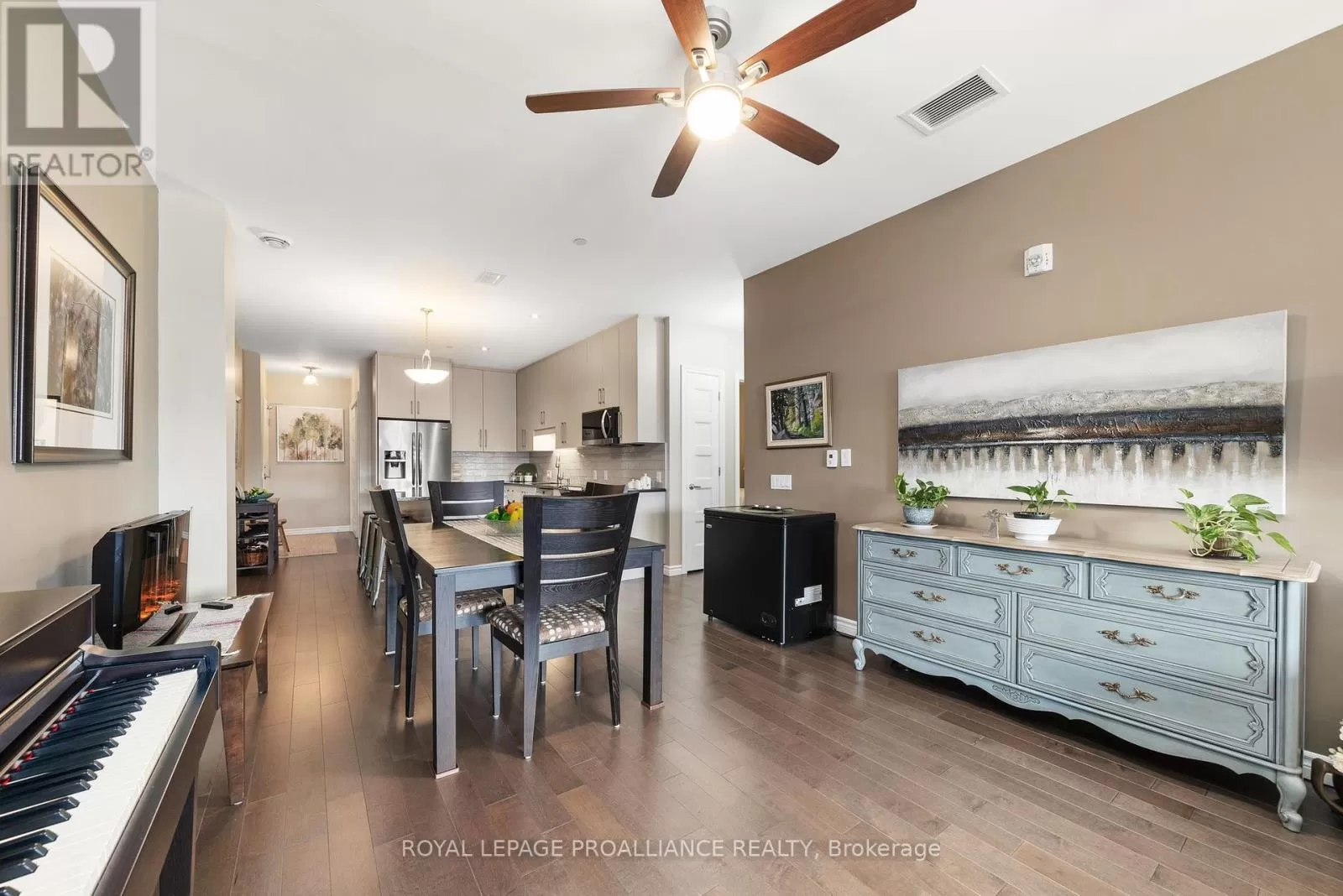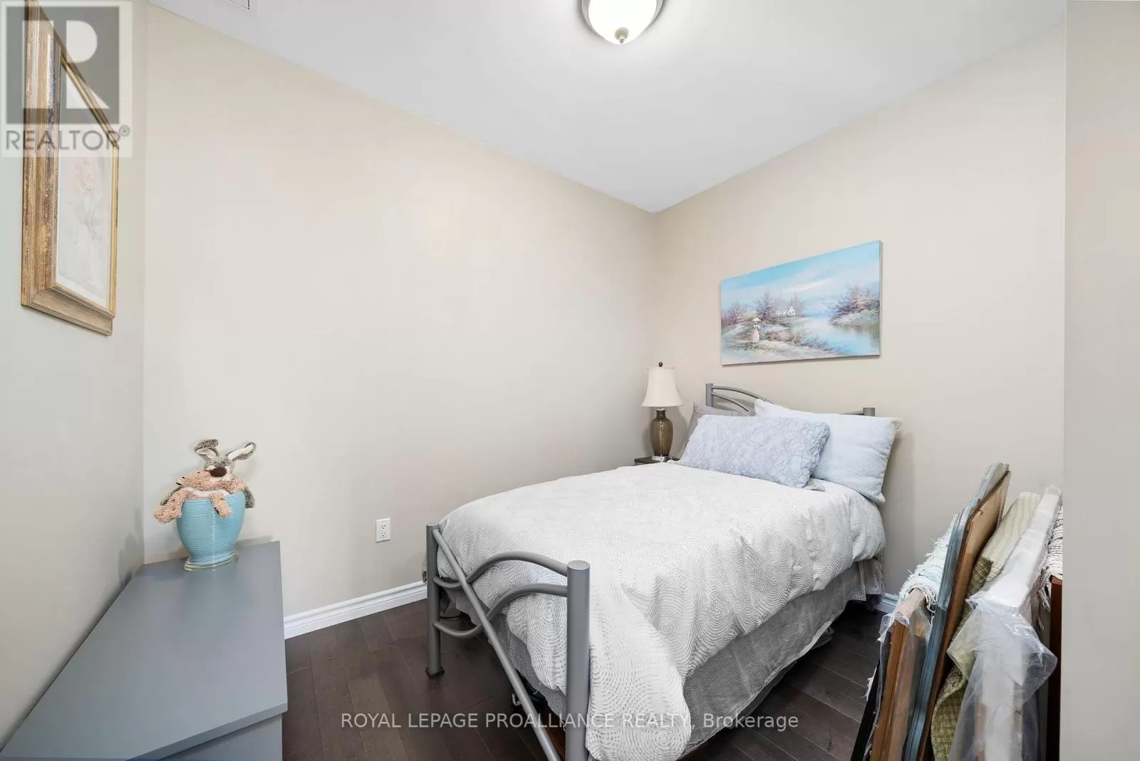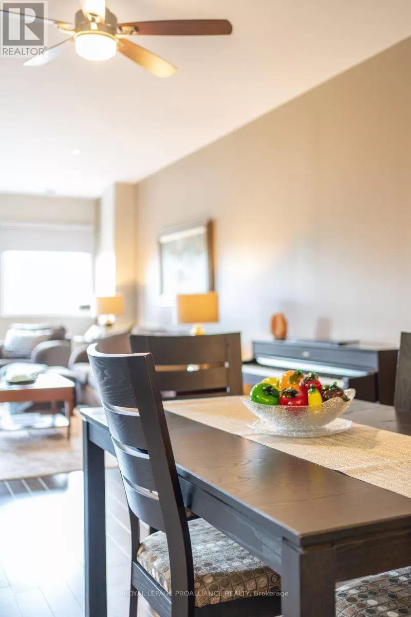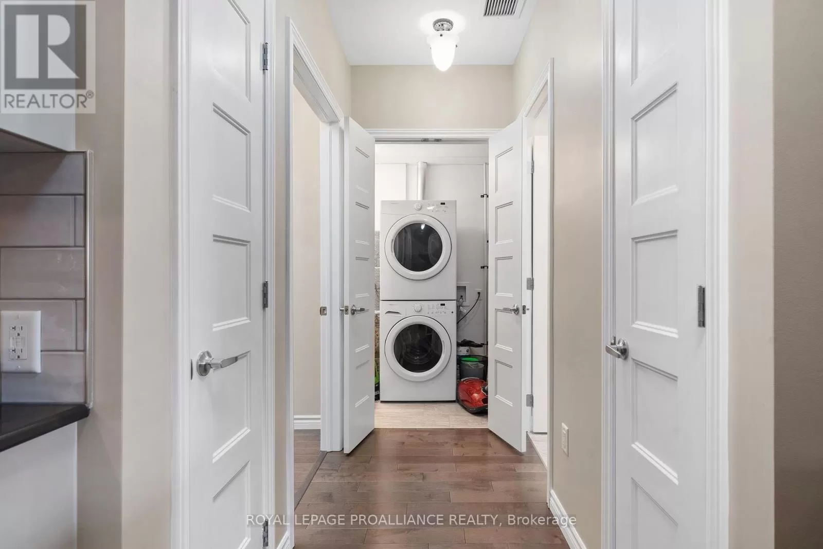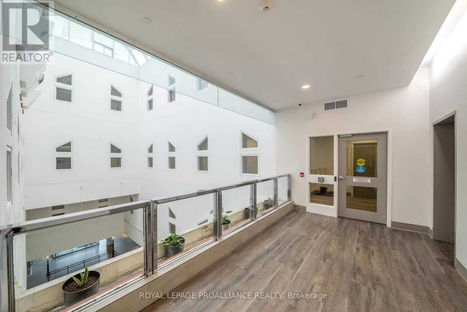 Bridge Street / Front Street Welcome to the epitome of urban luxury at Century Place! Located in the vibrant heart of Belleville. This exceptional fourth-floor condo is an oasis of style and convenience, offering an unparalleled living experience just steps away from the city's finest restaurants, chic boutiques, bustling farmer's market and new memorial arena renovation providing new shops. Upon entering this meticulously maintained residence, you're greeted by an open-concept living area that seamlessly combines elegance and functionality. The unit features one bedroom plus a den, including a serene master suite with a lavish on-suite. The heart of the home is the stunning kitchen, outfitted with sleek cabinetry, a substantial island, and luxurious quartz surfaces. The adjoining living and dining spaces are bathed in natural light, thanks to expansive panoramic windows offering breathtaking views of the Marketplace and Belleville Armories. The unit also includes convenient in-suite laundry. Century Place enhances your lifestyle with an array of exclusive amenities. Enjoy the vibrant rooftop deck with its gas BBQ and stunning city views, or host gatherings in the well-appointed common room with a full kitchen and entertaining spaces. The building also boasts secure access, a private fitness center, and a charming cafe and wine bar on the lower levels. With its prime location, luxurious features, and exceptional amenities, this condo at Century Place is perfect for executive couples, retirees, or anyone seeking a sophisticated and carefree urban lifestyle. **EXTRAS** 1112 SQ FT (38 units total on 3rd,4th, and 5th floor of Century Village) Water Incl. in maintenance fees. Avg. Hydro incl. Heat $85/month. Elevators, Heated underground parking. All fixtures upgraded, New Bosch dishwasher, quartz counters (id:27476)