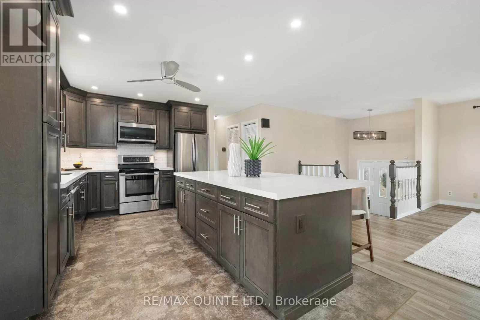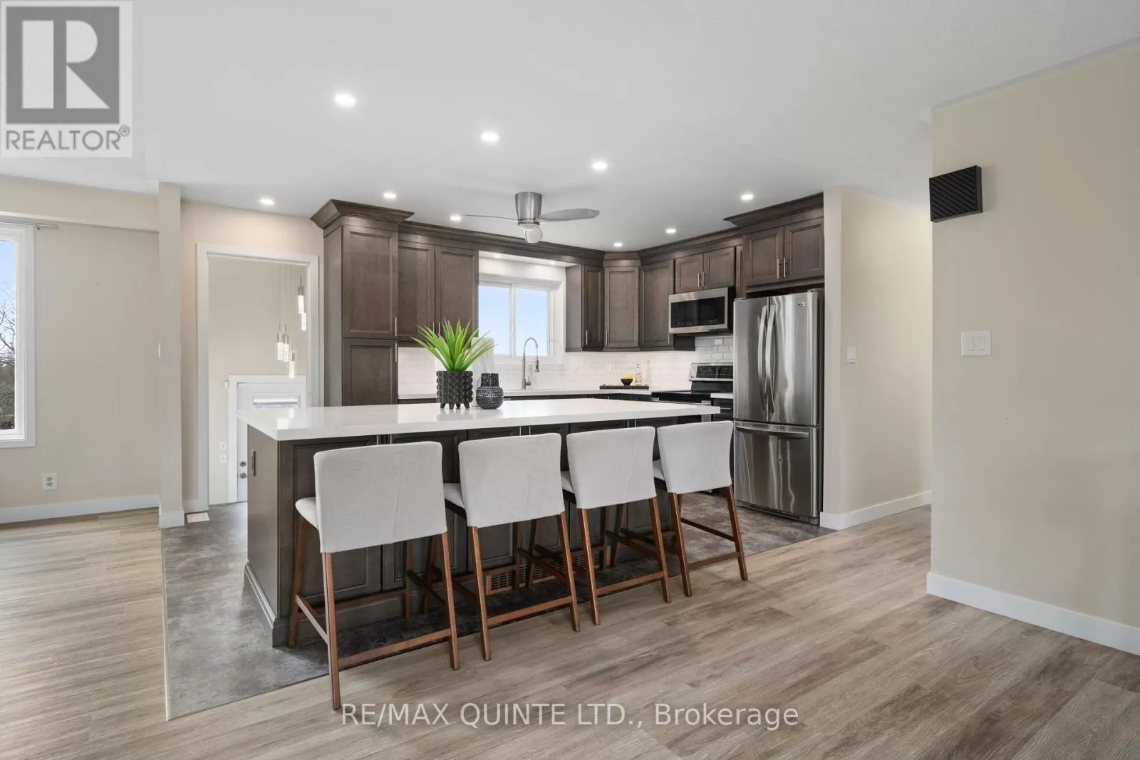 Cross Streets: Millennium Parkway or Sidney Street to Cloverleaf Drive. ** Directions: Millennium Parkway or Sidney St to Cloverleaf. This beautifully updated raised bungalow sits on a rare, oversized lot in town and offers the perfect blend of space, style, and flexibility. The open-concept main floor features a stunning custom kitchen (2023) by Kenzie Dream Kitchens with solid maple, ceiling-height cabinets, quartz countertops, a large island, under-cabinet lighting, and stainless-steel appliances. Vinyl plank flooring runs throughout, and the main level includes two spacious bedrooms, including a primary with ensuite, plus an additional full bath with double sinks and a walk-in shower. The finished lower level adds incredible potential with two more bedrooms, a full bath, large rec room with gas fireplace, and a second kitchen ideal for in-laws, guests, or a rental unit with separate entrances from both the garage and backyard. Outside, enjoy a fully fenced yard with tiered decks, a hot tub, gazebo, fire pit, and space to garden. A triple garage with high-track bay and a driveway that has parking for 10+ vehicles. Conveniently located close to highway 401, shopping and more! (id:27476)