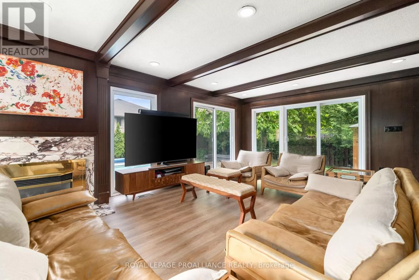 Cross Streets: Farley & Forest Hill. ** Directions: Farley Avenue, East on Forest Hill Crescent. 27 Forest Hill Crescent. Situated on an a large established lot in the desirable east end, resides this 2 storey family home offering 3,420 sq ft of finished living space. The spacious entry with practical coat closet invites you into the front formal dining (or ideal sitting room) with fabulous southern exposure, open to a more modest breakfast room. Ample oak kitchen cabinetry with coffee sidebar & pantry feature + eat-in space if desired. The grand family room positioned to the rear is where you will spend your time with sliding glass doors & custom bookshelf lined walls, cozy gas fireplace & wet bar, ideal for poolside entertaining. The upper level is home to 4 bedrooms. The primary is sure to impress with its tall vaulted ceiling, second gas fireplace, spacious ensuite, massive walk in closet & convenient second floor laundry. Finished basement provides a recreation & billiards room with pot lighting throughout. Built-in speaker system here with quartz hightop counters, full wet bar + bar fridge. Perfect in-law potential if needed. Additional function with the 2 piece powder room & fabulous storage in the large utility room. This generously sized & established yard allows for the home to be set in from the street. The fully fenced rear yard surrounded by mature trees & healthy perennial gardens creates both privacy & natural beauty in every season. Many lounging areas around the in-ground pool or a more quiet secluded side yard under the included pergola. One block to a children's play park & great proximity to preferred schools. 27 Forest Hill is a wonderful 4 bedroom 4 bathroom family home, offering something exciting for everyone. (id:27476)