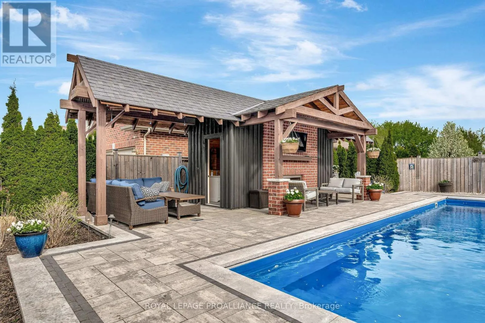 Cavendish Drive & Scenic Drive Welcome to 19 Scenic Drive, where upscale living meets resort-style luxury right at home. This beautifully maintained 4+1 bedroom home offers incredible features inside and out, starting with an extra large double car garage that is fully insulated and a full finished basement. The interior is a showstopper, boasting herringbone laminate flooring, a cozy gas fireplace in the family room and main floor living room, and a stylish mudroom just off the garage. The gourmet kitchen is a chef's dream with leathered granite countertops, stainless steel appliances, a walk-in pantry, and an open-concept layout perfect for entertaining. The crown jewel of this property is the backyard oasis. Fully enclosed fenced with a double sided privacy fence, this space is designed to impress. Enjoy a heated fiberglass pool with a brand-new heater and an automatic safety cover that keeps the pool water pristine with the touch of a button. The cabana is fully equipped with a kitchen sink placed in beautiful granite to supplement this outdoor kitchen, and built-in outdoor kitchen all included. There's even a separate two-piece washroom pool house to keep the fun outdoors. Night time is filled with beautiful pool lights, functional TV options with internet and outdoor gas fireplace that is activated with a simple switch of a button. Professionally landscaped and complete with elegant outdoor lighting, this yard is perfect for entertaining or unwinding in private luxury. The home is impeccably cared for, and the location just north of the 401 is one of the Belleville's most desirable. Move-in ready, show-home beautiful, and truly one-of-a-kind. (id:27476)