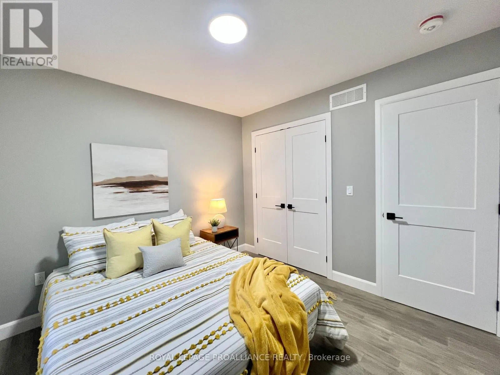 Cross Streets: Sienna Avenue. ** Directions: Hwy 2 to Sienna Ave, Right on Hastings Park Dr, Left of Horton Ct. Modern Elegance Meets Superior Craftsmanship - Brand-New Mid-Century Modern Home! Discover the perfect blend of style, quality, and functionality in this brand-new 3-bedroom, 2-storey home, built by a highly respected builder known for exceptional craftsmanship. Located at the end of a quiet cul-de-sac on a spacious pie-shaped lot, this Brookfield model offers privacy, modern design, and a sought-after location. Step inside to a bright, open-concept main floor, where large windows and hardwood flooring throughout create a warm and inviting atmosphere. The gourmet kitchen is designed for both beauty and functionality, featuring quartz countertops, a spacious island, and high-end finishes - perfect for cooking, entertaining, or gathering with family. The adjoining dining and living areas provide a seamless flow, making this home ideal for modern living. Upstairs, you'll find three spacious bedrooms, including a stunning primary suite. The ensuite bathroom is a true retreat, featuring a glass and ceramic shower, adding a touch of luxury to your daily routine. With full upgrades throughout, this home is move-in ready and built to impress. Don't miss your chance to own a beautiful mid-century modern home in an exceptional location! (id:27476)