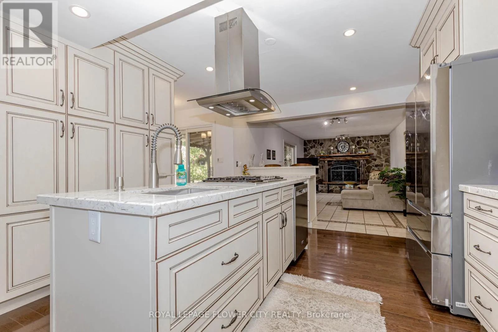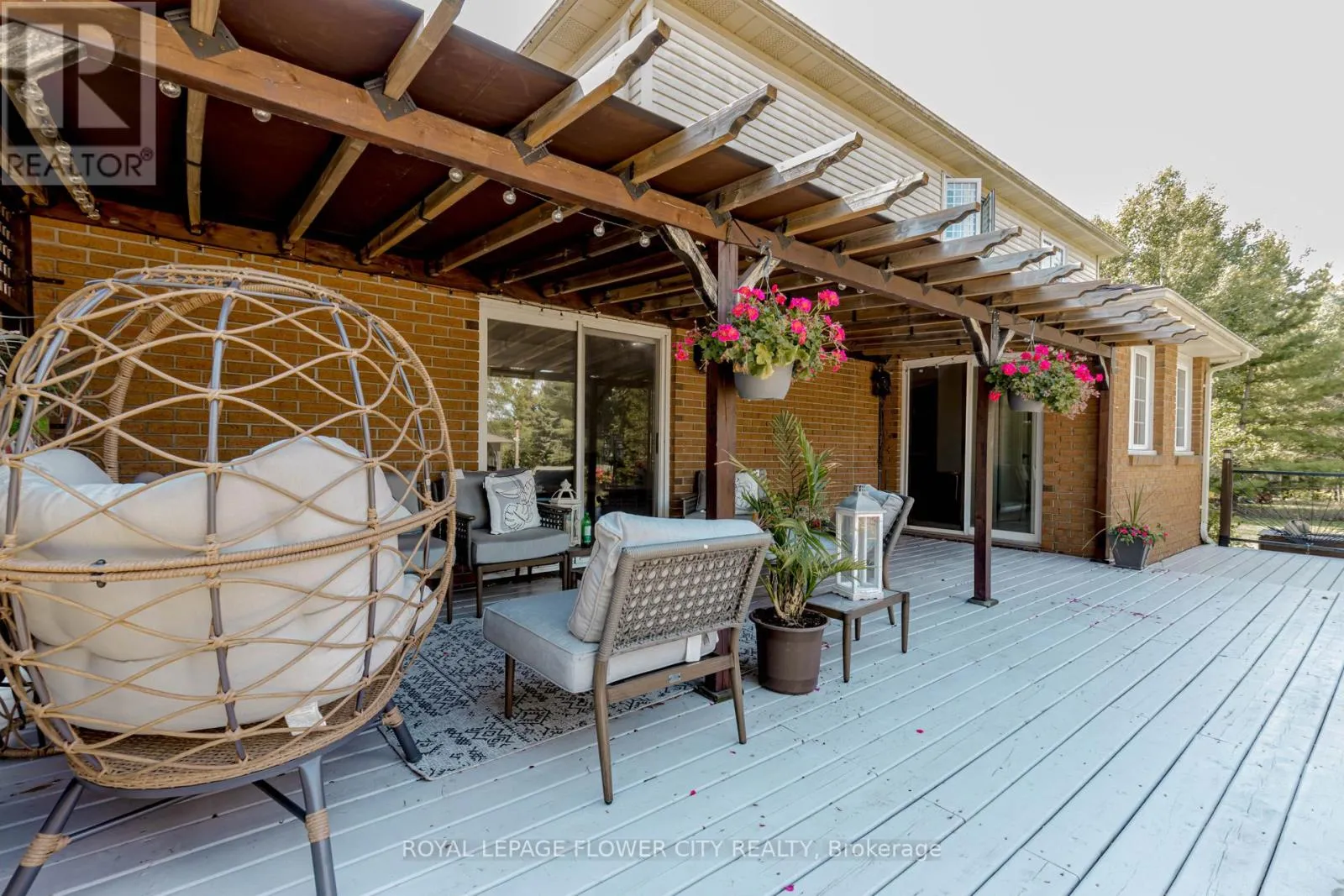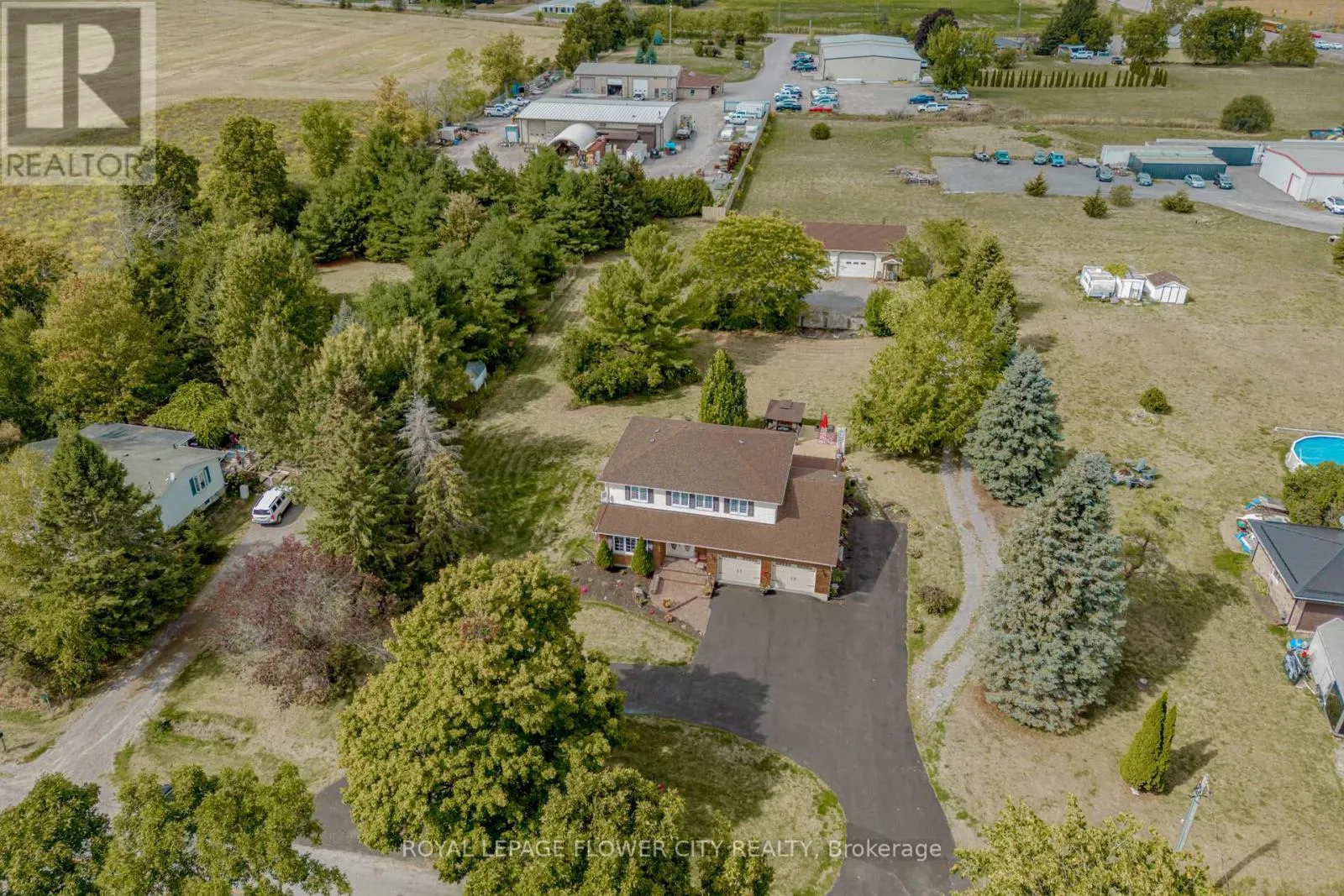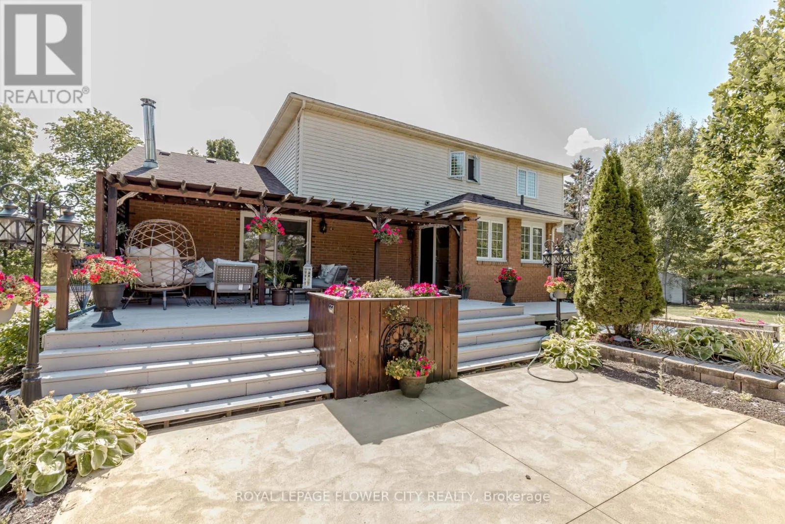 Hwy 62 North of the 401, left onto Sunningdale to #169 Situated just minutes north of Hwy 401 and close to all amenities, 169 Sunningdale Drive offers a rare 1-acre property combining comfort, space, and functionality. This well-appointed2-storey home features over 2,700 sq. ft. of finished living space with 5 bedrooms, 4 bathrooms, generous principal rooms, and a double car garage ideal for family living or multi-generational needs. A standout feature is the 32 x 44 heated workshop with two 10 garage doors and a separately metered 100-amp panel, providing excellent potential for a home-based business, hobby space, or car enthusiast. Outdoors, the property showcases mature trees, perennial gardens, and a 3-tier deck with awning (2020), creating a private retreat for entertaining and relaxation. Inside, updates include a renovated 4-pc ensuite (2021), roof (2019/2020), upgraded kitchen with granite countertops and built-in appliances (2021), hardwood floors and carpeting (2019/2021), UV light system (2021). Additional highlights include a spacious rec room and a cozy wood-burning fireplace, ensuring comfort and enjoyment in every season.Step outside to your private backyard oasis featuring a spacious patio, perfect for relaxing or entertaining. Whether hosting summer BBQs, enjoying morning coffee, or unwinding after a long day, this outdoor space offers the ideal blend of comfort and style. (id:27476)